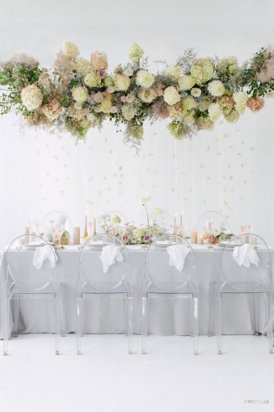 If this Glitterati Style File doesn’t have you on cloud nine, then we don’t know what will! “Our dreamy, light, pastel-infused concept was inspired by the artwork of John Constable, an English Romantic painter, who was renowned for his countryside landscapes,” shares planner Rainbow Chan of Rainbow Chan Weddings & Events. Between all the tulle gowns, ethereal florals, and the delectable sweets display, we’re completely smitten with this style file! See more whimsical wedding setups in the Winter/Spring 2020 issue of WedLuxe Magazine (Toronto & Eastern Edition)!