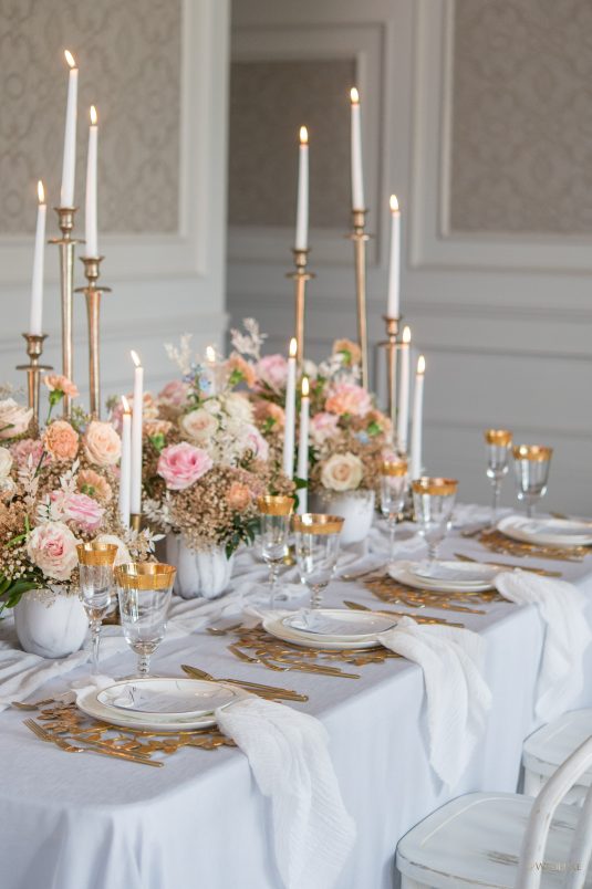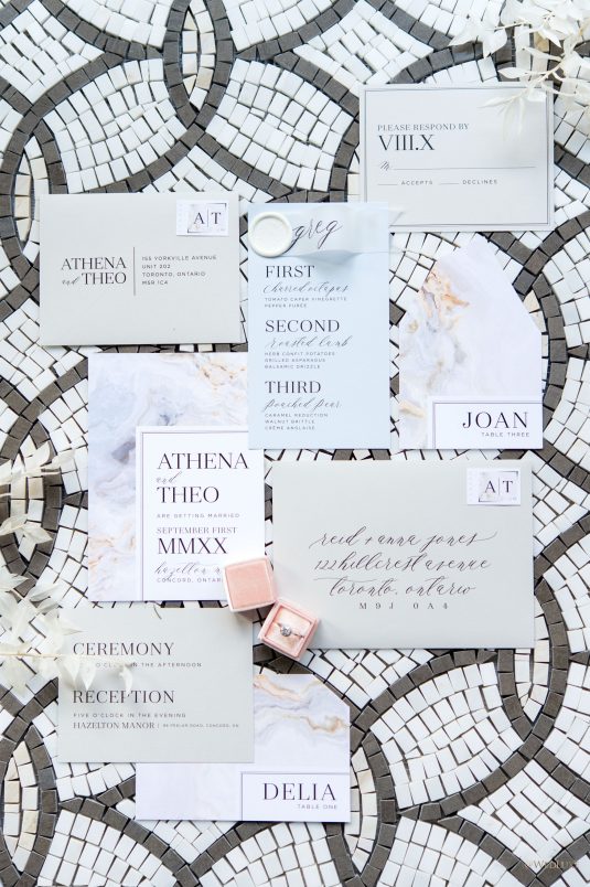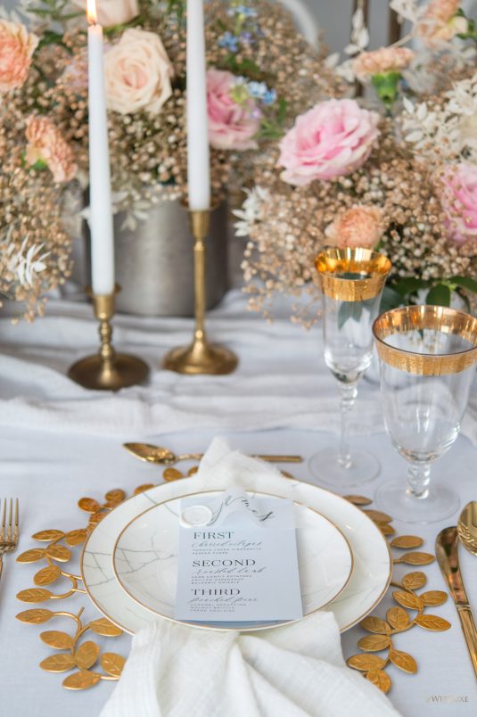 Giving us all kinds of mythical vibes, gold is the name of the game in this gorgeous Glitterati Style File! Pink and blush florals add a serious dose of romance and softness, perfectly contrasting the weathered brass accents. Between all the gold bridal accessories and trendy marble stationery, what’s not to love? Check out the Winter/Spring 2020 issue of WedLuxe (Toronto & Eastern Canada Edition) for more!