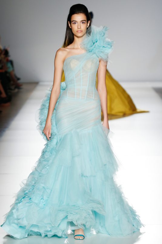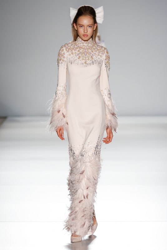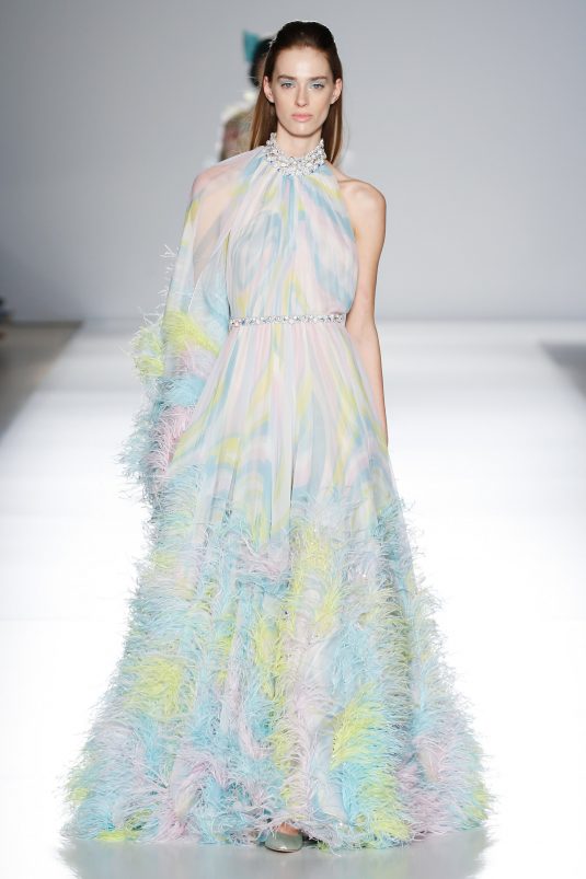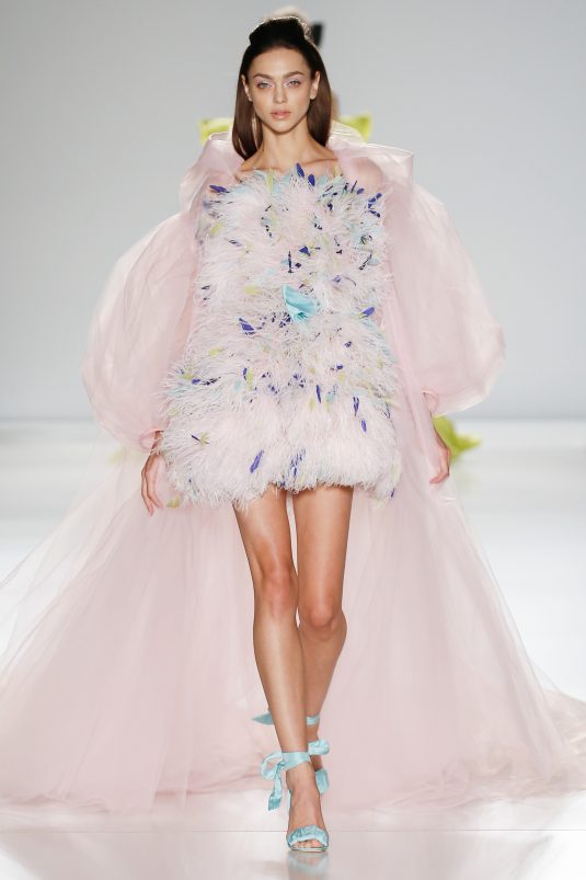 Ralph & Russo’s Spring 2020 couture collection is a pastel daydream and we’re completely in love! The brand’s couture icons are reimagined with a youthful and modern flair. Featuring both column and billowing silhouettes, each gown is given that extra touch of glam and fun with ruffles, sequins, and lots and lots of feathers.