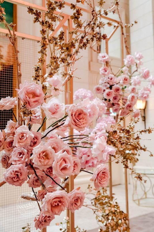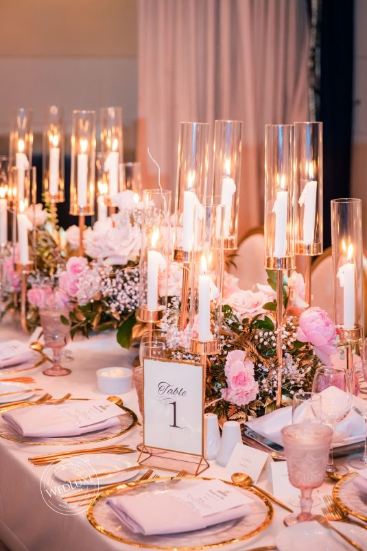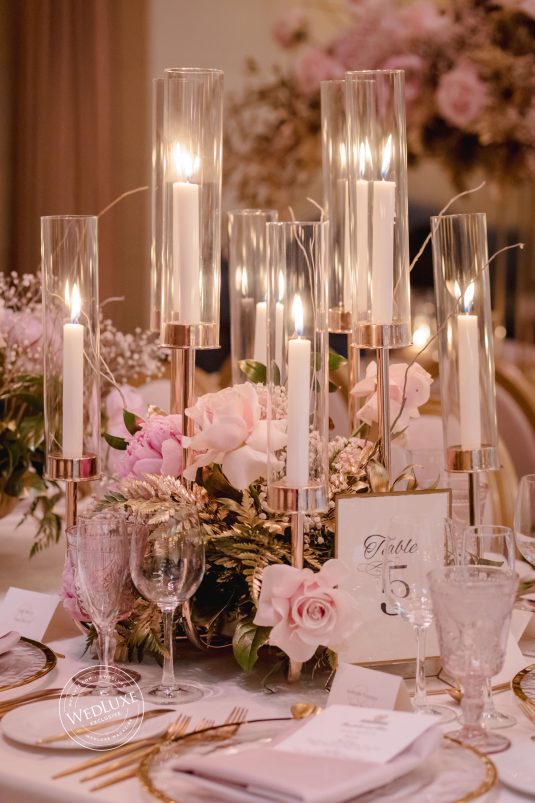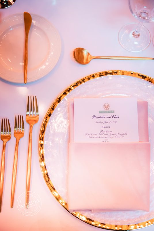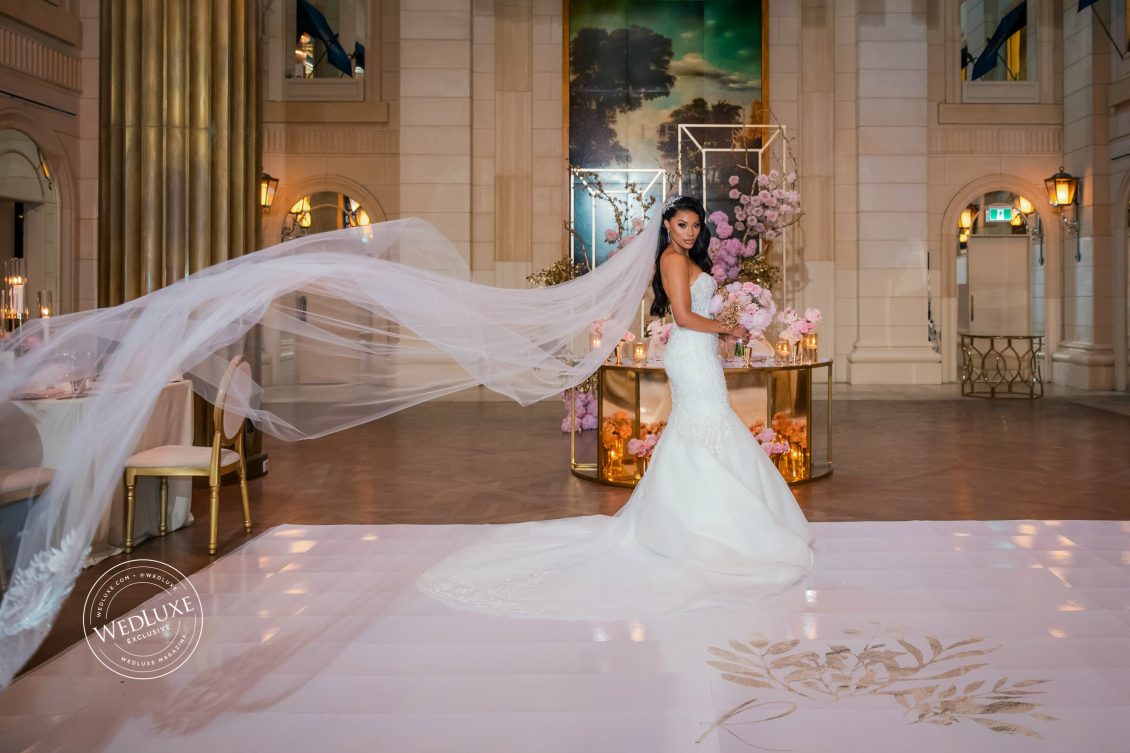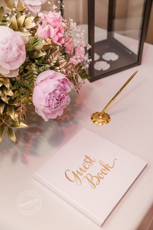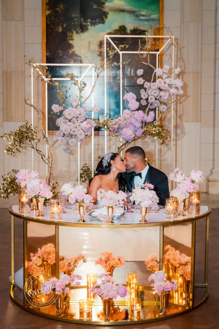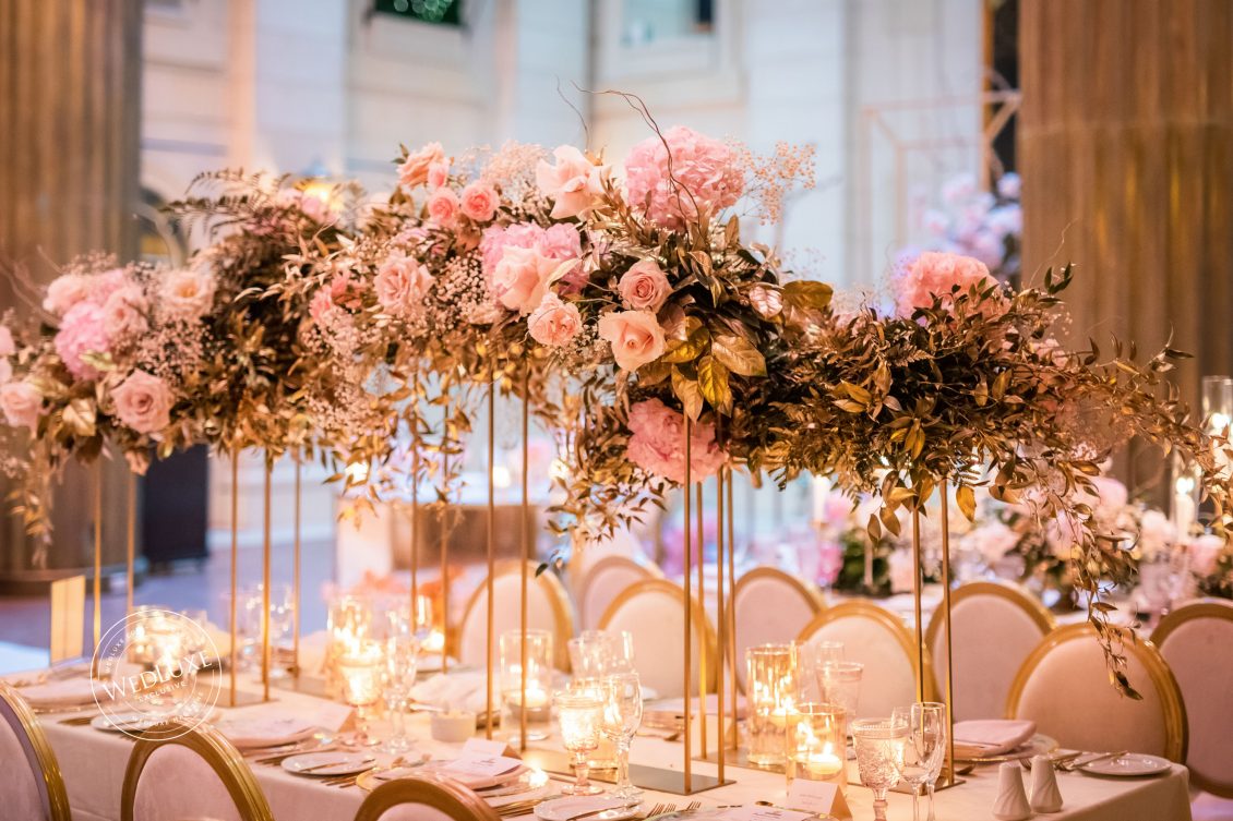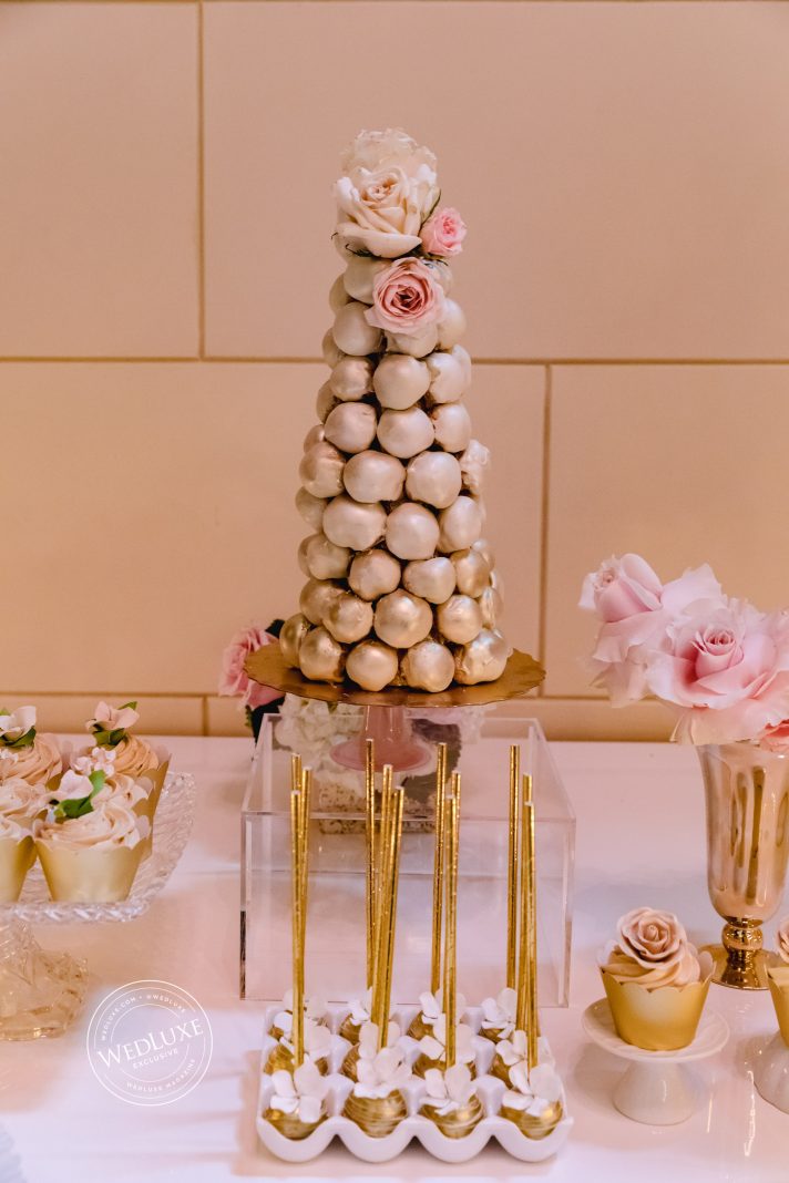 Gilded glam is where it’s at for Raschelle and Chris’s wedding! The soft and feminine pink florals were a sight to behold, not to mention all the gold greenery, geometric altarpieces, and ornate goblets that totally tied the theme together. Alongside the four-tiered blush cake, Fruitilicous Cakes also prepared a sweets table that’s sure to make any dessert lover’s heart sing! See more gorgeous weddings like this in our Winter/Spring 2020 issue of WedLuxe Magazine (Toronto & Eastern Canada Edition).