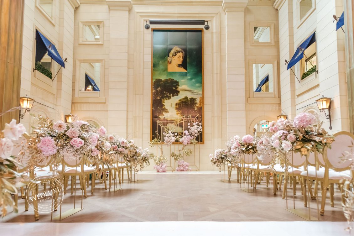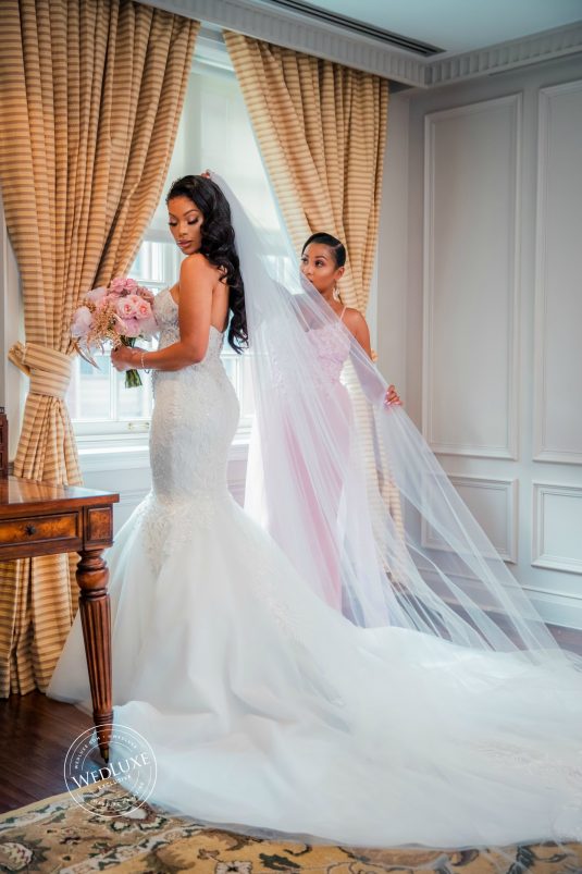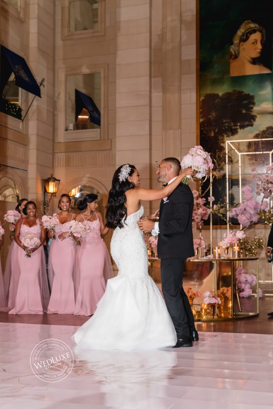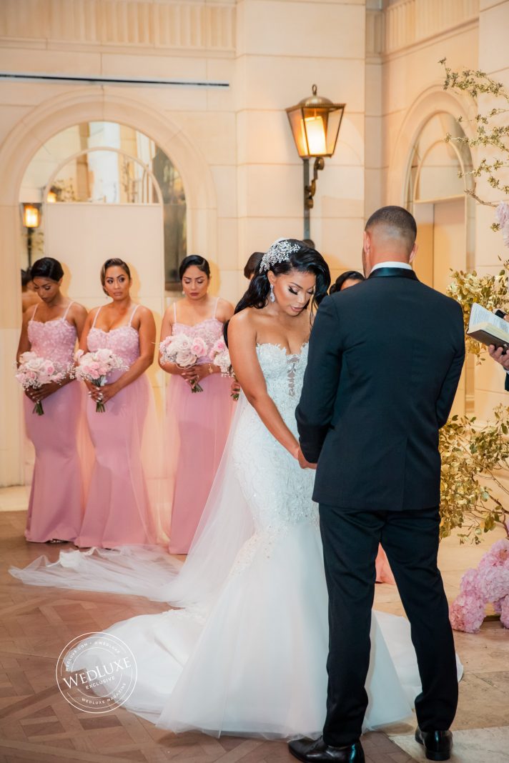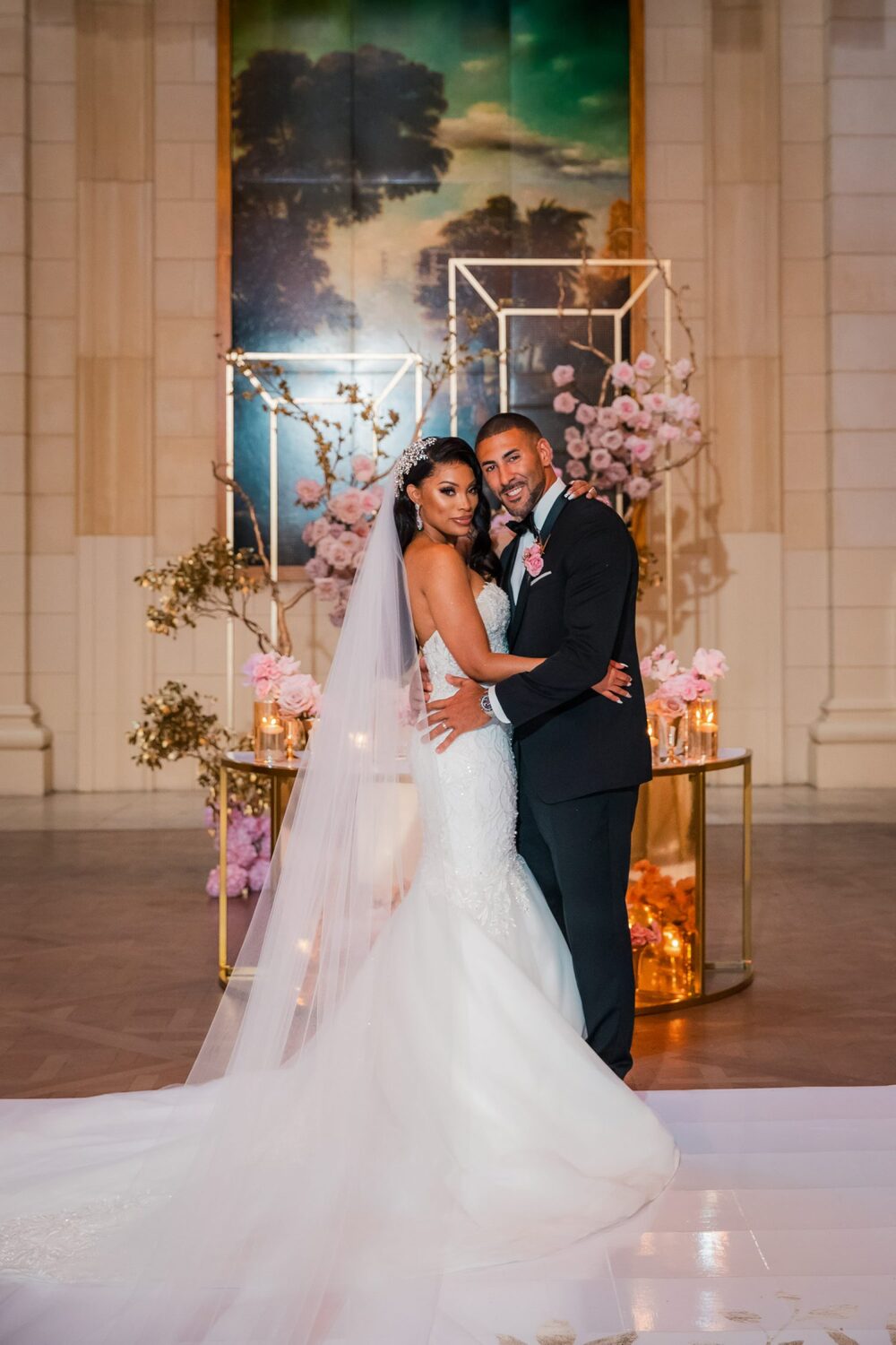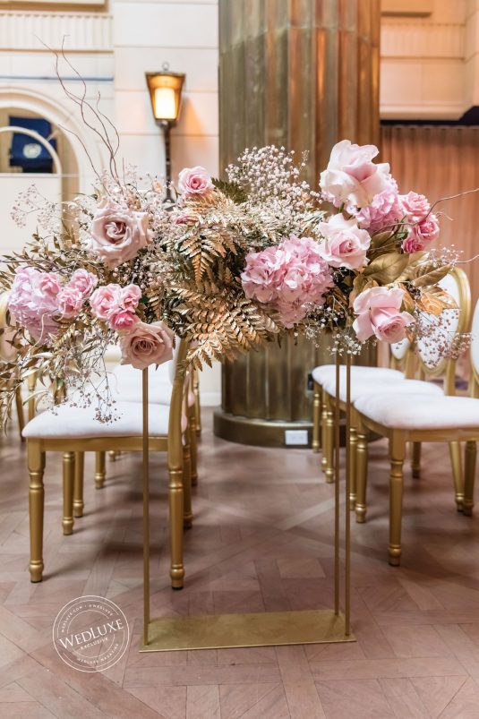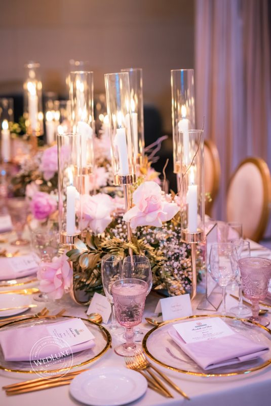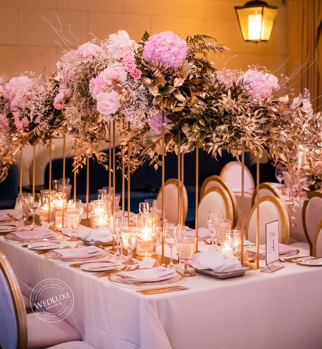 Gilded glam is where it’s at for Raschelle and Chris’s wedding! The soft and feminine pink florals were a sight to behold, not to mention all the gold greenery, geometric altarpieces, and ornate goblets that totally tied the theme together. Alongside the four-tiered blush cake, Fruitilicous Cakes also prepared a sweets table that’s sure to make any dessert lover’s heart sing! See more gorgeous weddings like this in our Winter/Spring 2020 issue of WedLuxe Magazine (Toronto & Eastern Canada Edition).