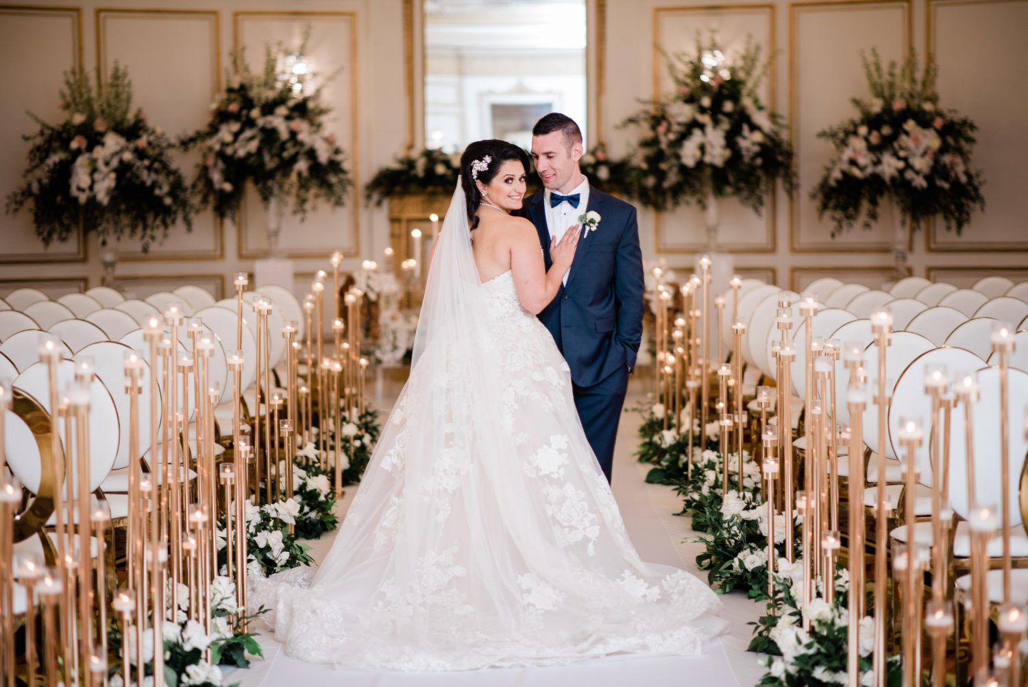 Is there anything better than a fresh garden full of white blooms? We certainly don’t think so! Originally wishing for an outdoor wedding, Nassim and Phillip brought the garden inside. “The reception was whimsical and magical, with the room adorned in lush greens and exotic blooms. Each VIP tables on both sides of the dance floor held two staggering 18-ft clouds of flowers and contained extensive greenery, hanging orchids, white peonies, and white and blush roses,” shares planner Haleh Tafteh of Details by Haleh Wedding Planning & Sofreh Design.