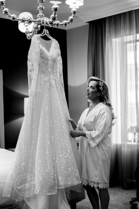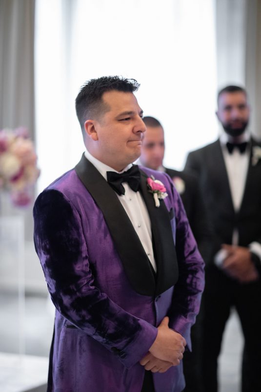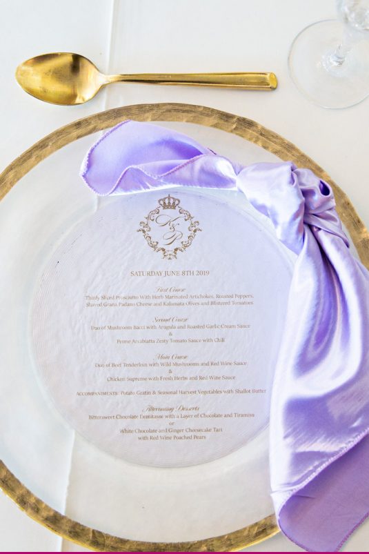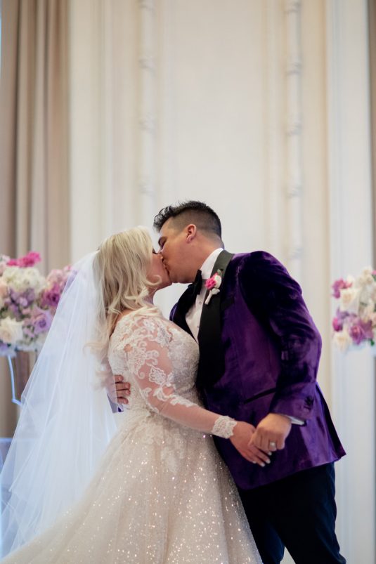 Kristie and Peter’s dreamy, lilac-hued wedding is the definition of a springtime soirée! Alina Takmelova from Flowers Time used a mix of roses, hydrangeas, carnations, and even some lavender to achieve the fresh aesthetic. We’re also seriously crushing over that jaw-dropping gold structure around the head table. Keep scrolling to see more of this whimsical romance.
