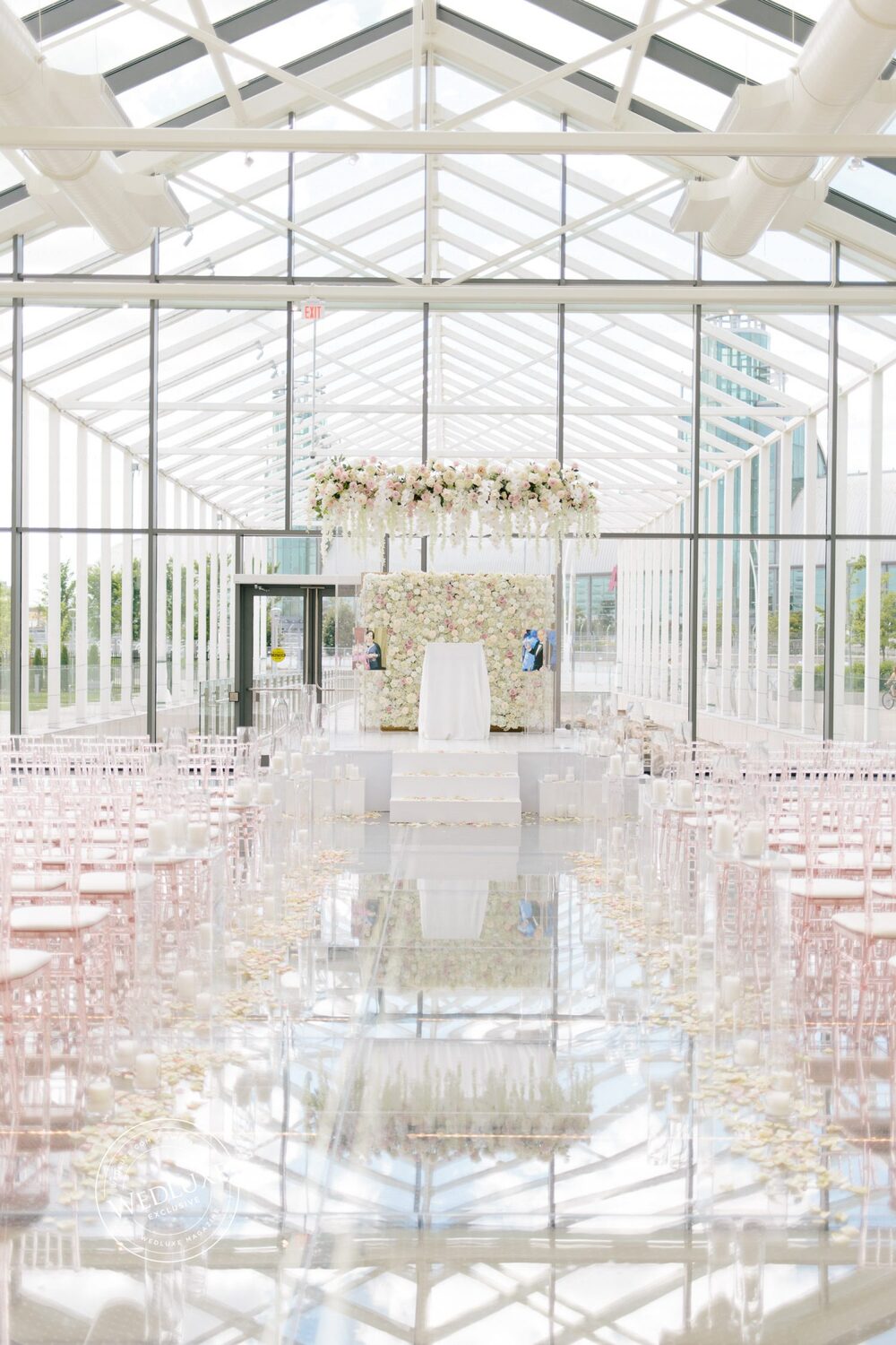 Erica and Aviv’s wedding feels as if it’s floating on air! The neutral color palette combined with rose gold accents provides a major dose of spring inspo for any modern bride. Infused with acrylic details such as the seating chart and centrepiece stands, this wedding gets a pop, fizz, clink from us!