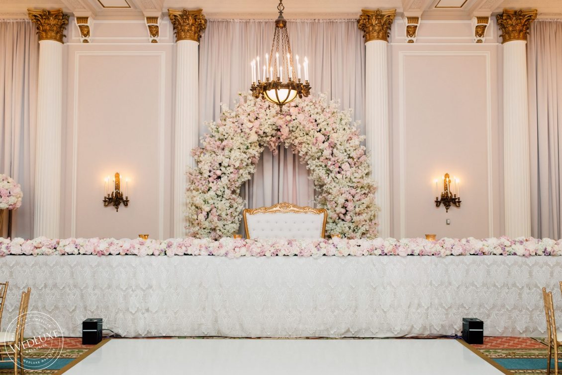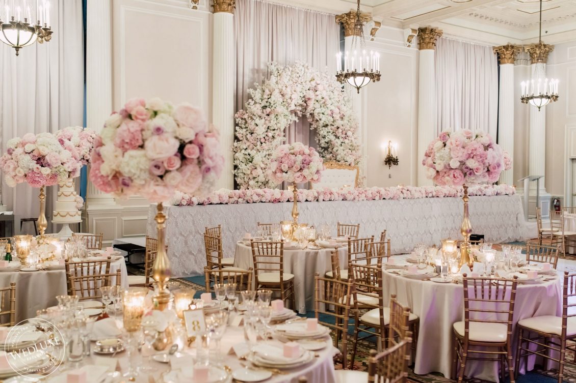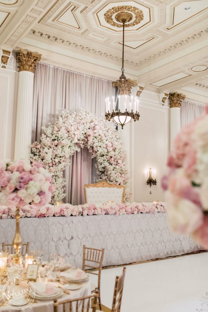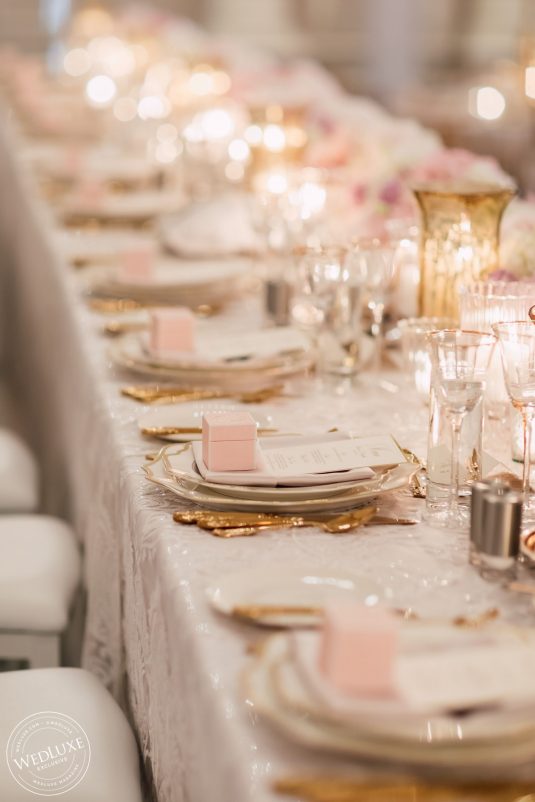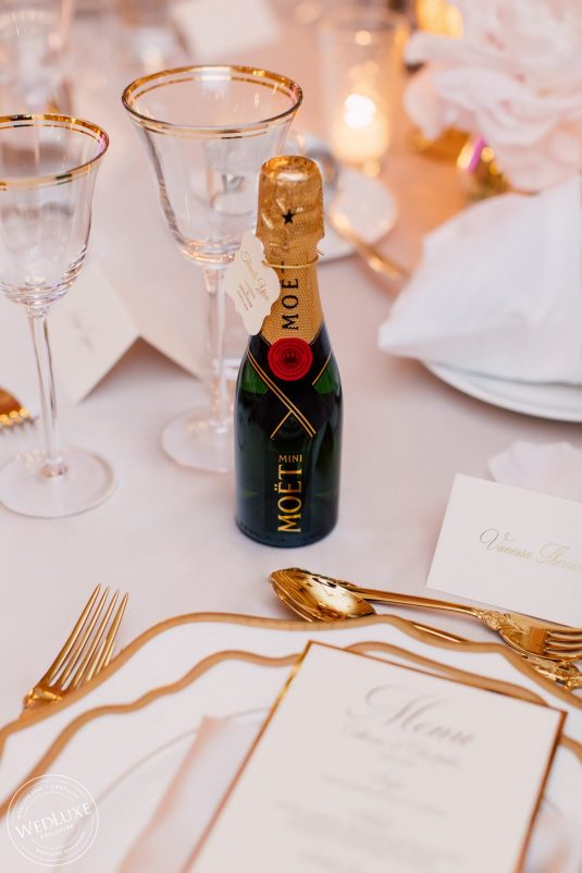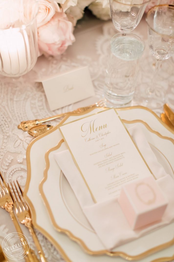 As a nod to the bride’s heritage, Catherine and Christopher replicated the romance of France with a European-style wedding! With its touches of French elegance and grandeur, the très chic Fairmont Château Laurier was the perfect venue choice. The couple’s day featured a blush and white color palette with plenty of gold accents, one statement-making head table, and a personal favorite, decadent desserts including Ladurée macarons.