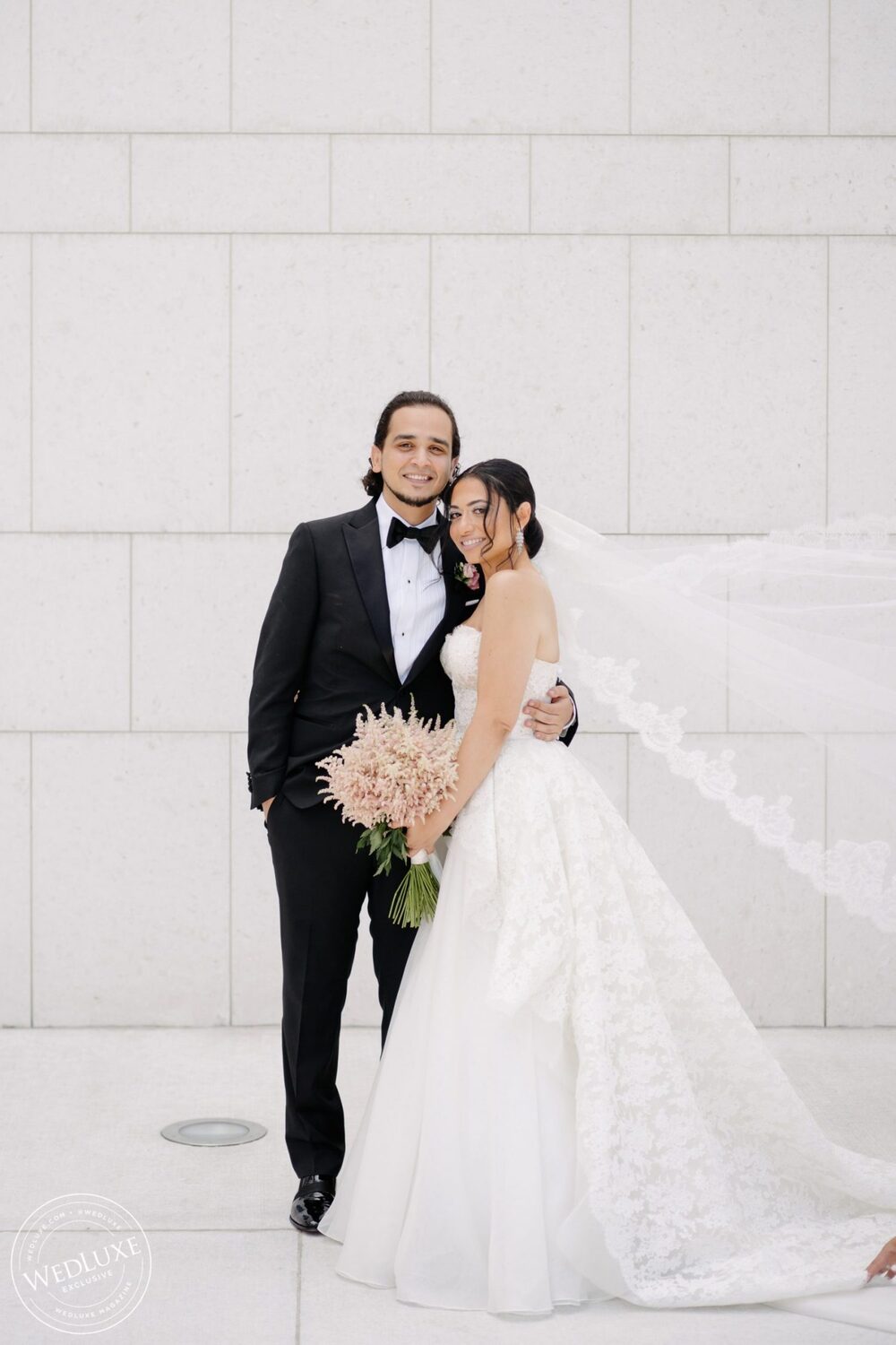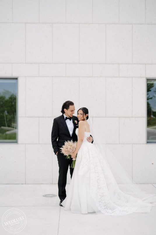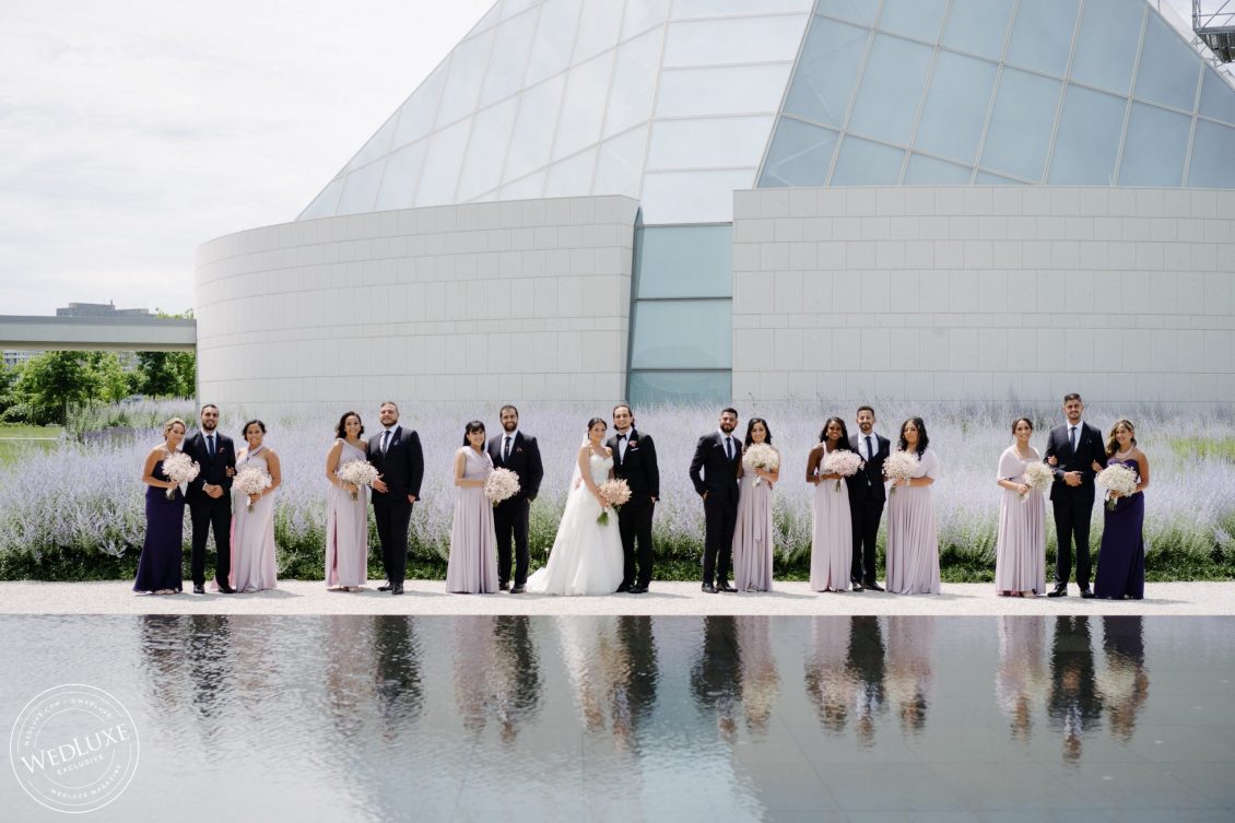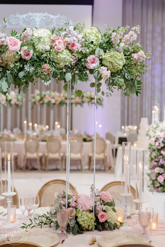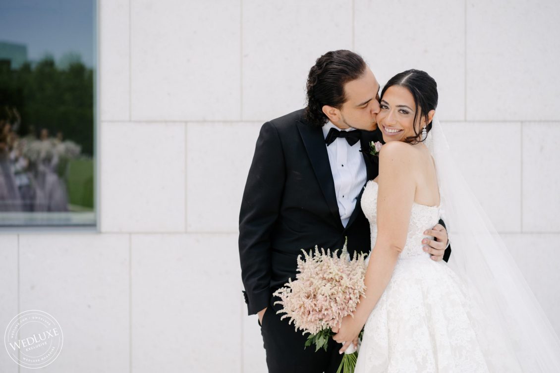 We love an indoor garden wedding and Caroline and Beshoui’s is a stand-out! The ballroom was transformed into a garden paradise, with an overflow of loose hanging greenery, pretty pink and purple florals, and complemented with modern accents in soft, neutral tones. We particularly love the ornate-meets-modern tableware and blush textured bouquets.