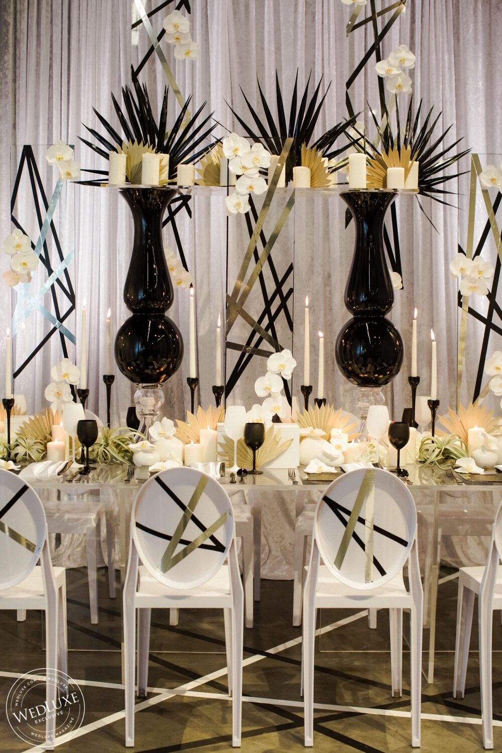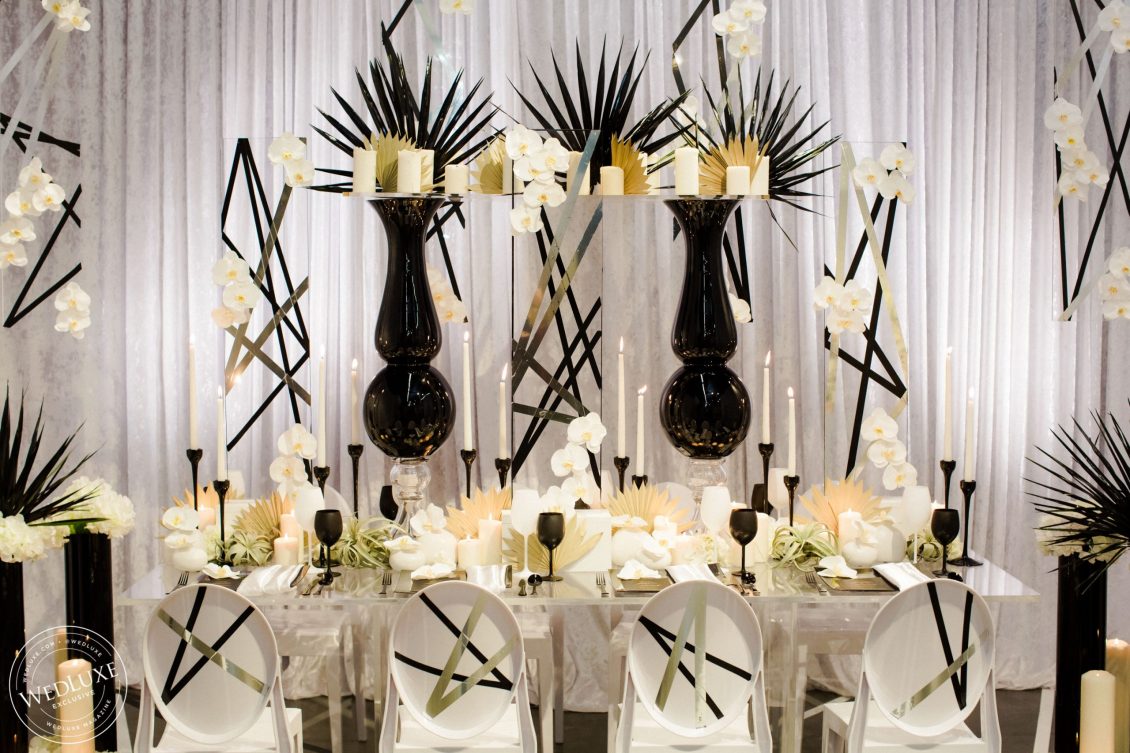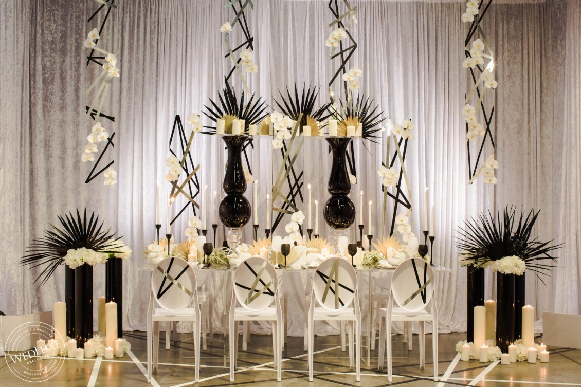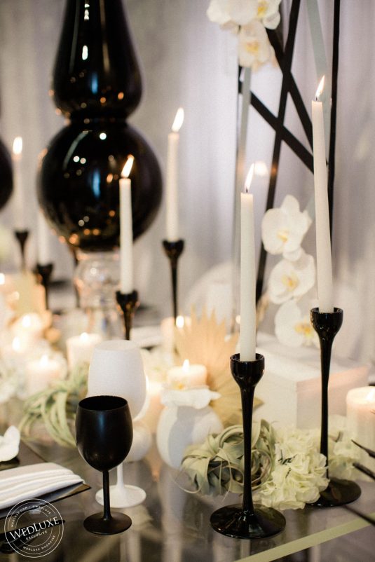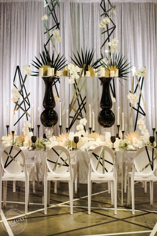 Black and white is one of those color combinations that will never go out of style! A little edge, a little abstract, and a whole lot of elegance is what you’ll find with this flirtatious shoot! Bring a fashion-forward contrast to your classic palette by blending untraditional elements with timeless style. For a touch of glam- enter gold! It’s fun and playful, chic and sophisticated.