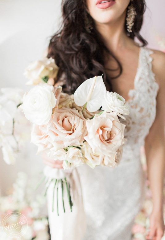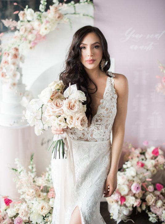 “Whoever said orange was the new pink was seriously disturbed.” – Elle Woods. We’re loving the seriously romantic vibes of EVERYTHING in this shoot, from the whimsical floral design to the lightly marbled cake. We’re including more of this #prettyinpink styled shoot on our @wedluxetoronto feed today, so click on over to see more pastel paradise!