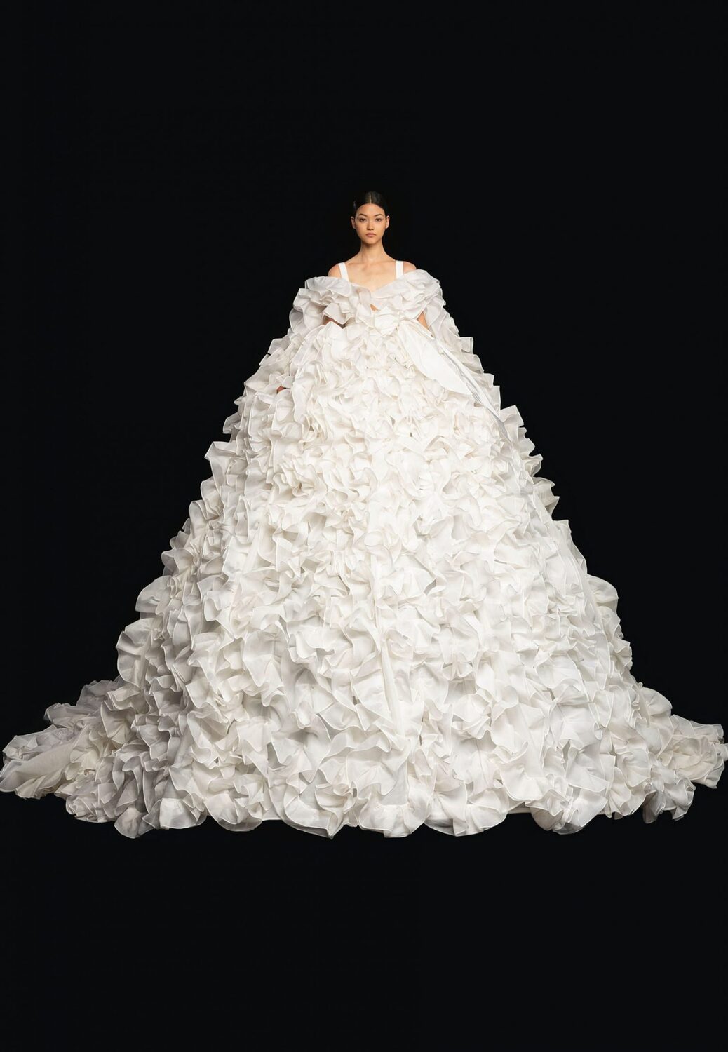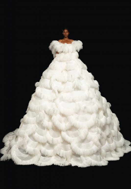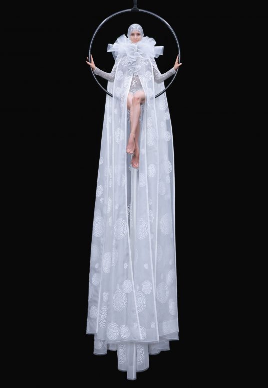 Valentino Haute Couture just took our breath away (but what else is new?!) Debuting their Fall/Winter 2020/2021 collection, the presentation began with a pre-recorded mini film dubbed “Of Grace and Light,” followed by an intimate runway show unlike any other. As curtains drew back, it revealed 12-ft tall models, standing on ladders hidden underneath exaggerated skirts or on aerial swings. While a select few were in attendance, many others joined in virtually from around the globe. Creative director of the brand, Pierpaolo Piccioli and famed photographer Nick Knight, collaborated on the cinematic experience and told Vogue they wanted to challenge the lockdown experience. “I didn’t want to feel the limitations. Couture is made for emotions, dreams,” revealed Piccioli. “It was super-emotional for us all to be here together to win this challenge. A moment I will never forget.” Keep scrolling for more jaw-dropping moments!