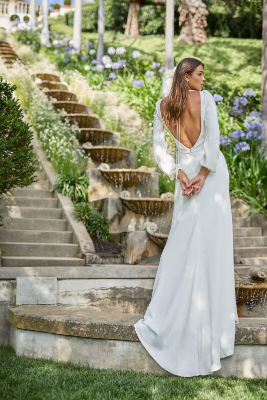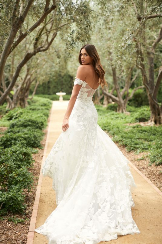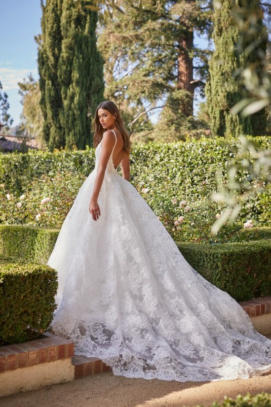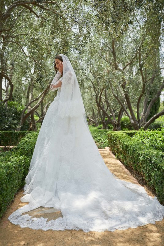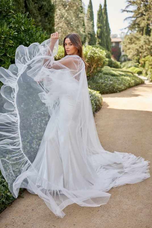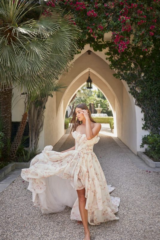 Monique Lhuillier Spring 2021 Bridal collection evokes a Spanish flair with California ease. This season is all about luminous embroideries, traditional laces, delicate floral details, and regal proportions. Flowing silhouettes with voluminous sleeves, deep v-necks and flamenco-style skirts dance into the night with poetic elegance as femininity and romance reign supreme!