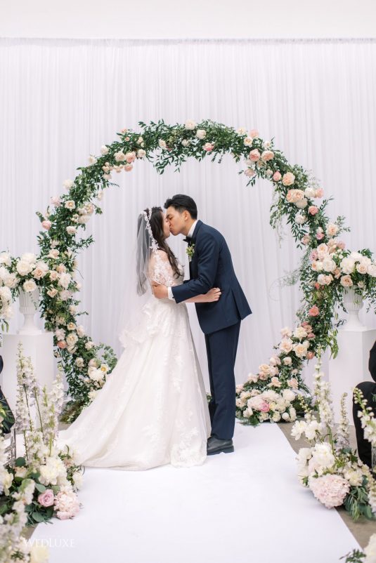 Helloooooo pastels! For Bella and Humphrey’s Vancouver micro wedding, it was all about the personalization. “With you, I am home was the overall concept for their wedding. After a long history of travelling overseas for both school (Oxford University) and work, the couple decided that as long as they are together, that is their home. We used the quote and Oxford building throughout the design to really personalize the entire celebration” shares Liting Chan from Paradise Events