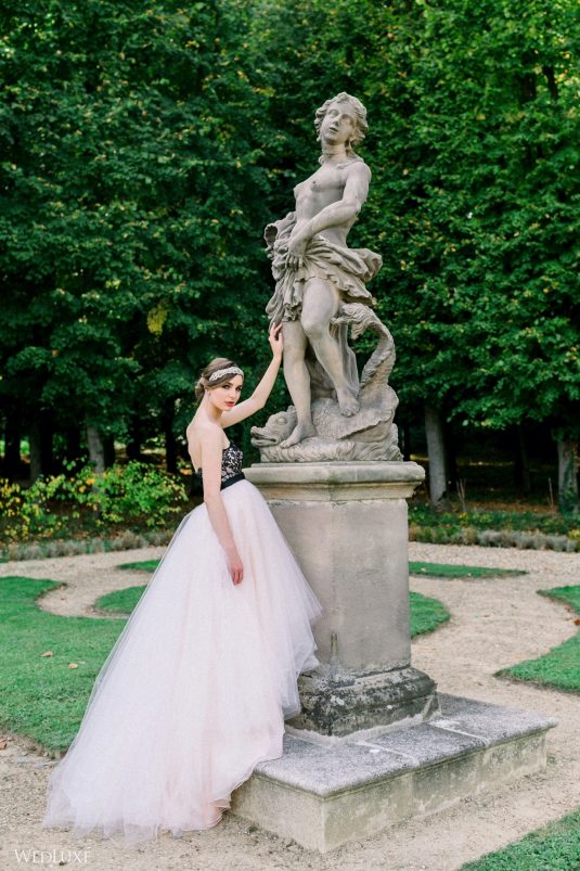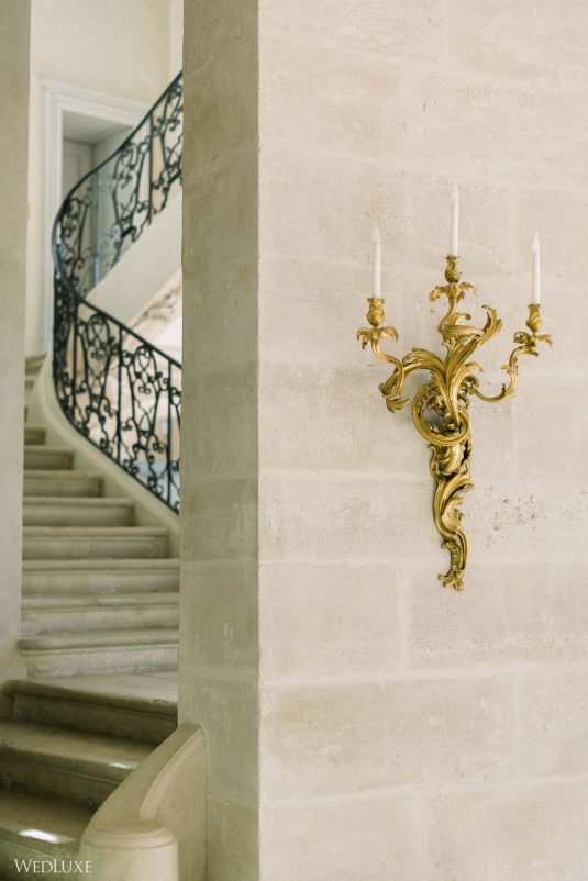 International Fine Art Wedding Photographer, Corina Van Sluytman, had always envisioned creating a visual story at a French Chateau, “with a cinematic quality…where each photo was a puzzle piece to tell the entire intriguing story.” The Chateau of choice for this dream realized was Chateau de Villette (forty minutes from Paris) because of its historic nature and the beautiful limestone and surrounding gardens.