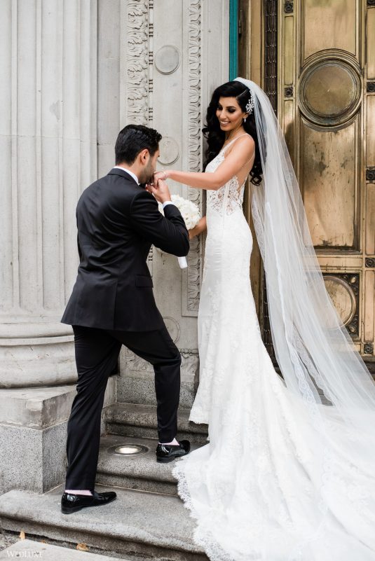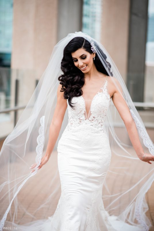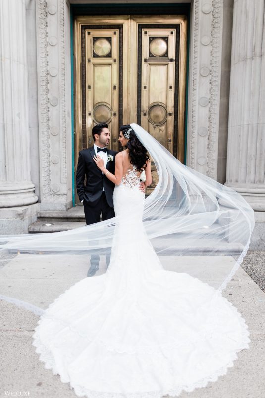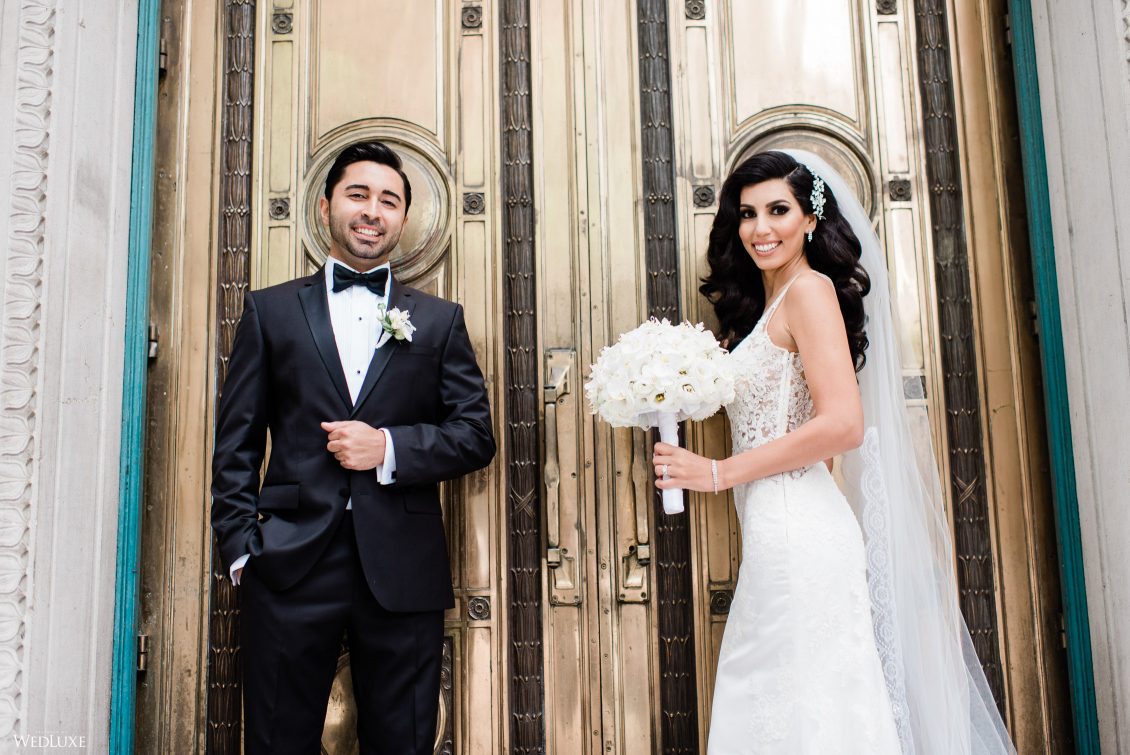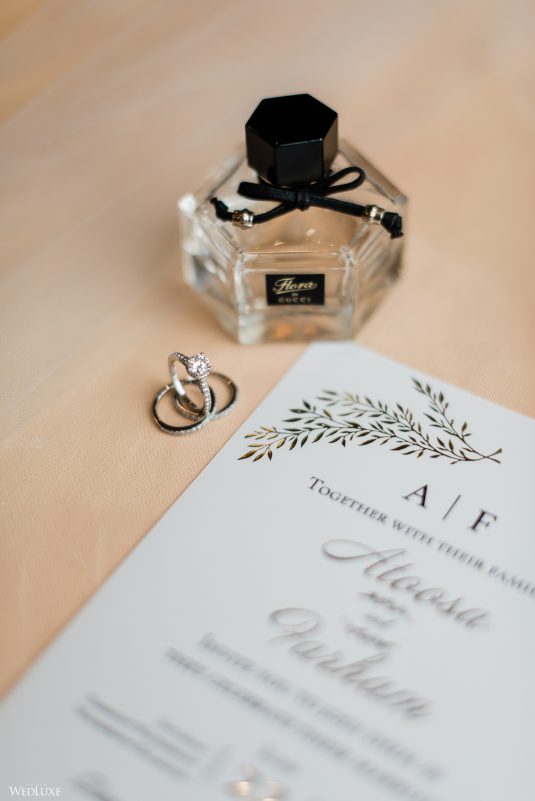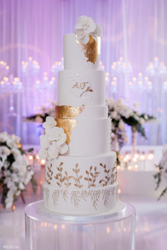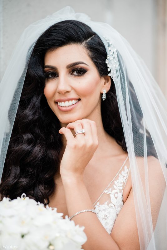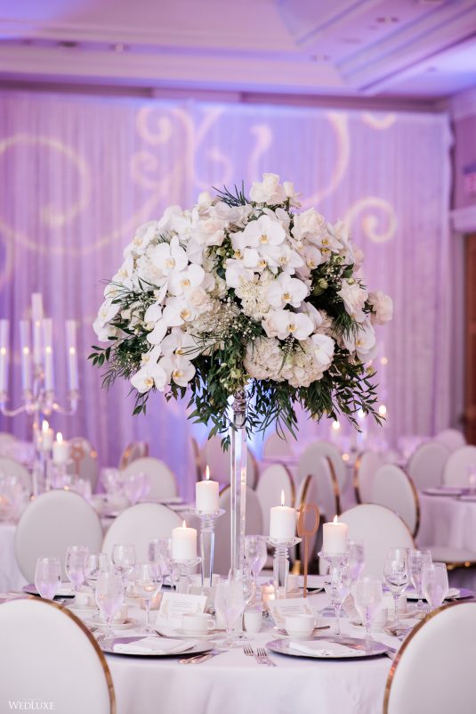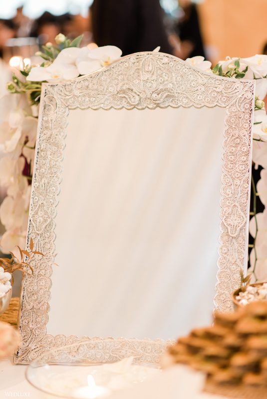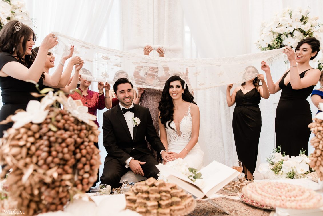 Now THIS is what we call dining by candlelight! Atoosa and Farham’s white wonderland wedding featured a traditional Persian Sofreh, 30-feet of ethereal draping, and a 16-ft custom stage for the couple’s head table. To further add to the ambience, Le Marais Décor supplied over 150 glistening crystal candlesticks for the occasion and twenty candelabras to create a magical aesthetic. “The glow of the sea of candles reflected through the entire venue, creating the perfect backdrop for the royal garden theme of the night,” recalls planner, Haleh Tafteh of Details by Haleh Luxury Event Planning and Sofreh Design.