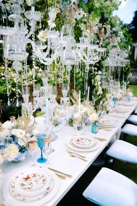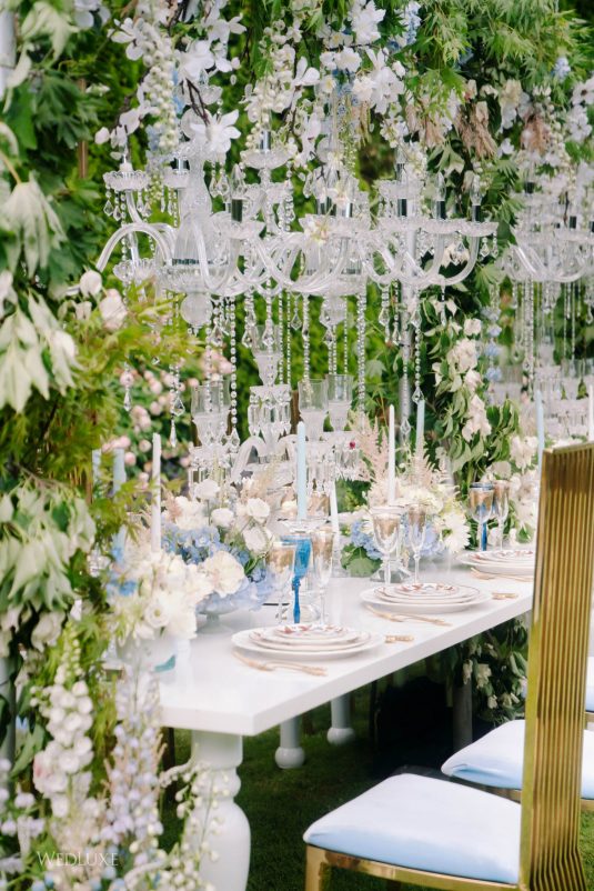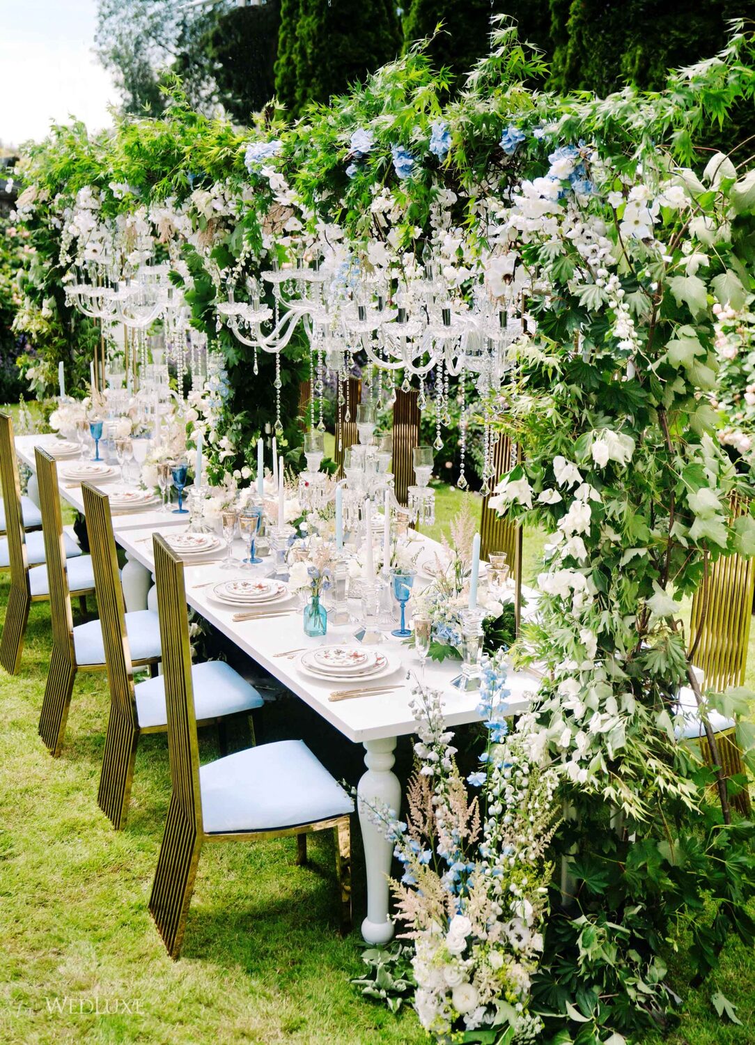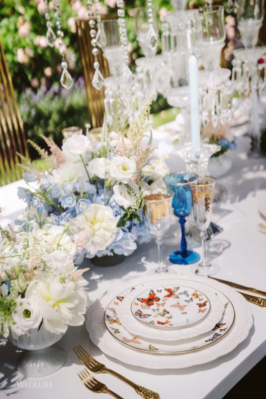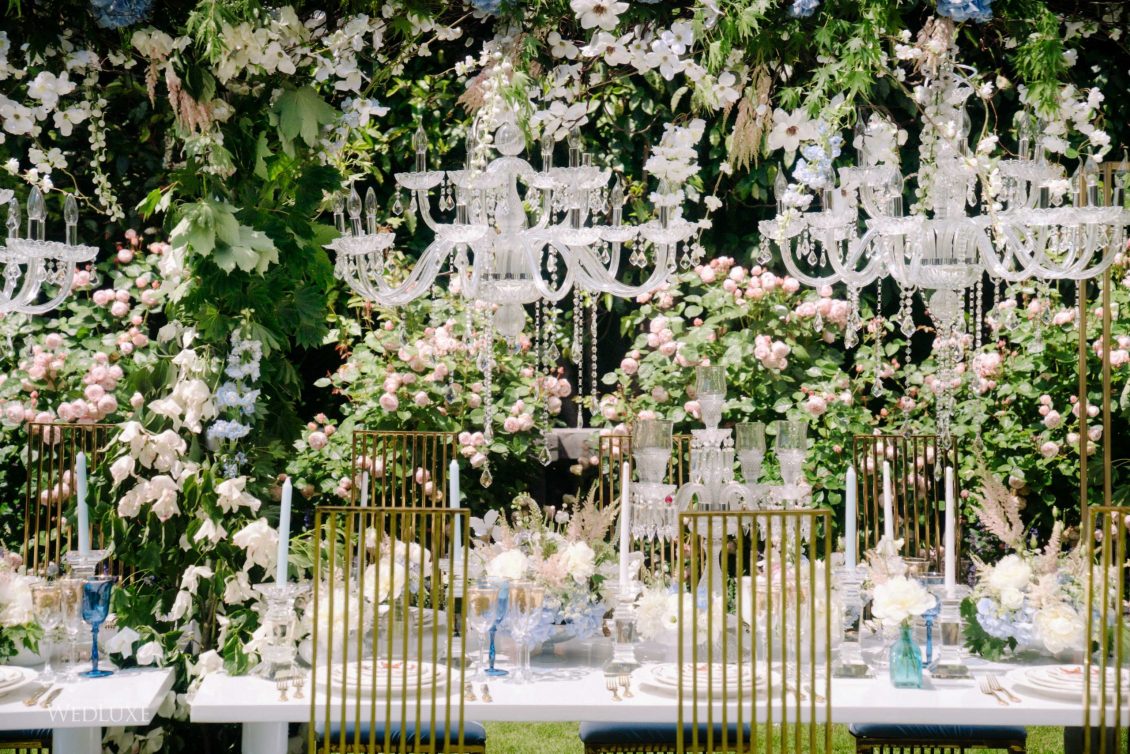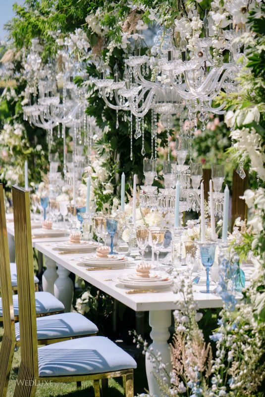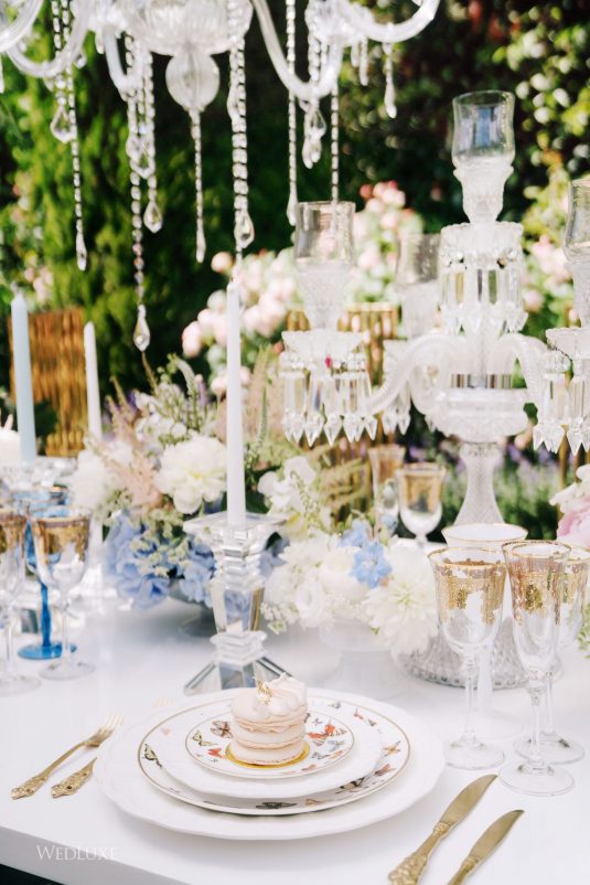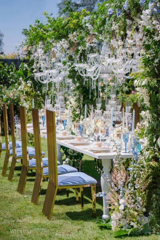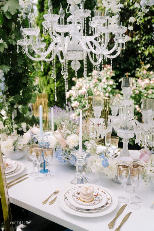 Our global readers may not realize this, but fifteen years ago we started WedLuxe in Vancouver, Canada and we still produce a print magazine for this beautiful cosmopolitan city. Our cover shoot for the Vancouver Fall 2020 is a pastel lover’s dream! CountDown Events, The Flower Factory and Éclat Decor Inc. transformed an outdoor space into a whimsical Versailles garden. We love the touch of playfulness infused by a few ‘something blue’ elements, along with gold and crystal accents. It all comes together to create a gorgeous French-inspired vibe. Keep scrolling for more #weddinginspo!