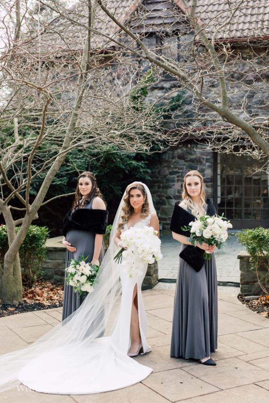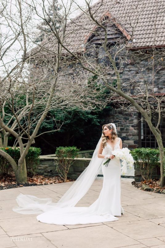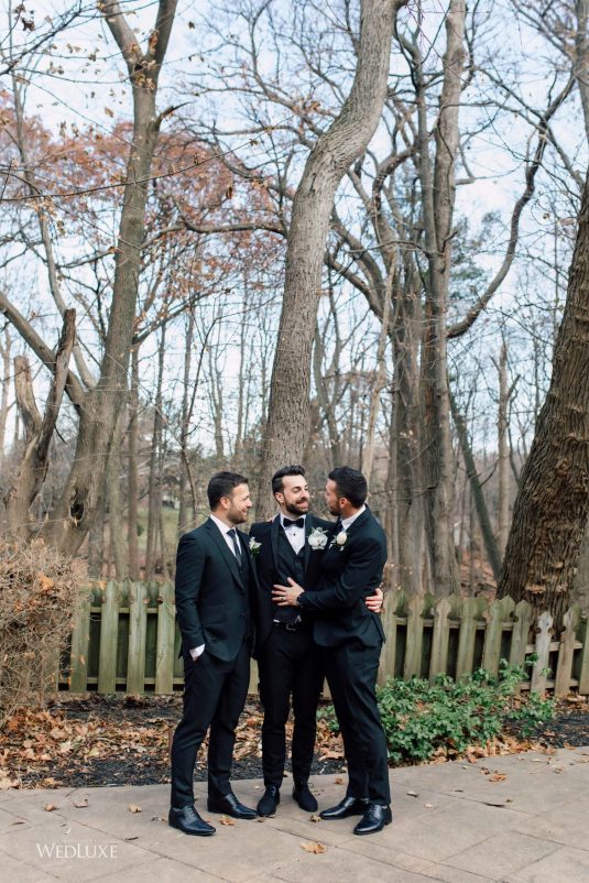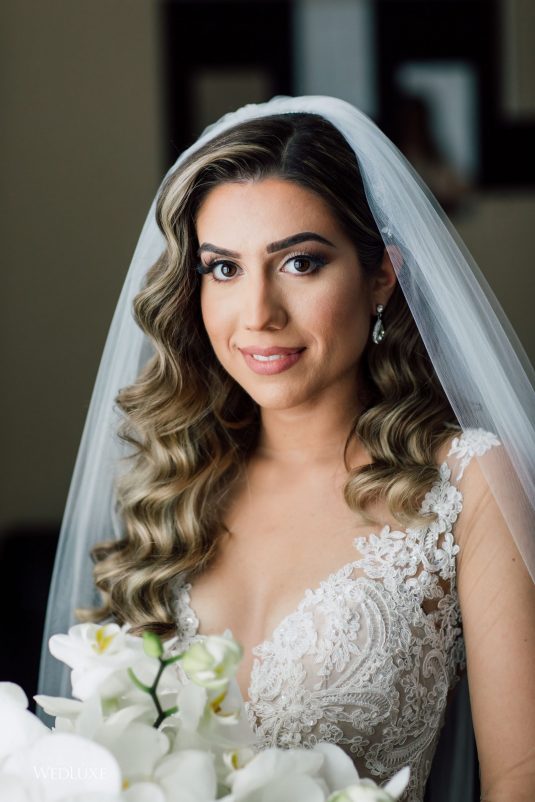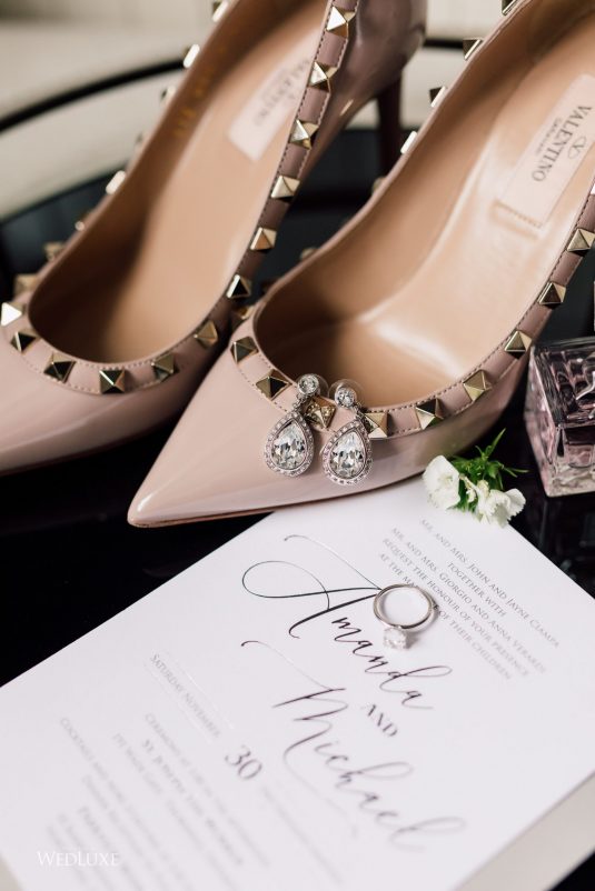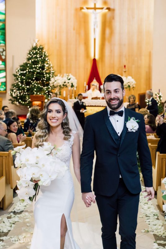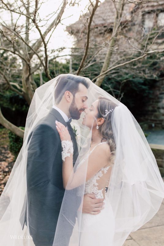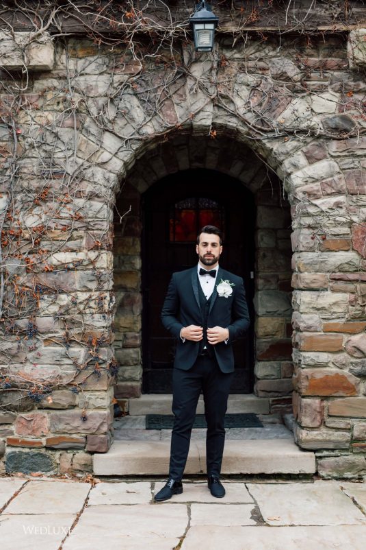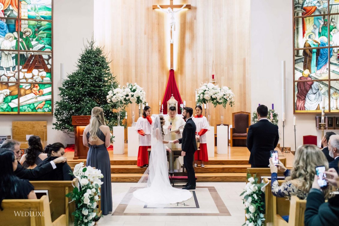 Now this is what we call classic whimsy! Amanda and Michael’s monochromatic wedding (as seen in the Fall 2020 Toronto Edition of WedLuxe) was planned entirely by the couple themselves. With the theme of winter elegance, the bride was very particular about her choices. “I was adamant that we have only white, silver, and acrylic decor,” Amanda recalls. With the cool-toned florals and rentals, the bride and groom’s venue was transformed into an exquisitely modern winter palace, warmed only by the sleek taper candles and their loving friends and family.