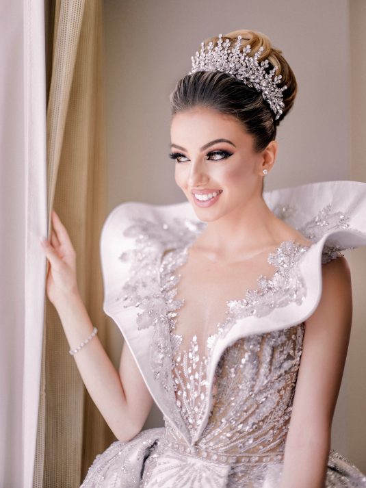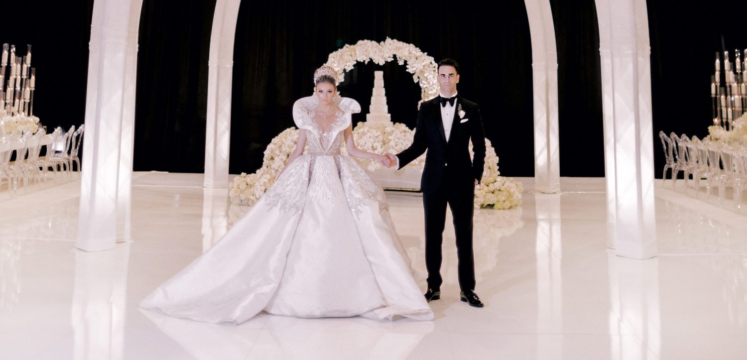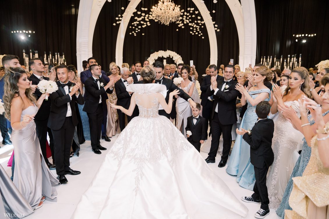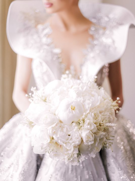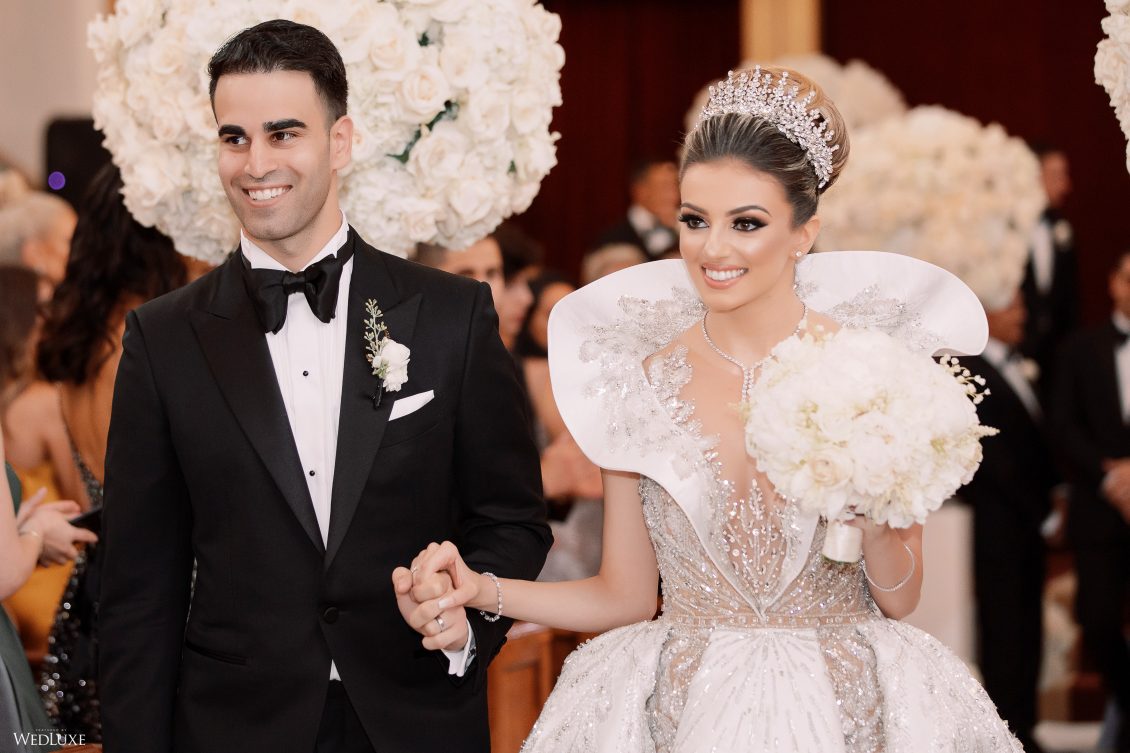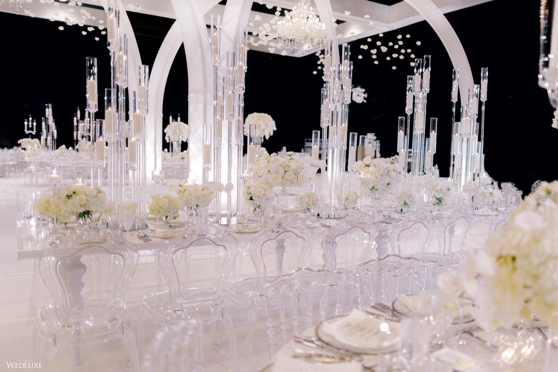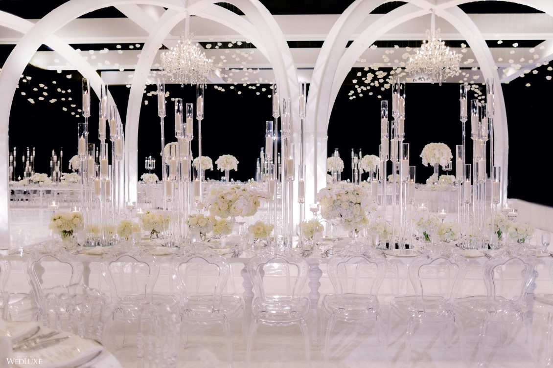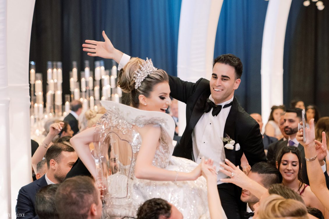 Get ready to be WOWED! Gabriel and Tabitha’s wedding was a true testament to their ‘Architecture meets Design theme.’ First-things-first, let’s discuss Tabitha’s OUTSTANDING styling. Her gown… OMG!!!! This statement-loving couple wanted an elegant and timeless aesthetic and went with an all-white ultra-modern black and white reception design. The pièce de résistance – large scale white arches encircling the room, framing the tables, and creating a truly dramatic layout!