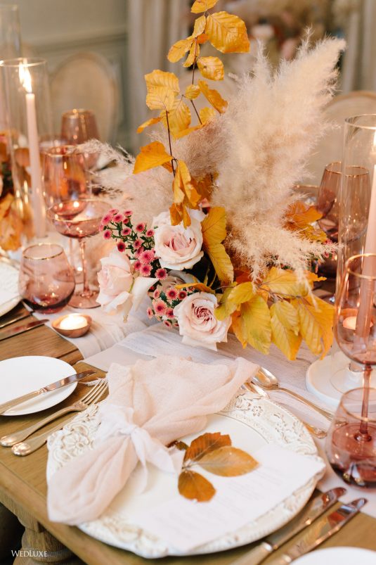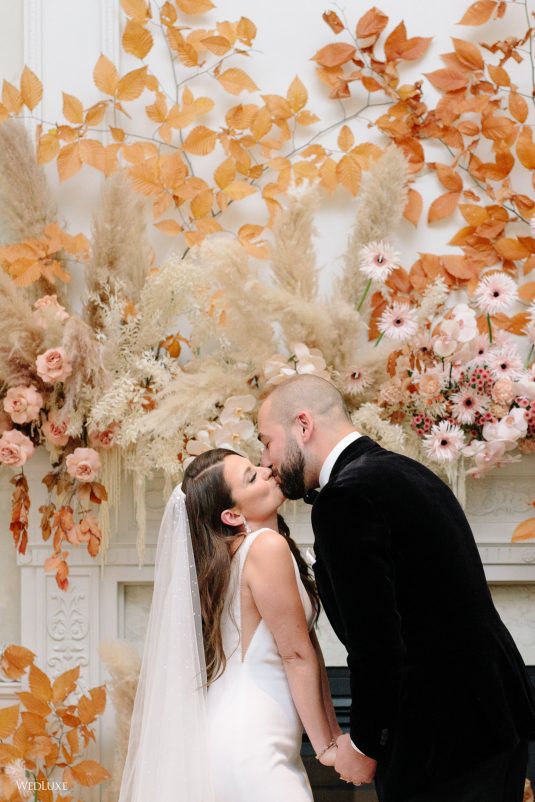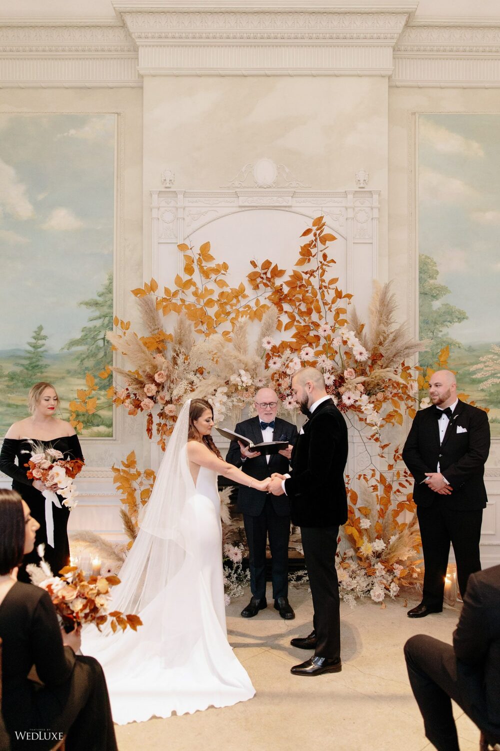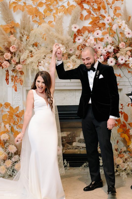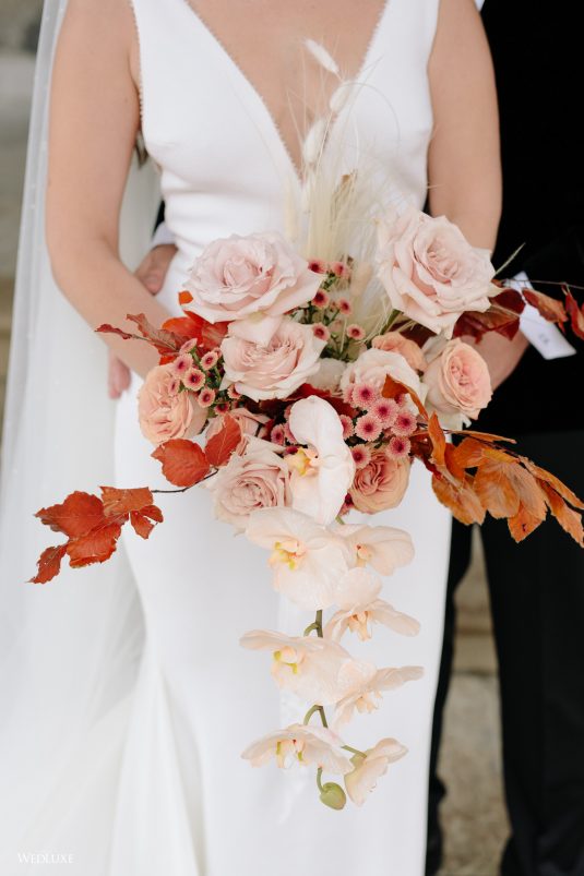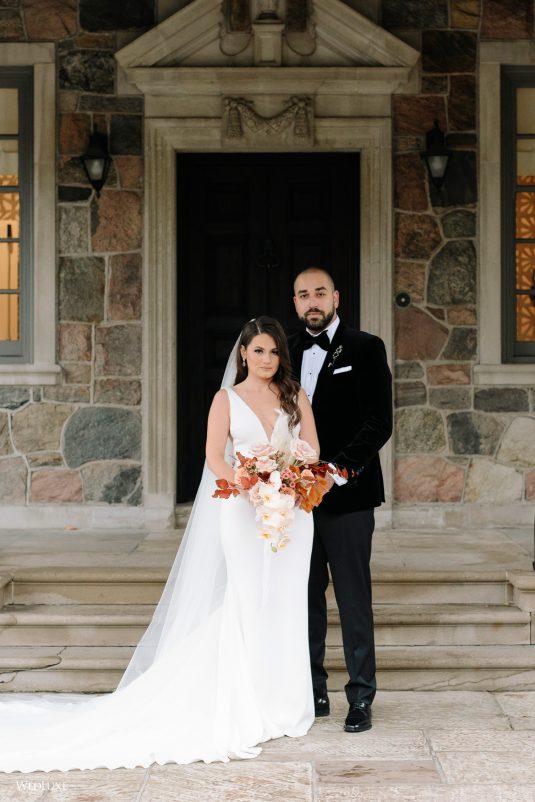 Armela and Christopher’s beautiful wedding at Graydon Hall is filled with beautiful Fall wedding inspiration. We love how her beautiful bouquet incorporates fall leaves… a beautiful juxtaposition against those gorgeous orchids!
