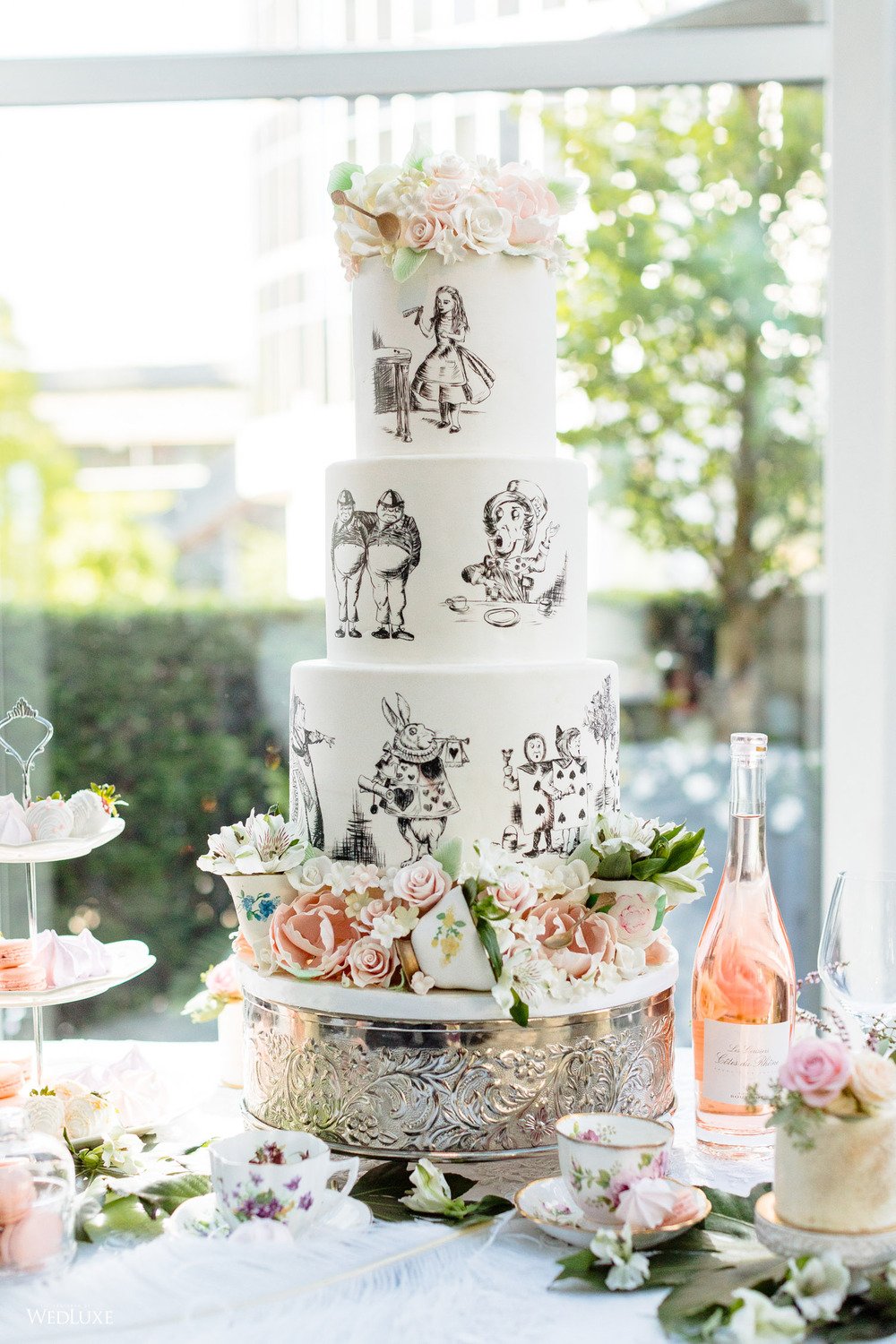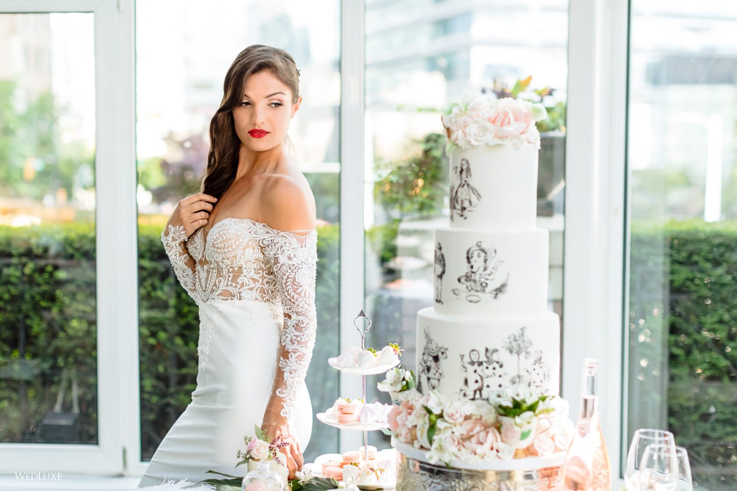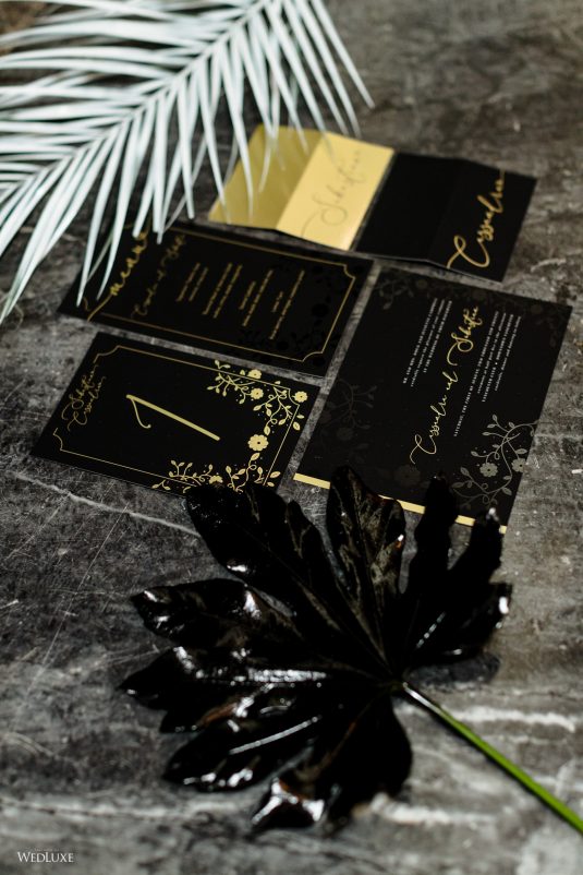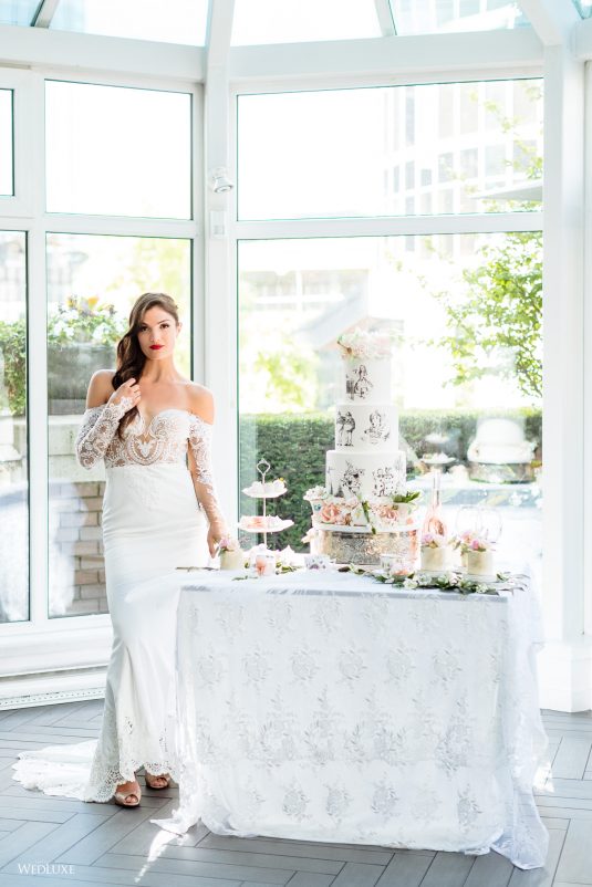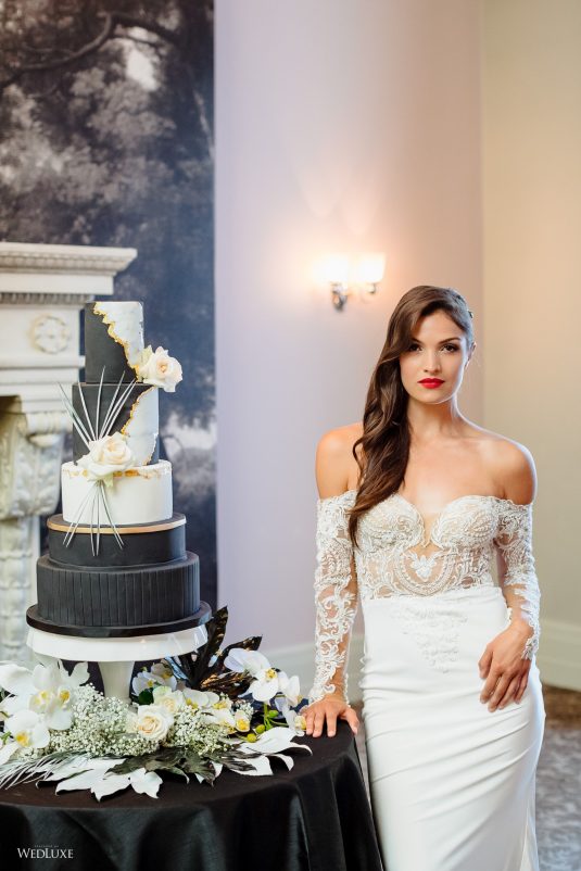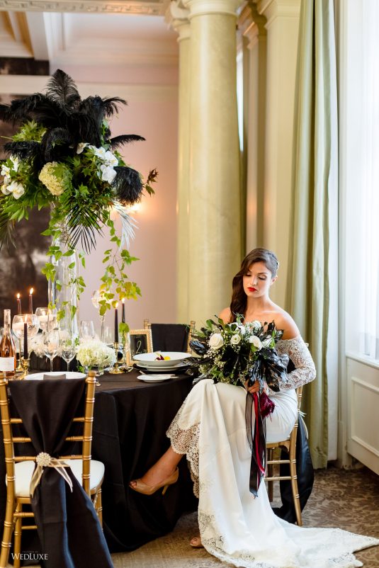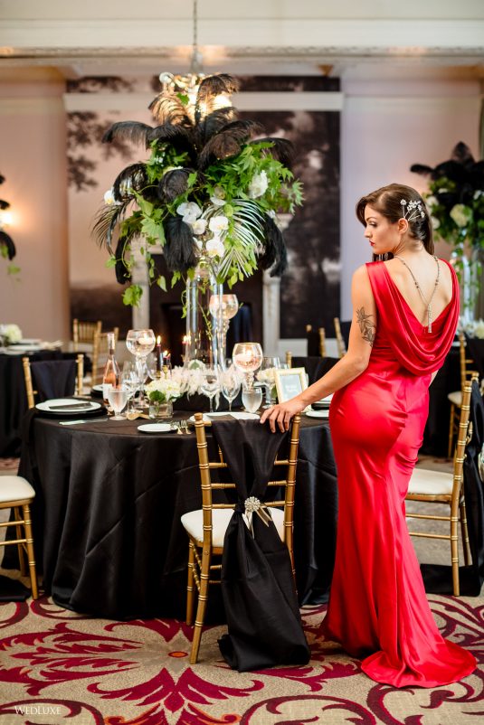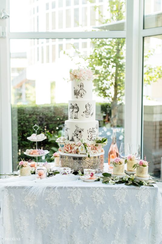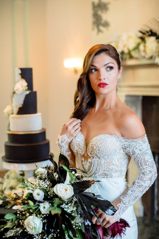 ! Dark and light color palettes set aflame by a gorgeous, red gown for a jazzy take on wedding design! If you’re an Alice in Wonderland fan, you’re also going to love one of the cakes in this feature… Scroll to be inspired ;)