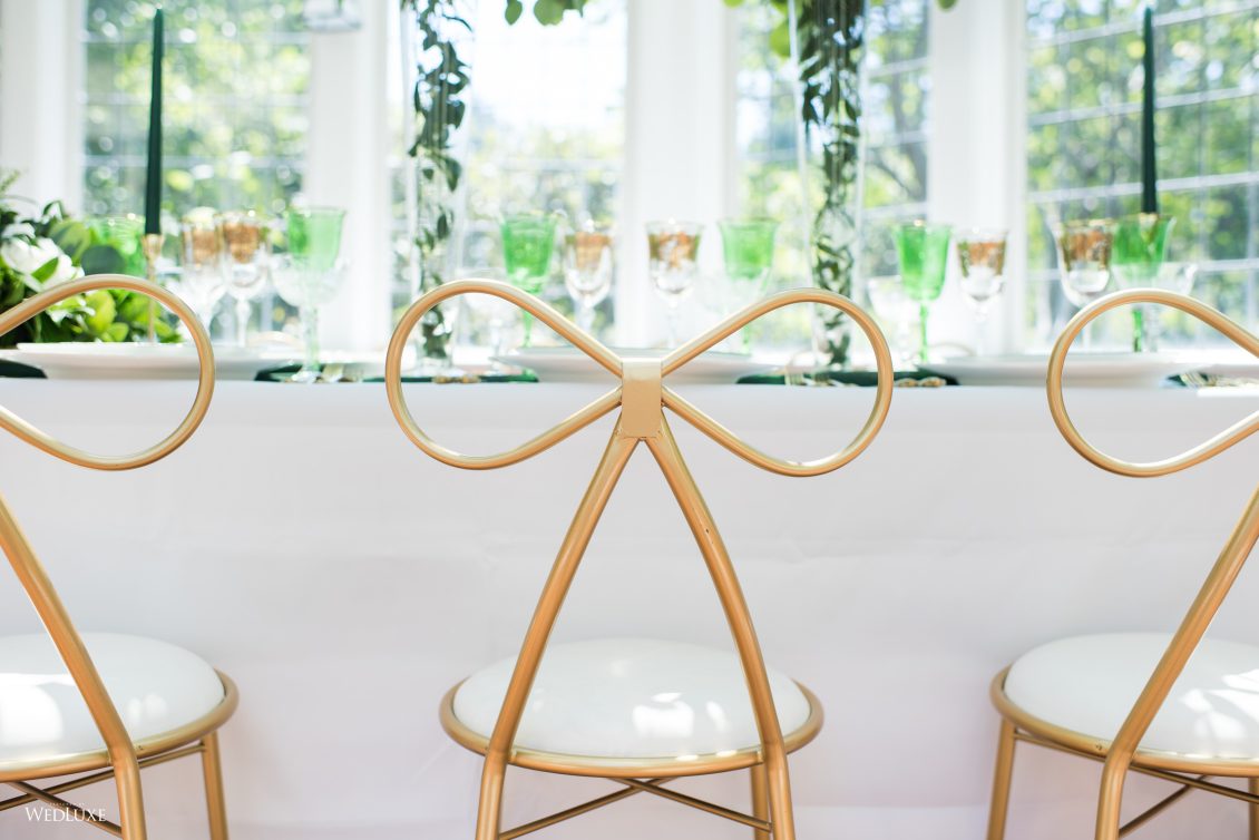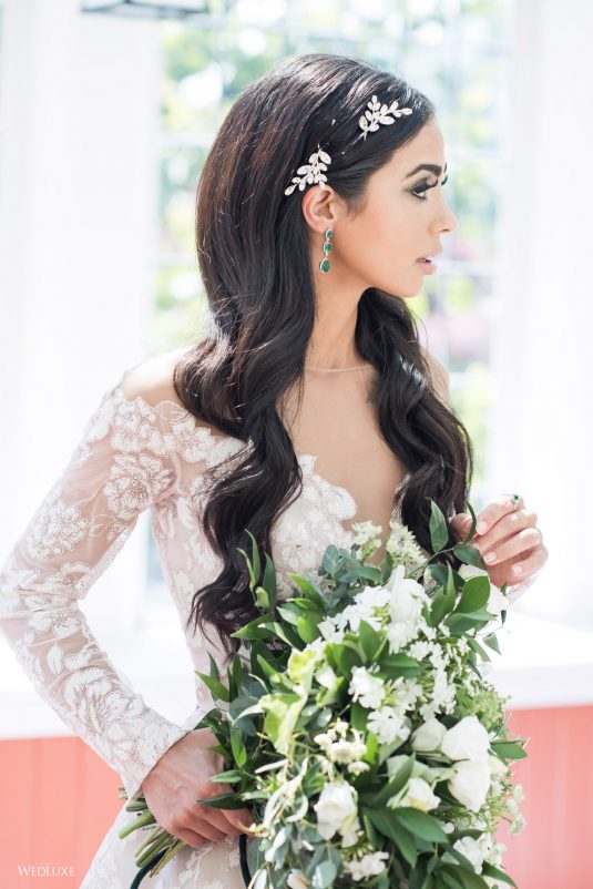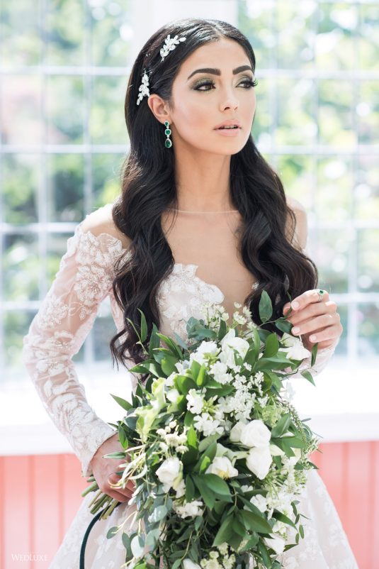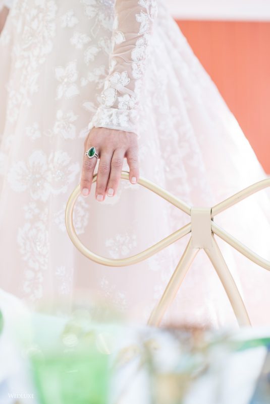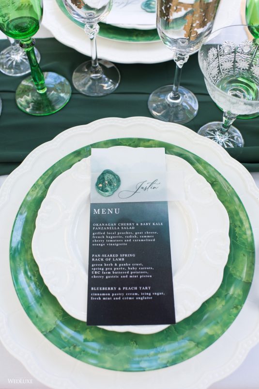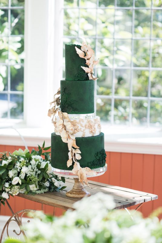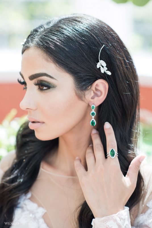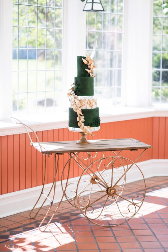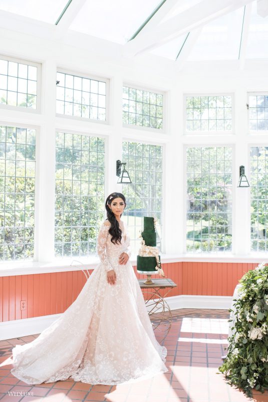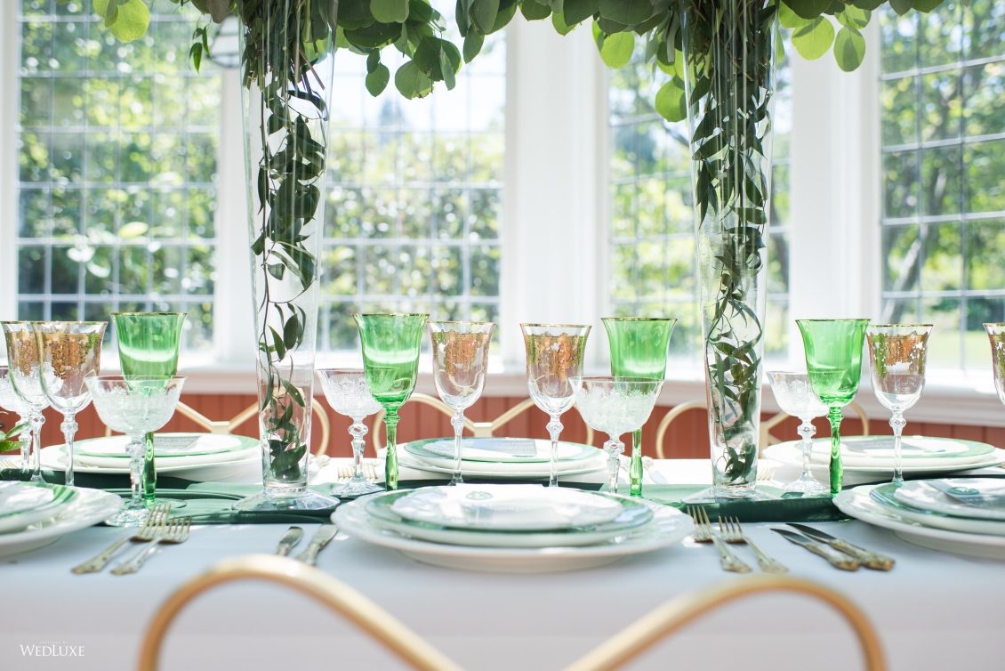 Emerald is a lovely color that can be carried into any season. We created this shoot with a lively garden feel in mind. The beautiful solarium with cascading florals bring the outdoors in, and every detail in between had emerald accents woven throughout.
