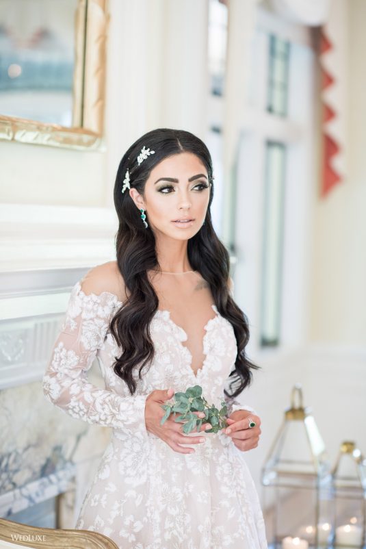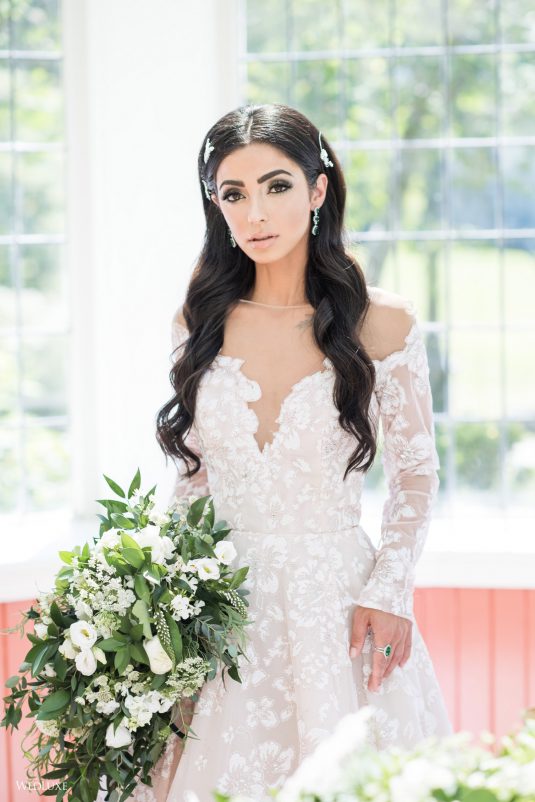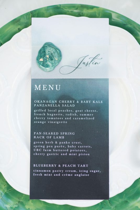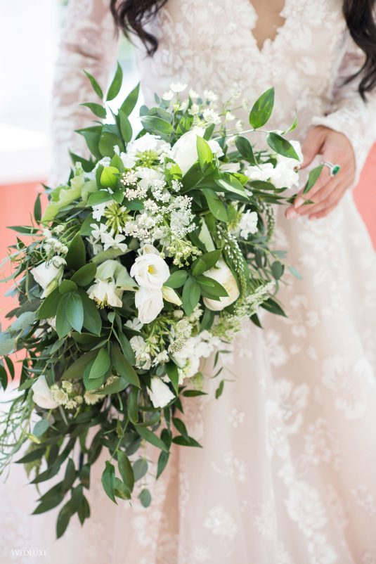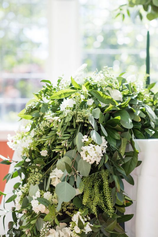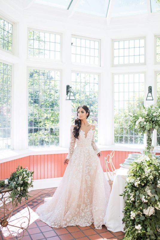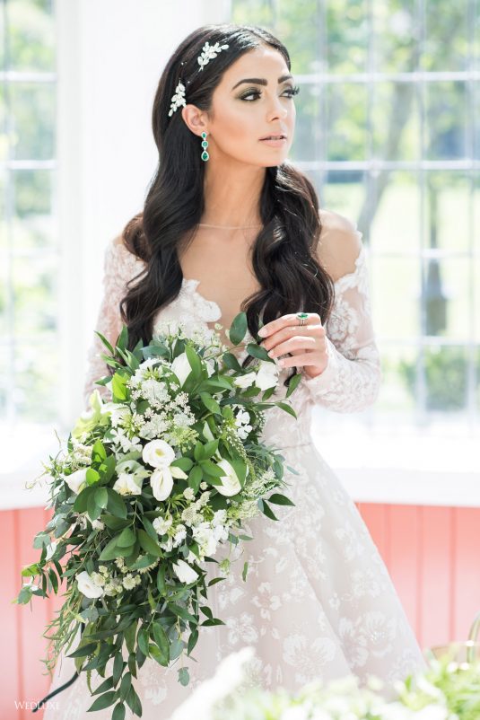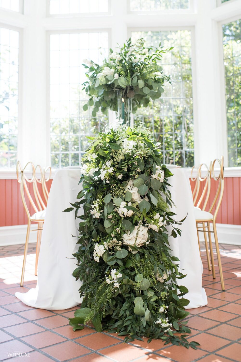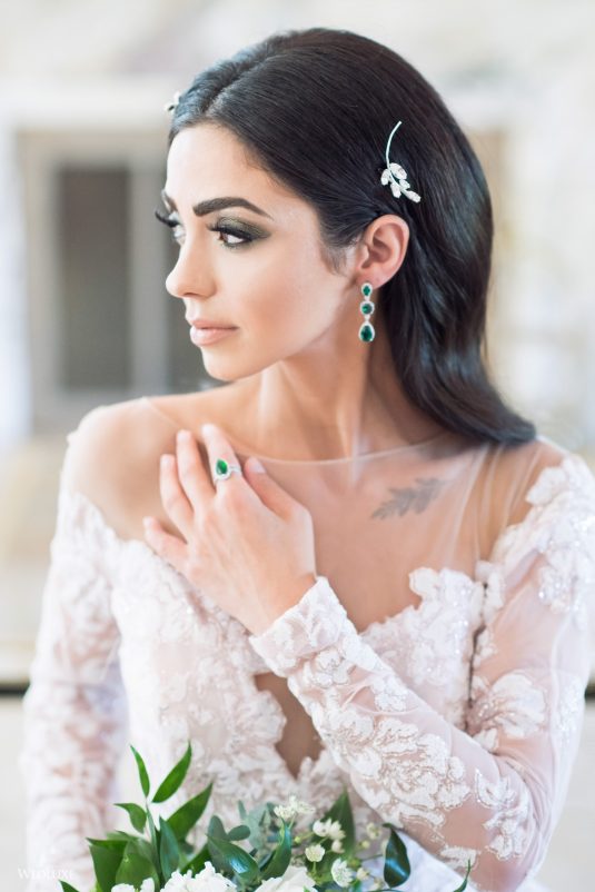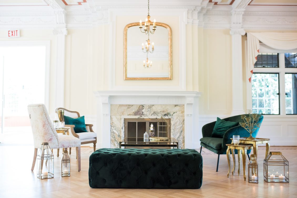 Emerald is a lovely color that can be carried into any season. We created this shoot with a lively garden feel in mind. The beautiful solarium with cascading florals bring the outdoors in, and every detail in between had emerald accents woven throughout.
