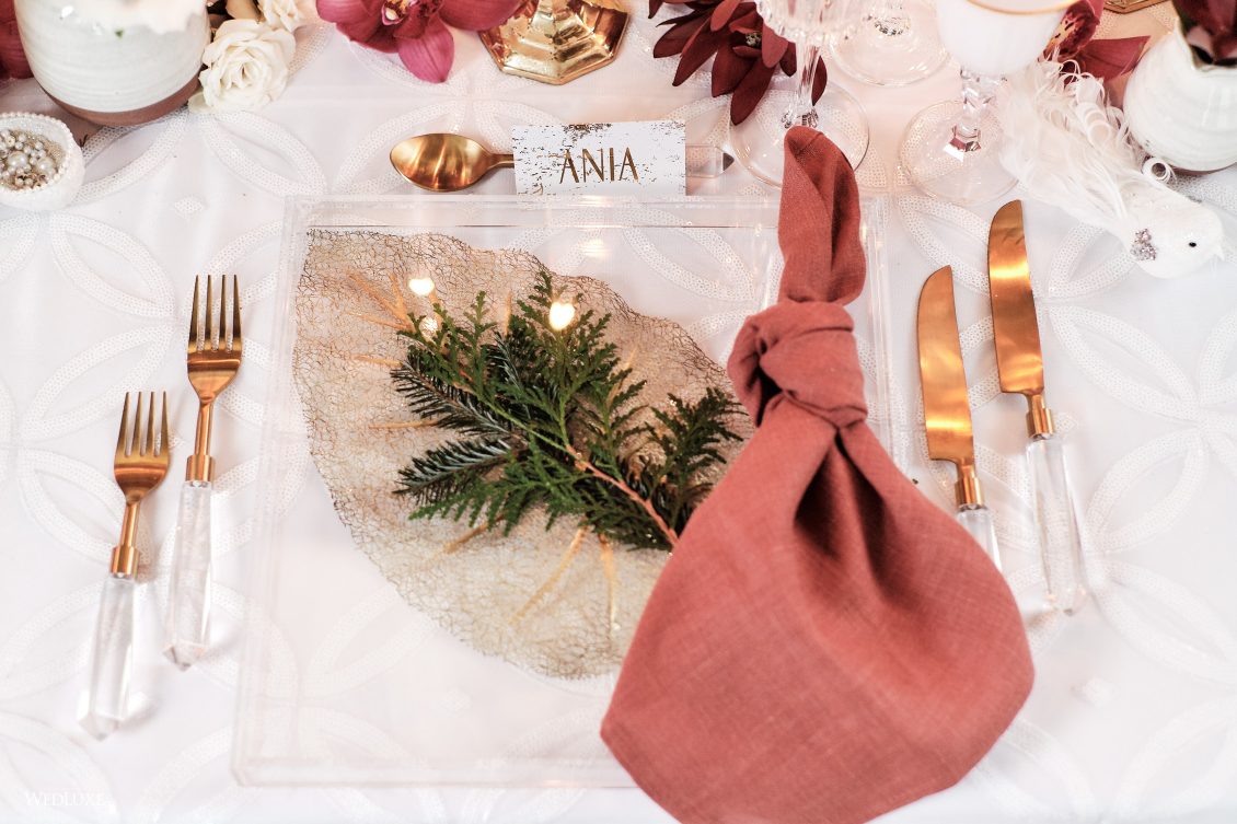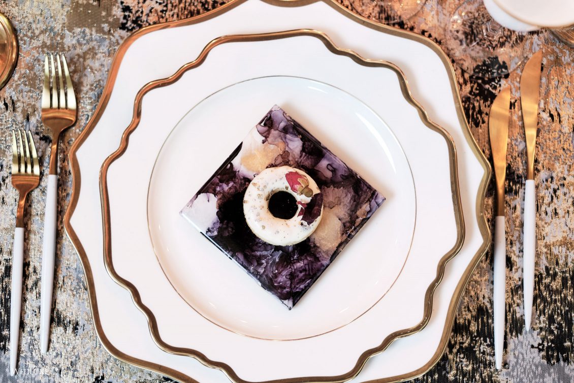 Co-Stylist, White Floral Chargers, Dinner Plates White Flatware, White Glassware, and Napkin Rings,