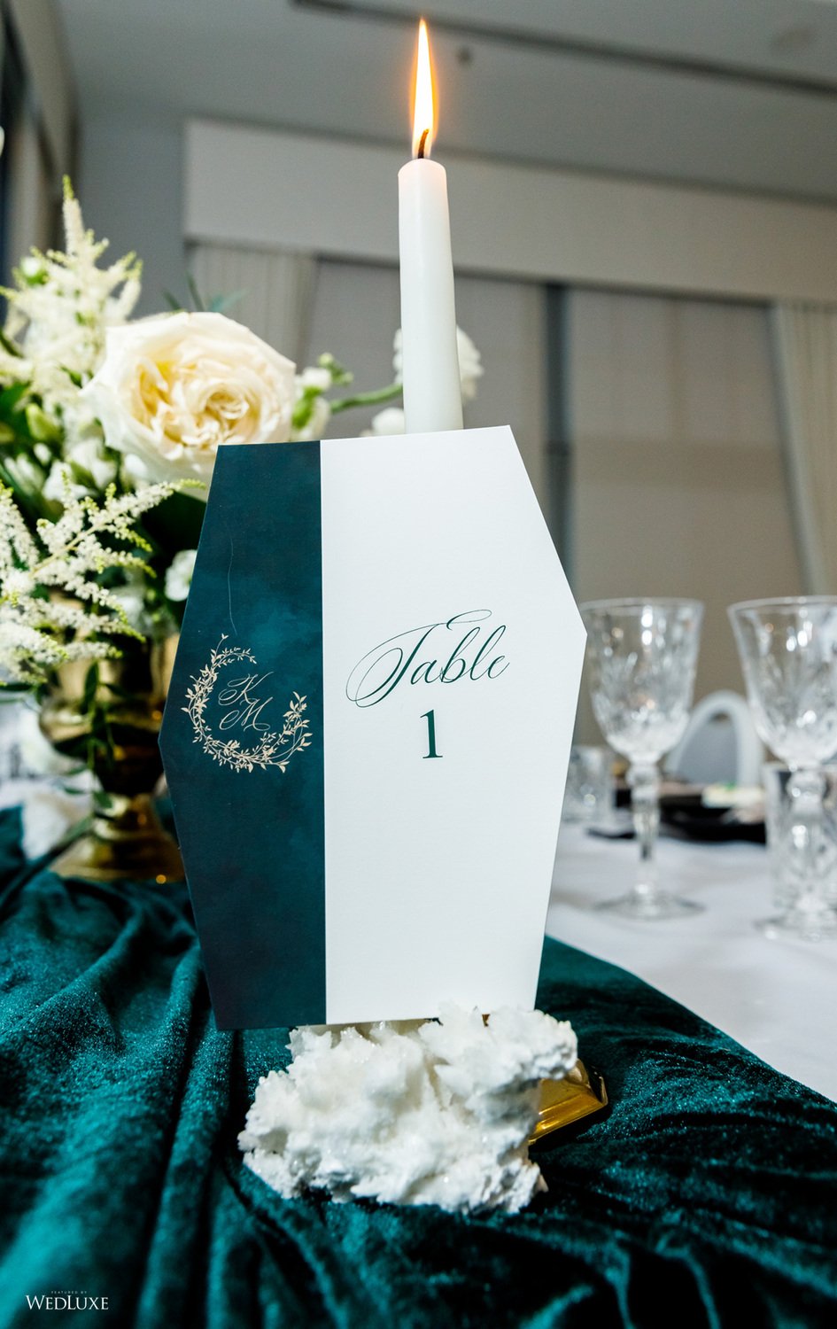 “Emerald Frost” was the guiding theme for this wintery, romantic styled shoot. We love the gorgeous green geode stone woven throughout… and the pop of dramatic black in the reception design. Also, LOVING the HMU for this shoot. Since we’ve been LIVING in comfy clothes and under lockdown for what feels like forever, we can’t wait to get dressed up again!
