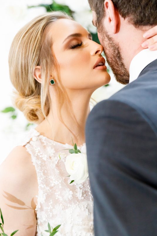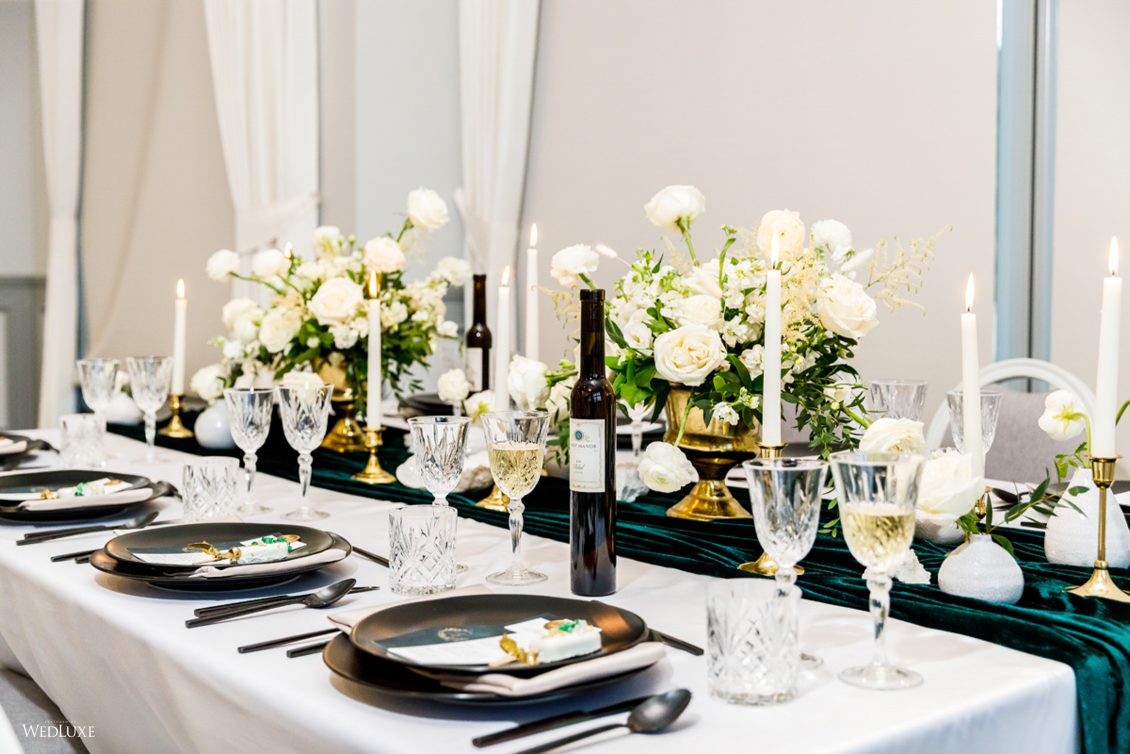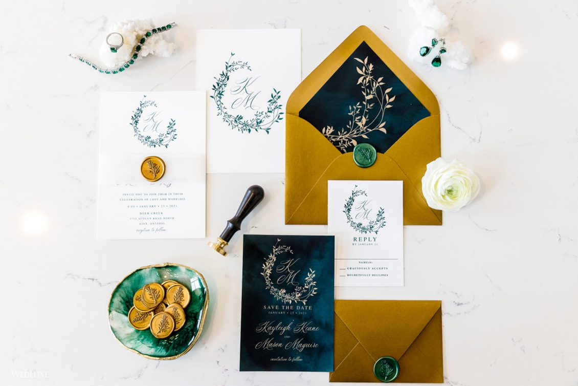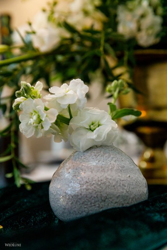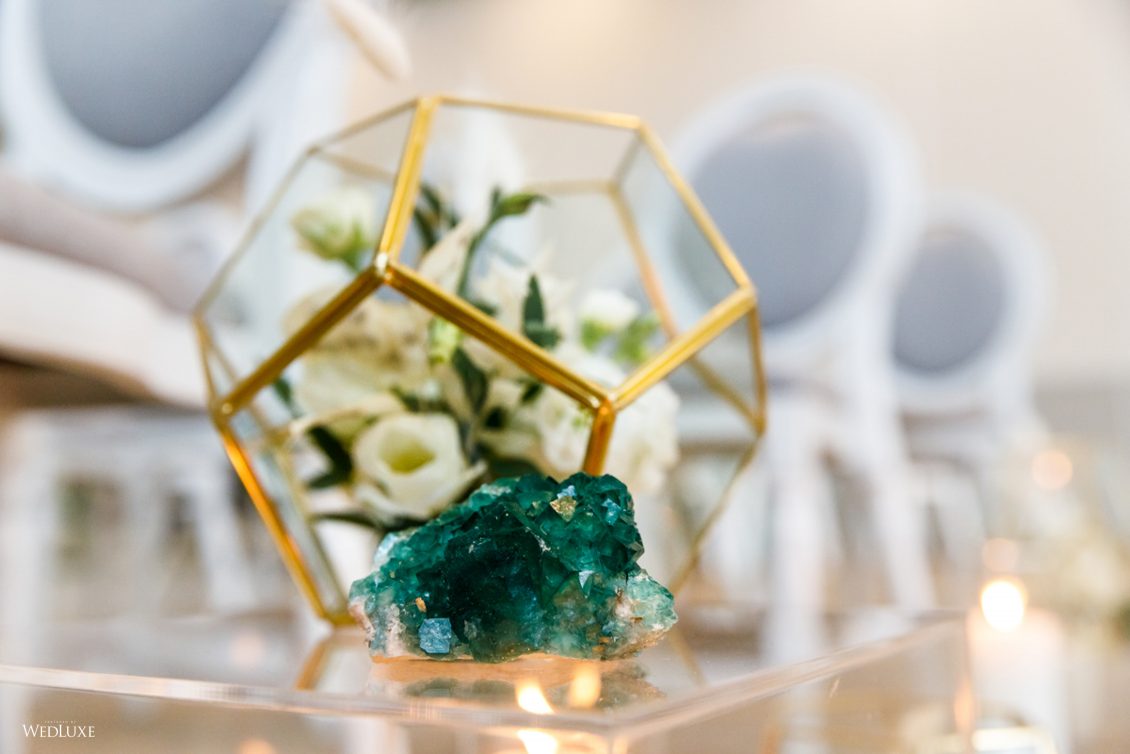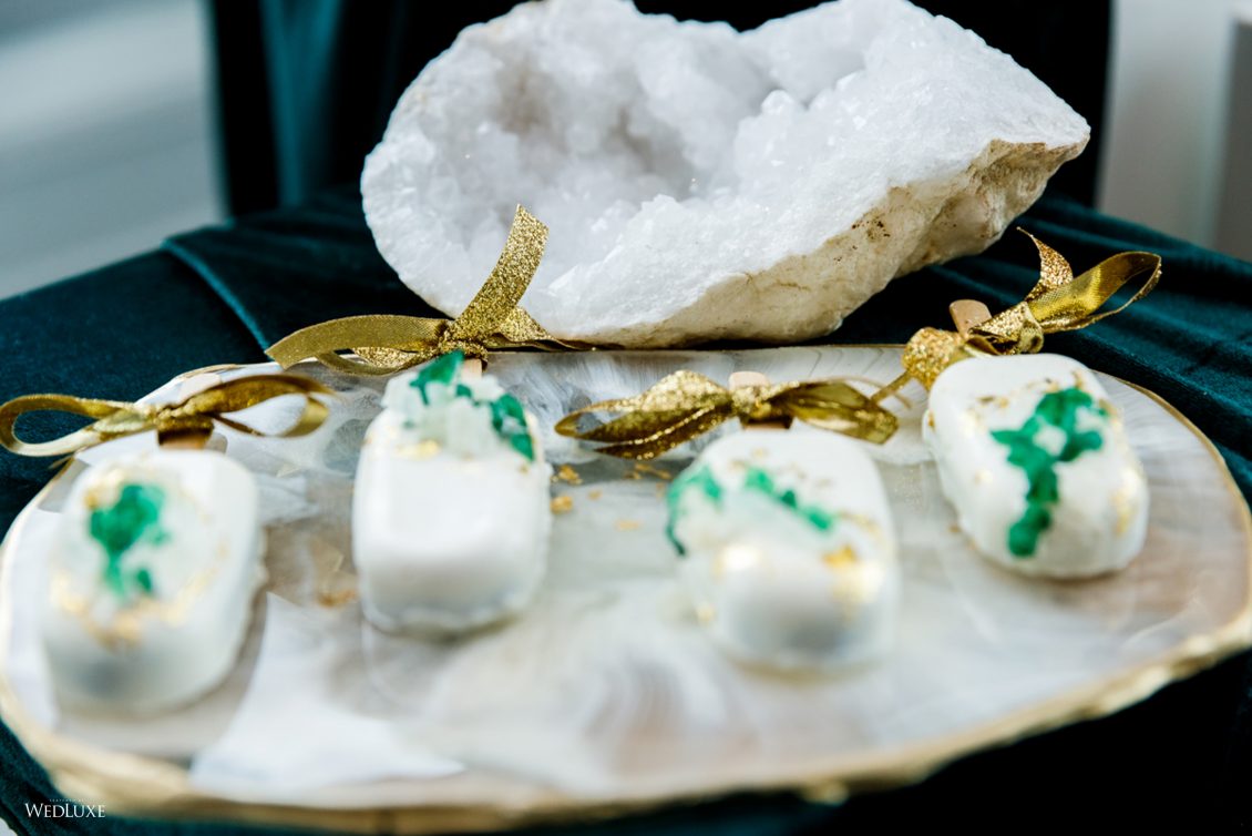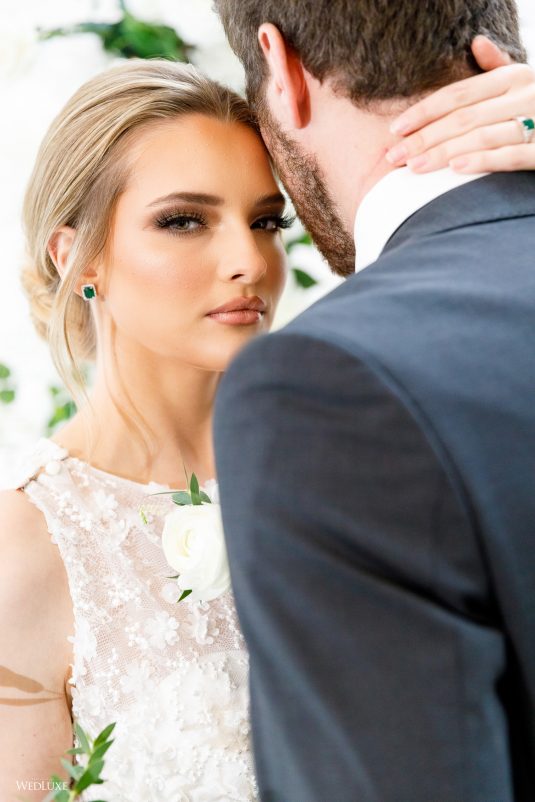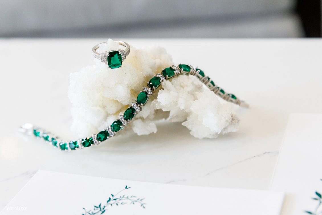 “Emerald Frost” was the guiding theme for this wintery, romantic styled shoot. We love the gorgeous green geode stone woven throughout… and the pop of dramatic black in the reception design. Also, LOVING the HMU for this shoot. Since we’ve been LIVING in comfy clothes and under lockdown for what feels like forever, we can’t wait to get dressed up again!