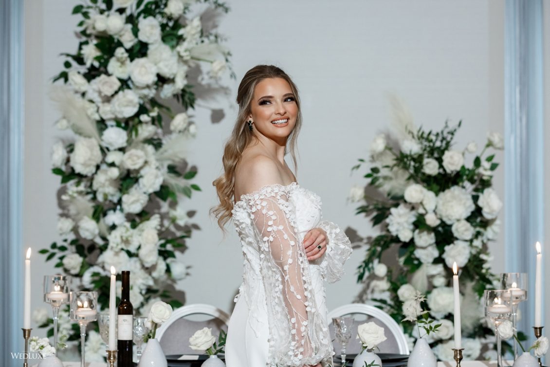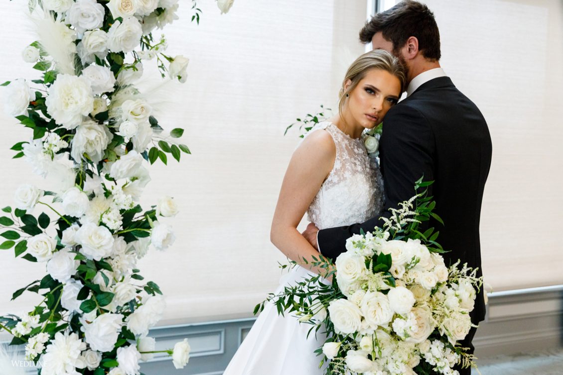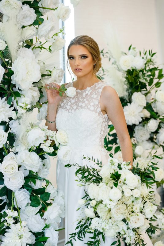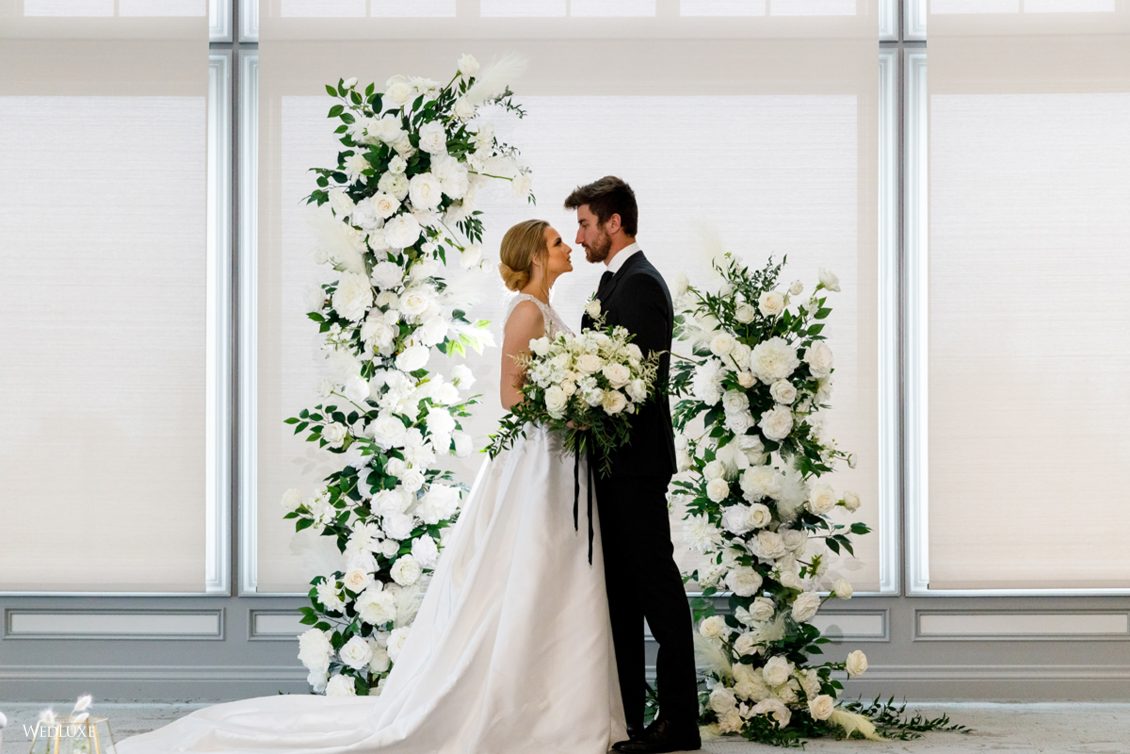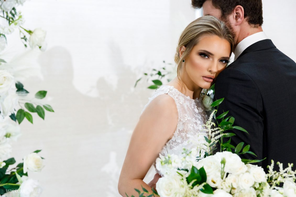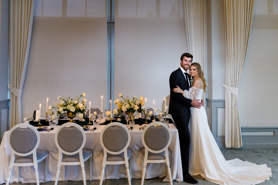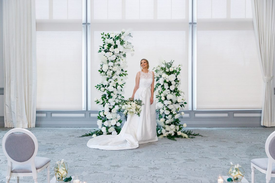 “Emerald Frost” was the guiding theme for this wintery, romantic styled shoot. We love the gorgeous green geode stone woven throughout… and the pop of dramatic black in the reception design. Also, LOVING the HMU for this shoot. Since we’ve been LIVING in comfy clothes and under lockdown for what feels like forever, we can’t wait to get dressed up again!