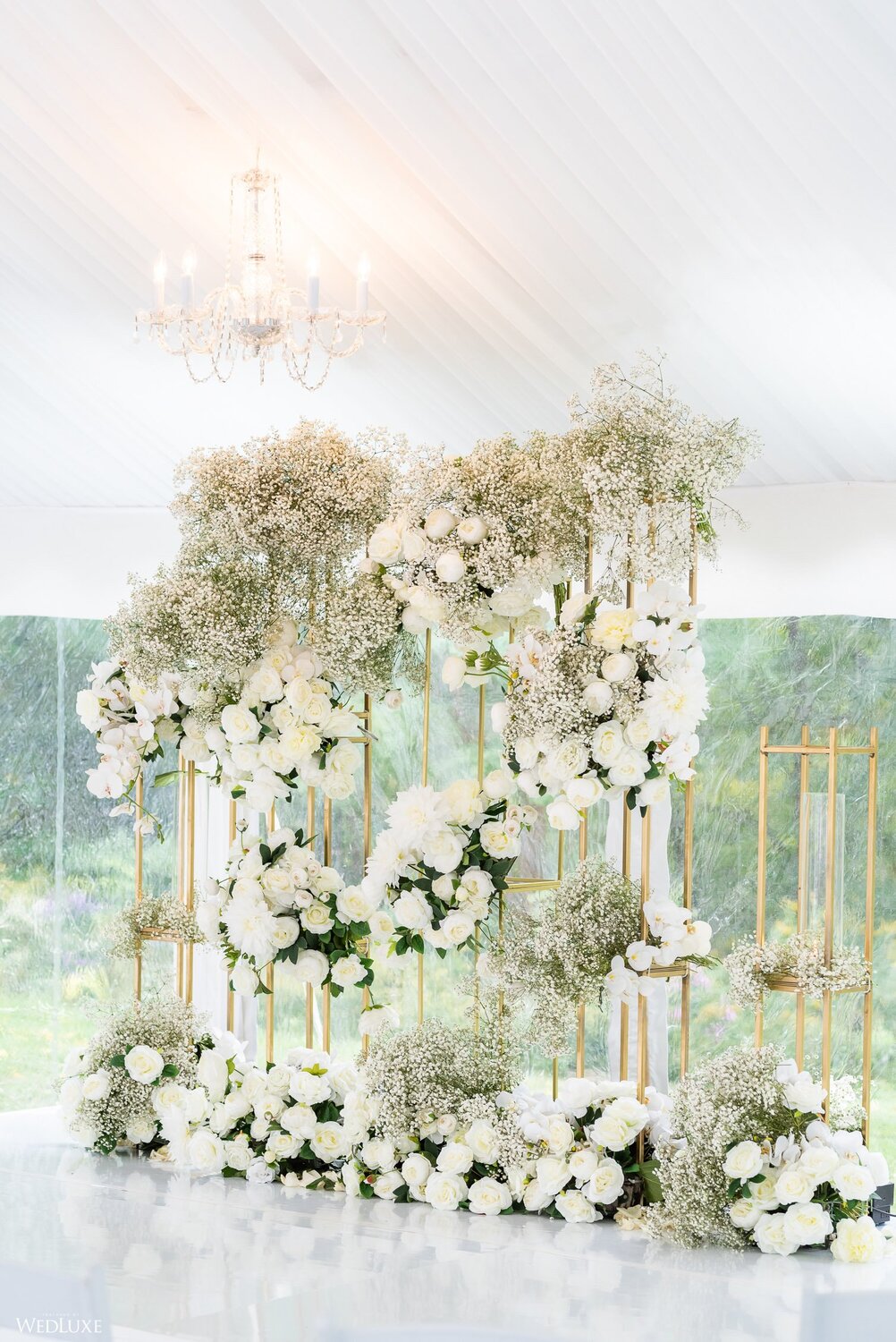 It was Kristina and Brandon's priority to plan a wedding that would make their guests feel comfortable and safe. We brought in a tent for the ceremony, and ensured a timeless modern design. We later transformed this space into an outdoor garden lounge with ottomans, couches, candlelight and music.