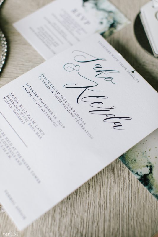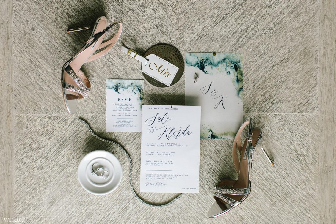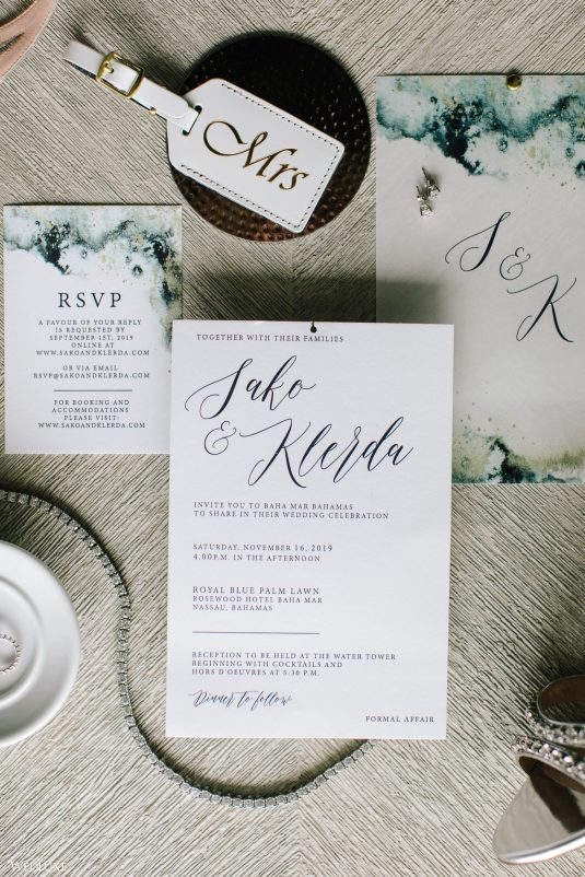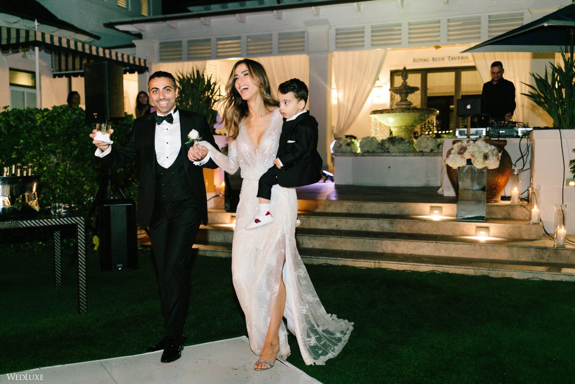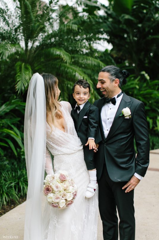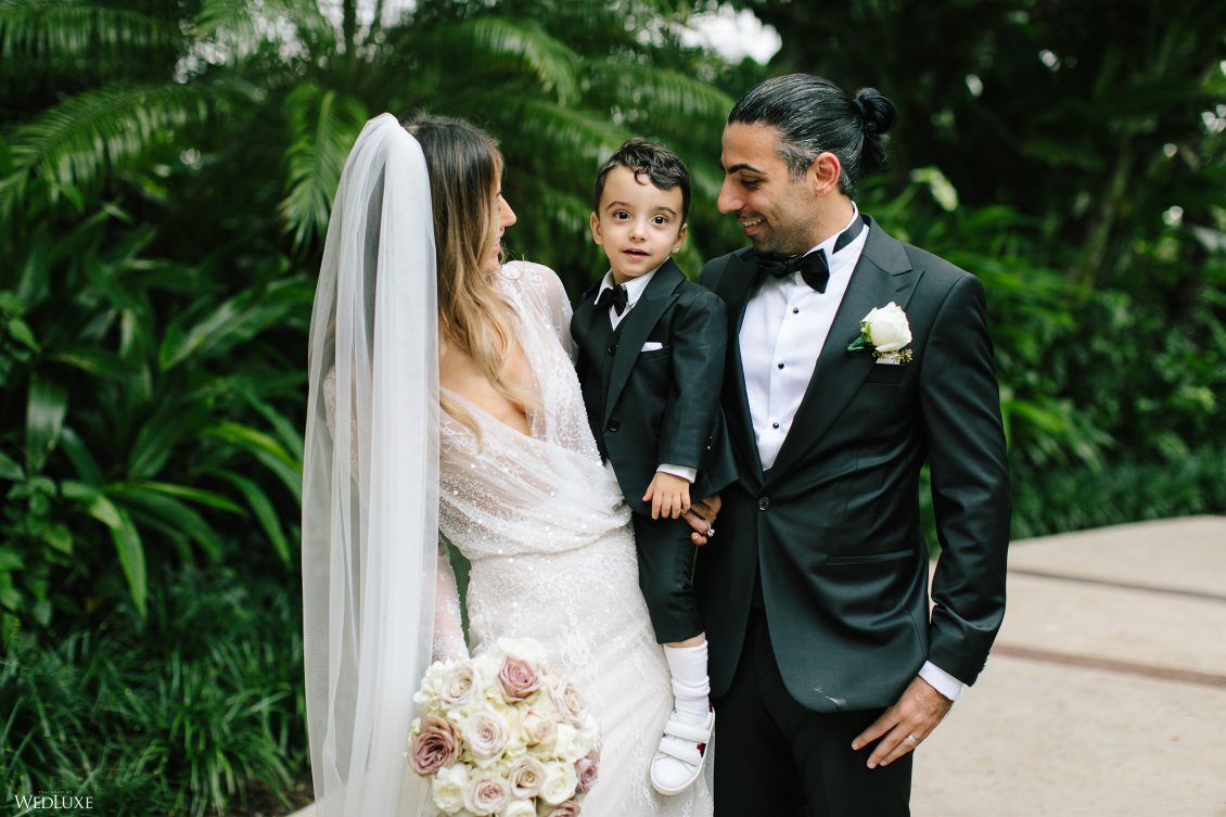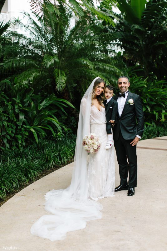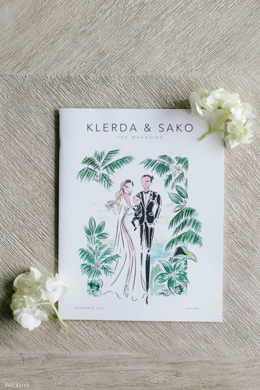 Hmm! We’re feeling all warm and fuzzy thanks to Klerda and Sako’s gorgeous tropical wedding in Nassau, Bahamas! The event was extra special because they got to share their big day with their son Cruz! Also, we LOVE the fashion illustration of the couple that previewed them in their garden ceremony on Baha Mar’s grounds.