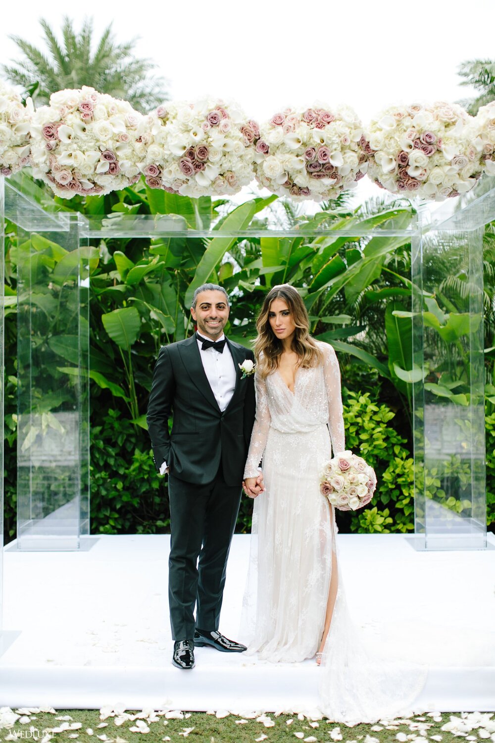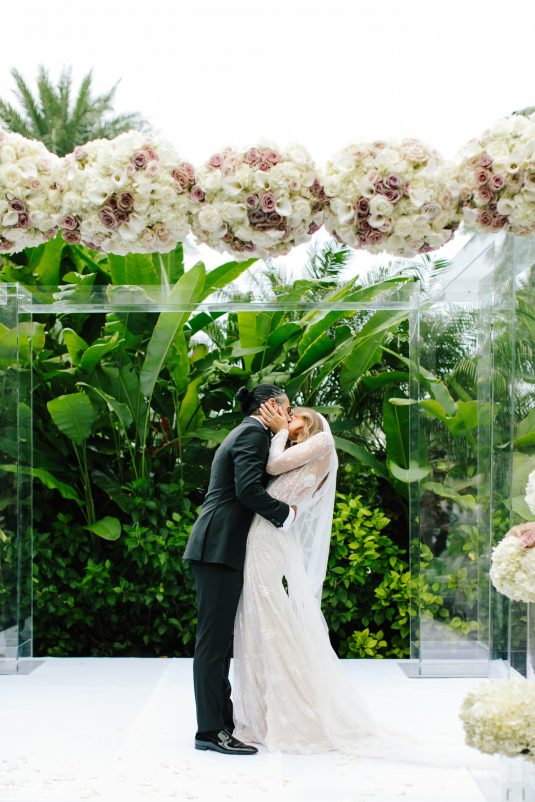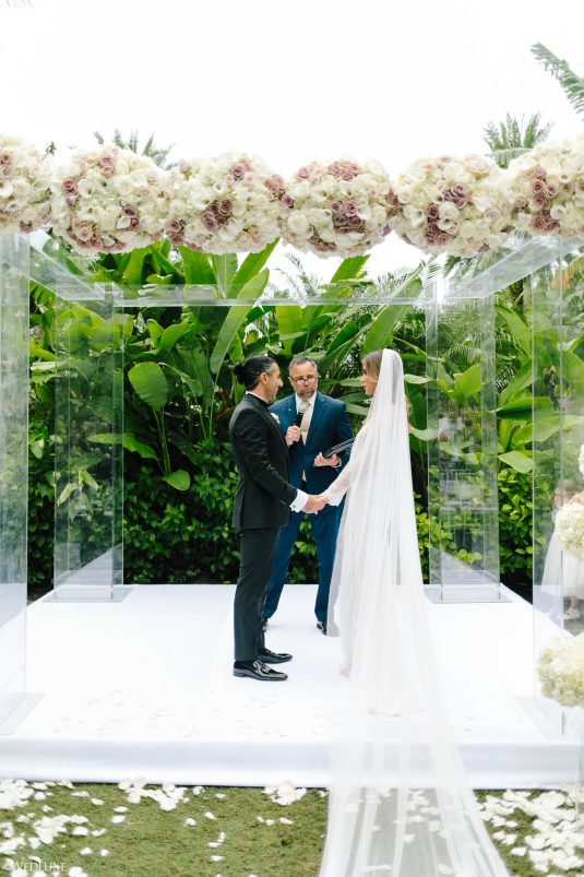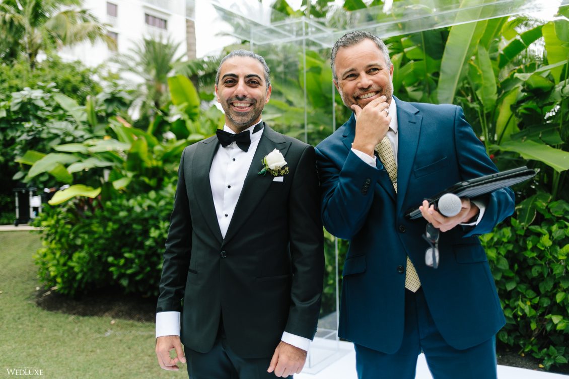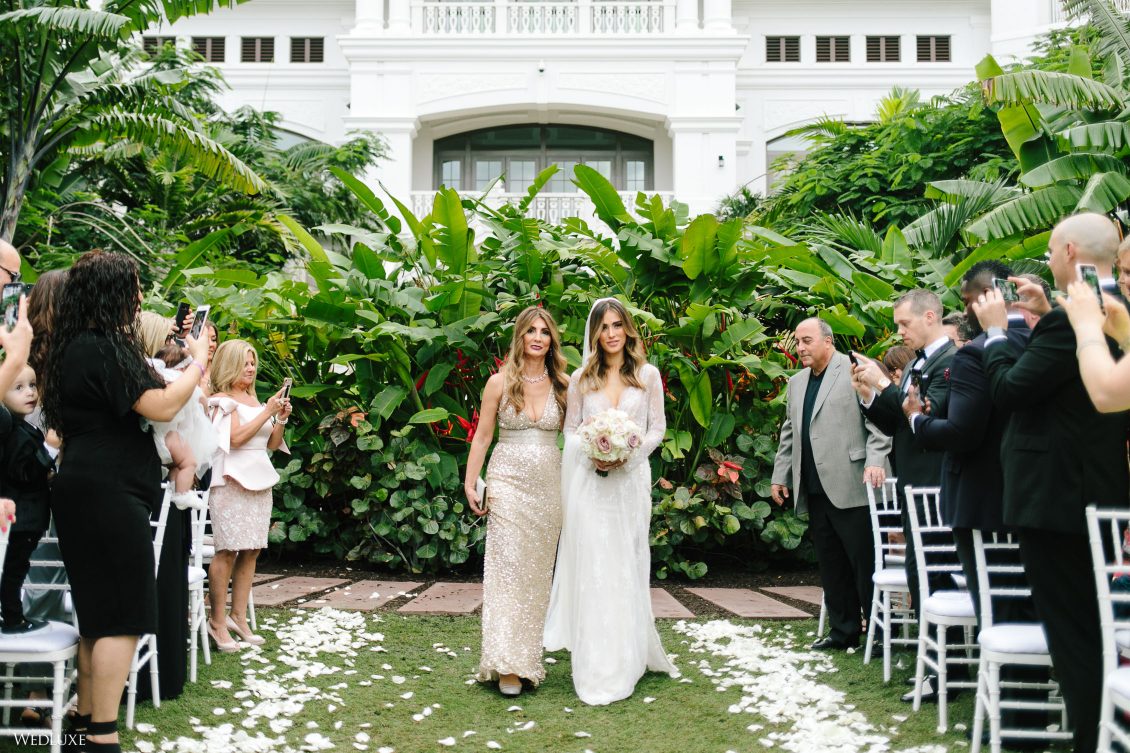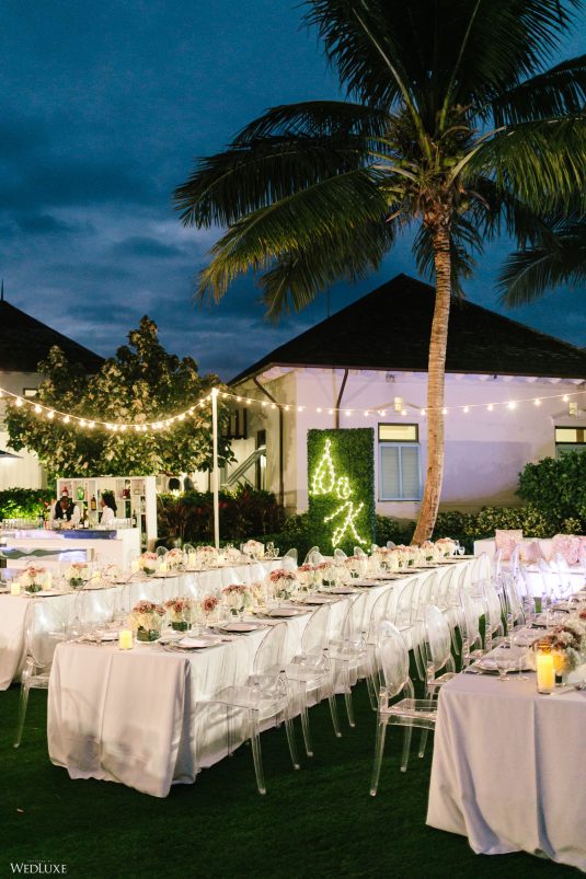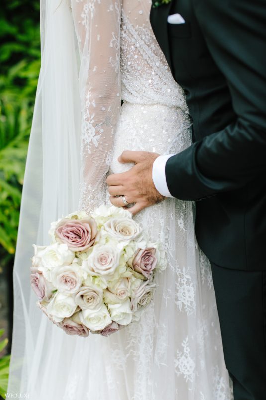 Hmm! We’re feeling all warm and fuzzy thanks to Klerda and Sako’s gorgeous tropical wedding in Nassau, Bahamas! The event was extra special because they got to share their big day with their son Cruz! Also, we LOVE the fashion illustration of the couple that previewed them in their garden ceremony on Baha Mar’s grounds.