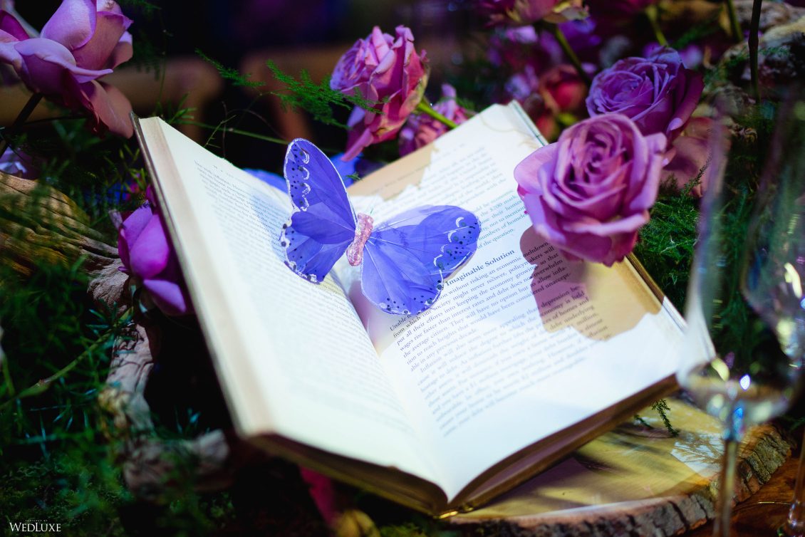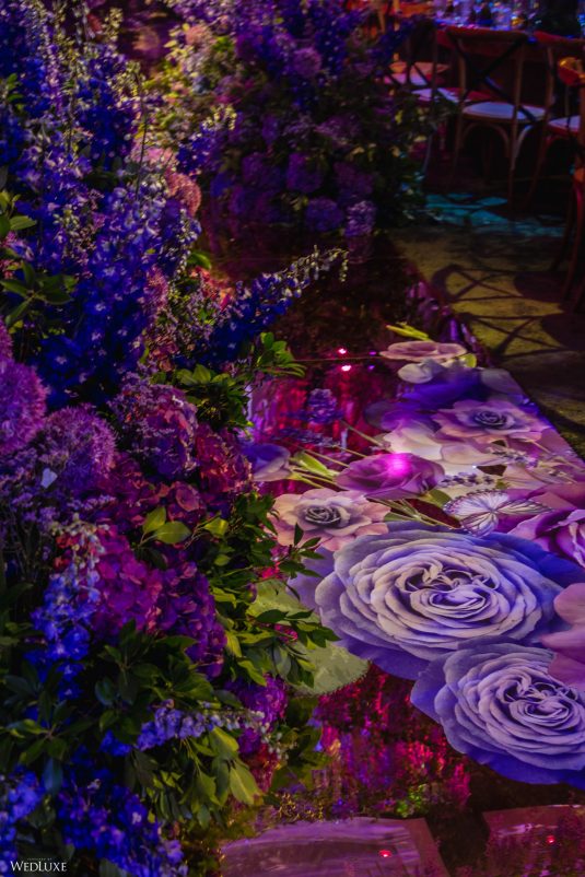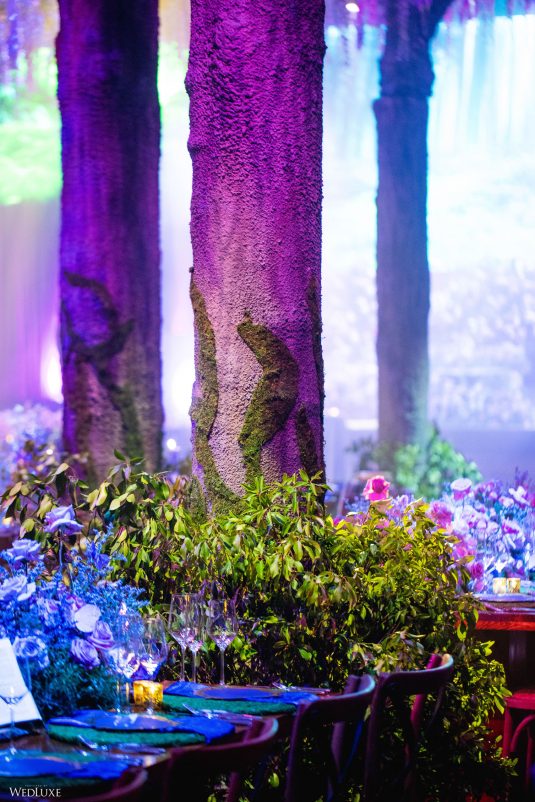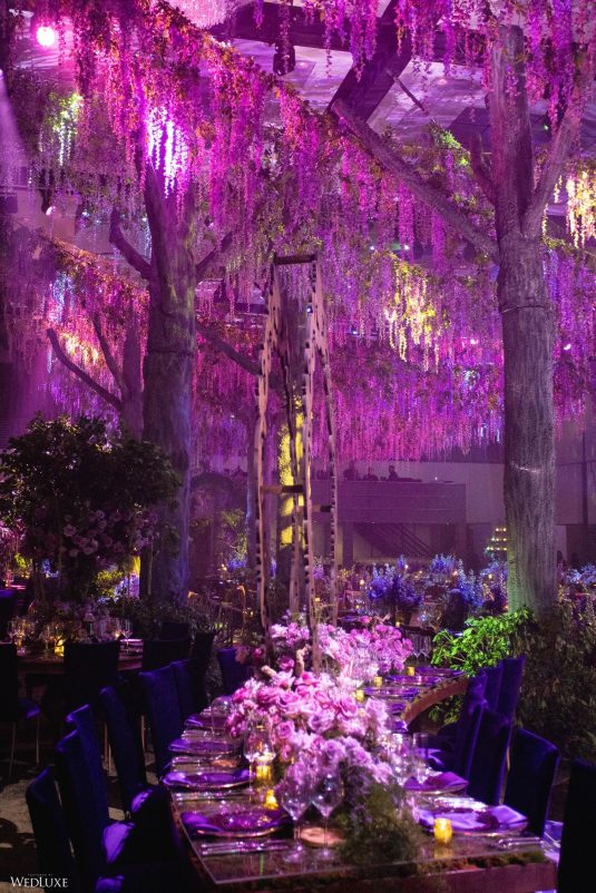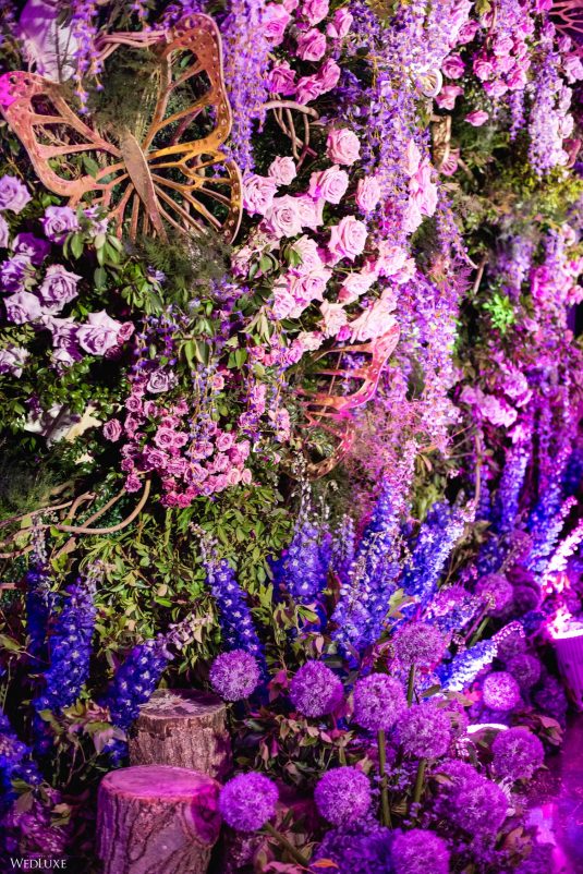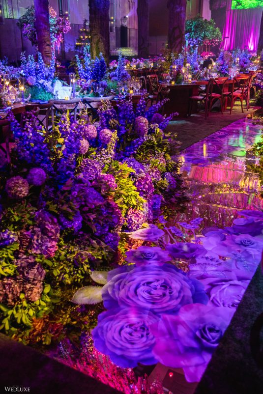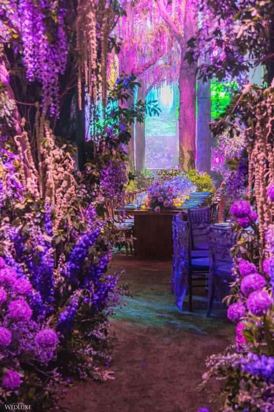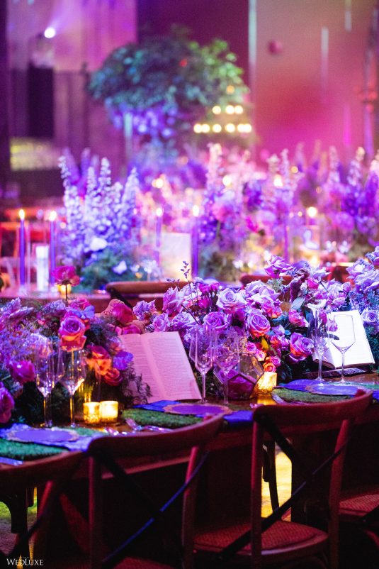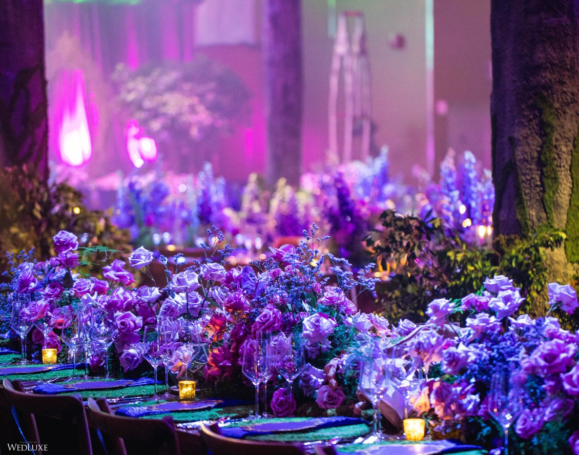 This wedding looks like it’s been pulled straight from a fairytale storybook! First, guests were transported to a golden and cream-colored ceremony space filled to the brim with lush florals by Design House Decor . Then, they moved to a violet-hued enchanted forest — oops, we meant reception — with elven servers! This evening was truly a FANTASTICAL escape.