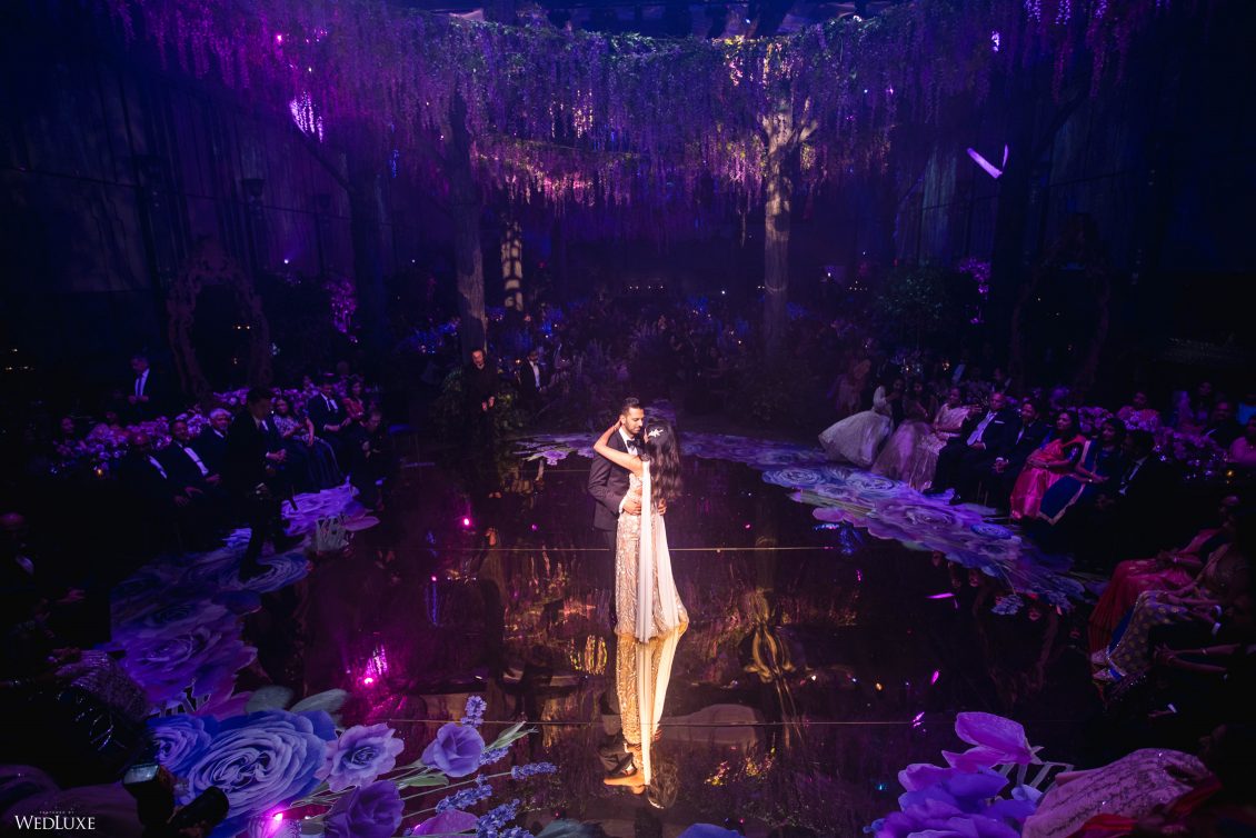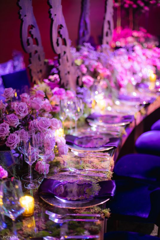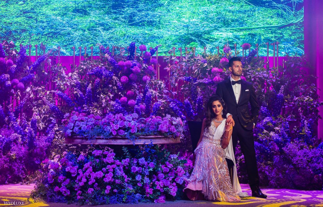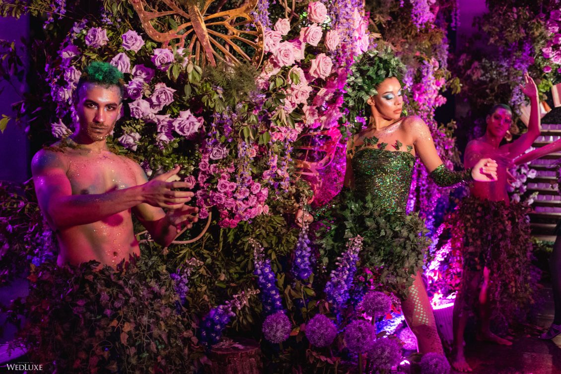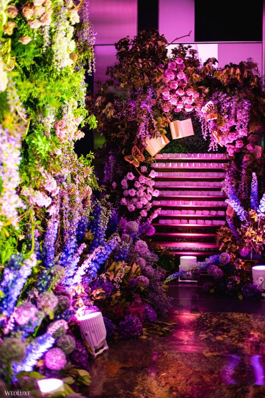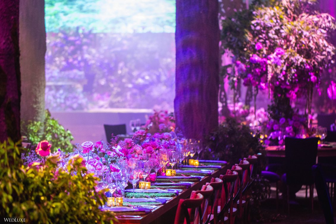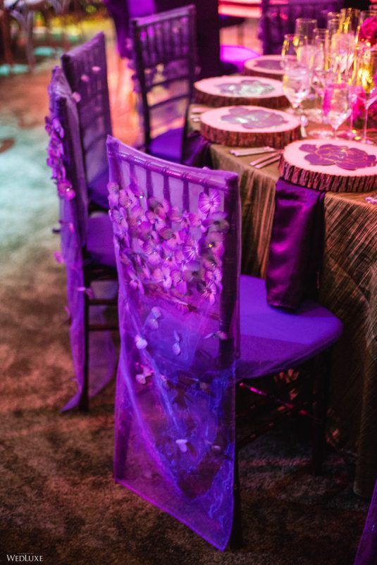 This wedding looks like it’s been pulled straight from a fairytale storybook! First, guests were transported to a golden and cream-colored ceremony space filled to the brim with lush florals by Design House Decor . Then, they moved to a violet-hued enchanted forest — oops, we meant reception — with elven servers! This evening was truly a FANTASTICAL escape.