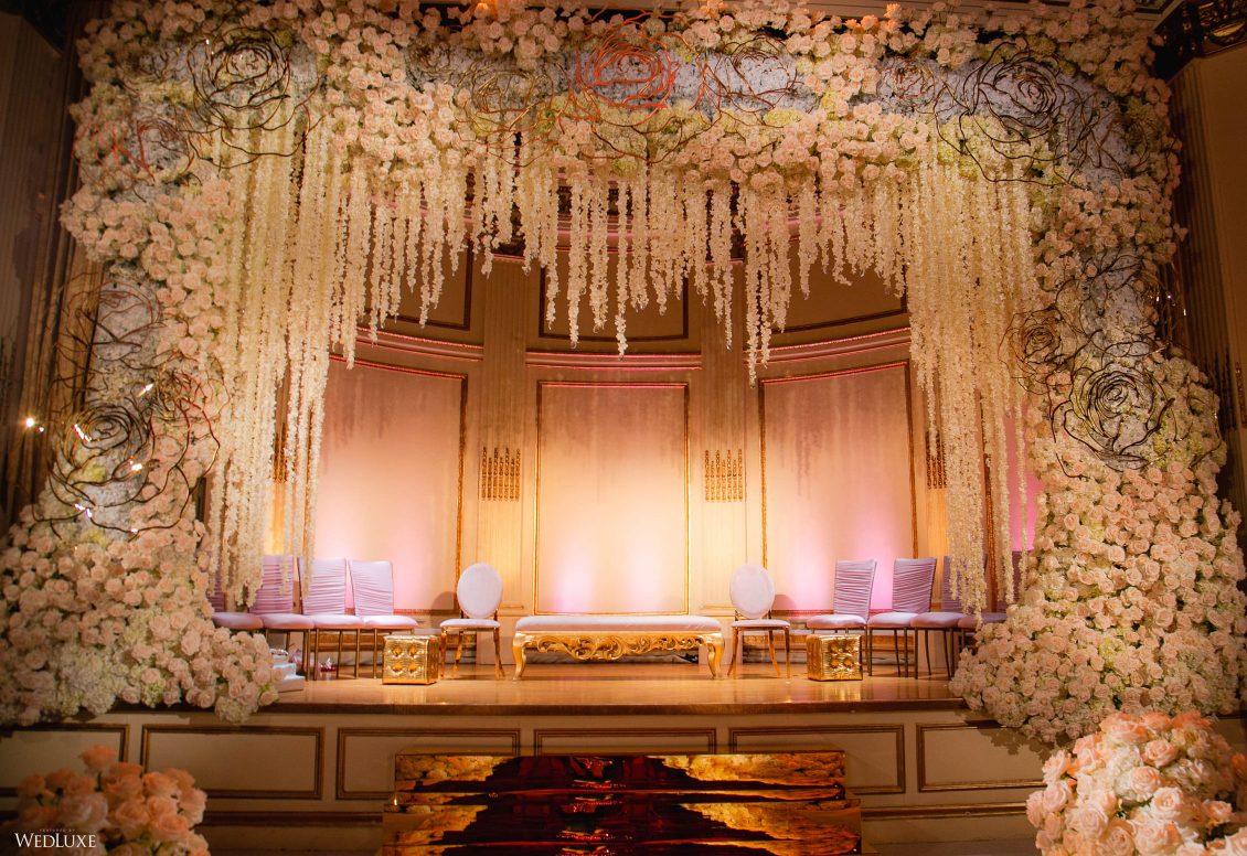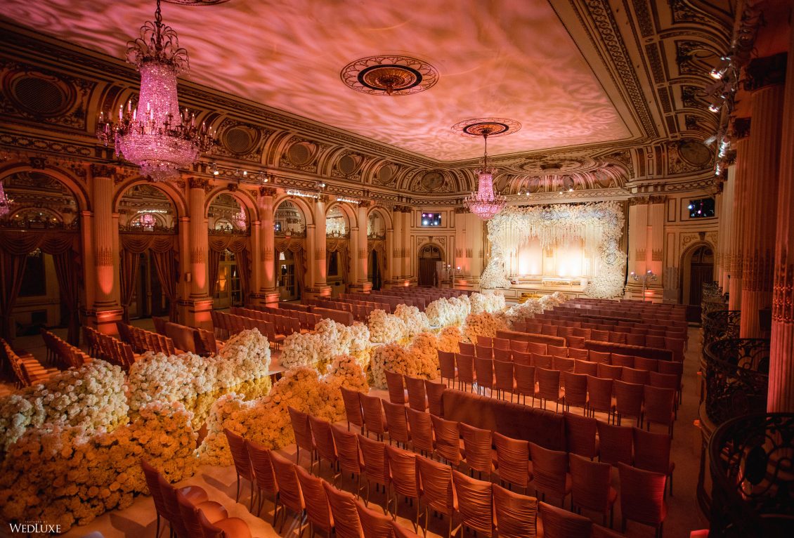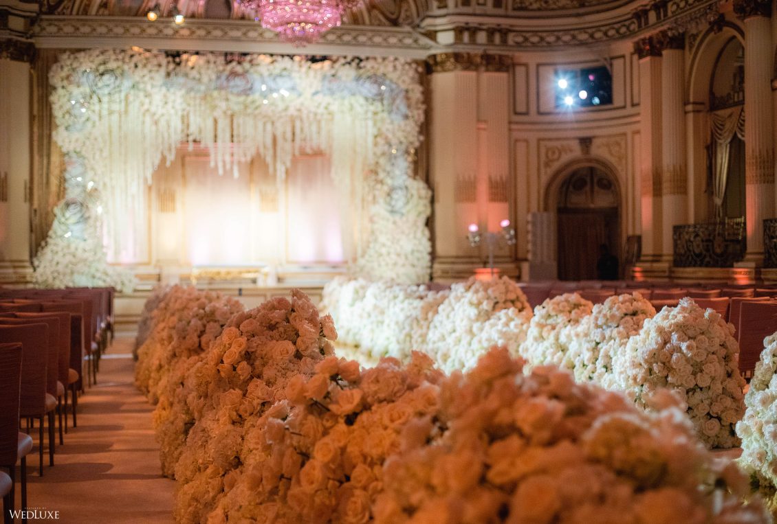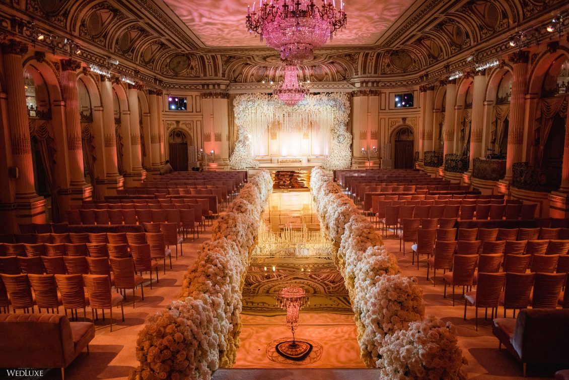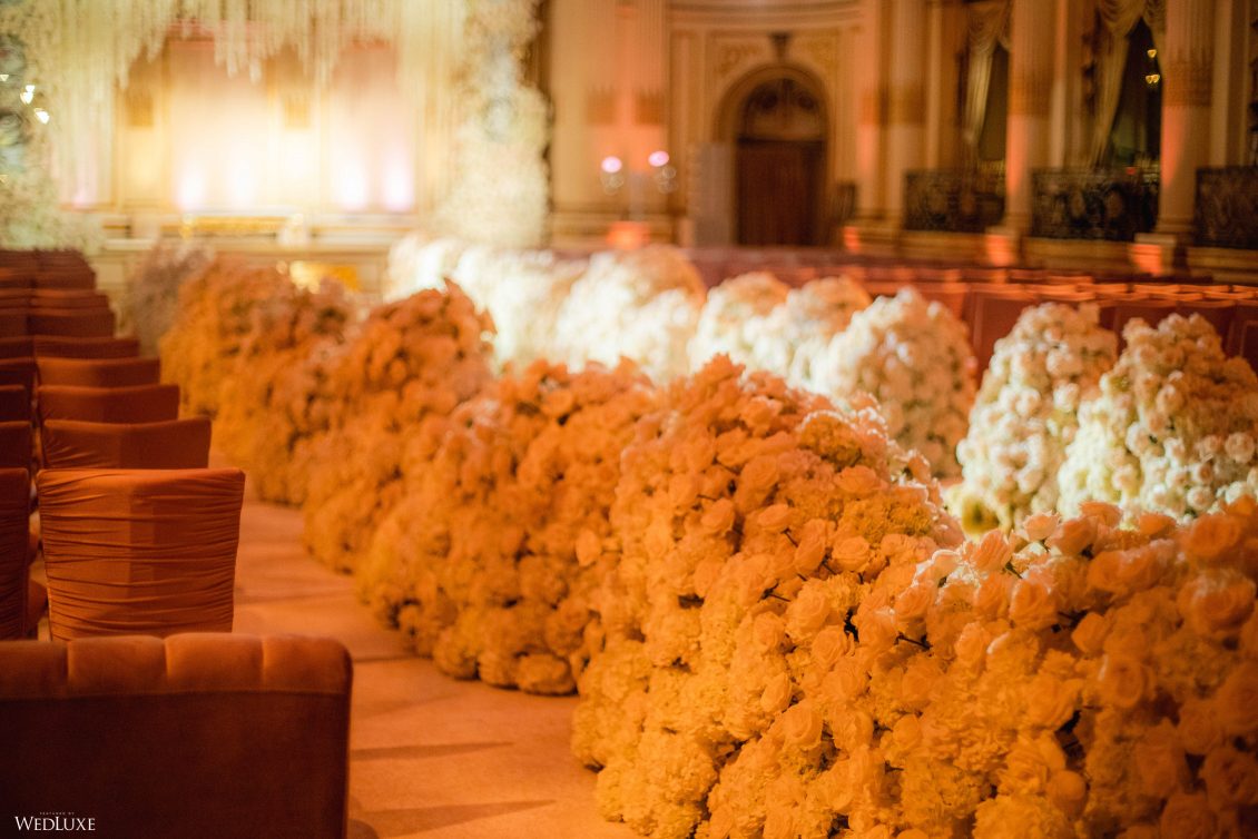 This wedding looks like it’s been pulled straight from a fairytale storybook! First, guests were transported to a golden and cream-colored ceremony space filled to the brim with lush florals by Design House Decor . Then, they moved to a violet-hued enchanted forest — oops, we meant reception — with elven servers! This evening was truly a FANTASTICAL escape.