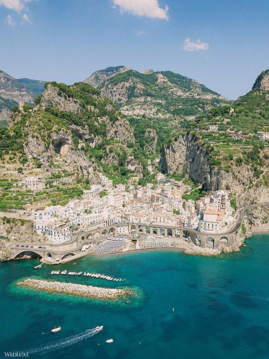 Imagine this: after a challenging year, you’re jetting off to the Amalfi coastline of Ravello, Italy for a three-day destination wedding. On your first day, you enjoy lounging around the Villa before joining a welcome party of friends and family. Next, a modern ceremony and reception, and for your final day, a boat trip along the Coast before an afternoon lunch to close the celebrations. Ah, we can almost smell the fresh sea breeze!