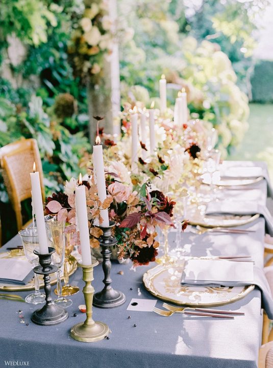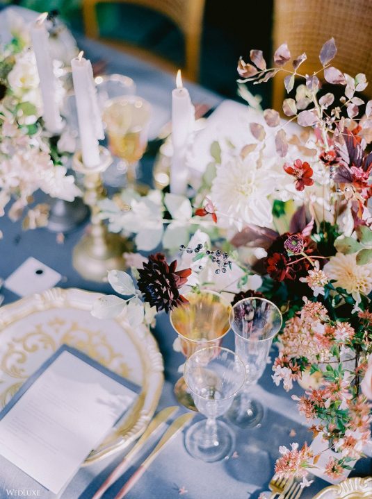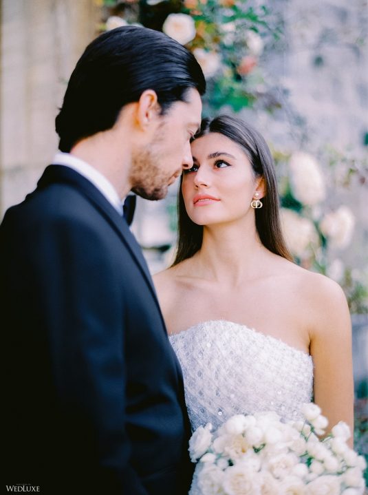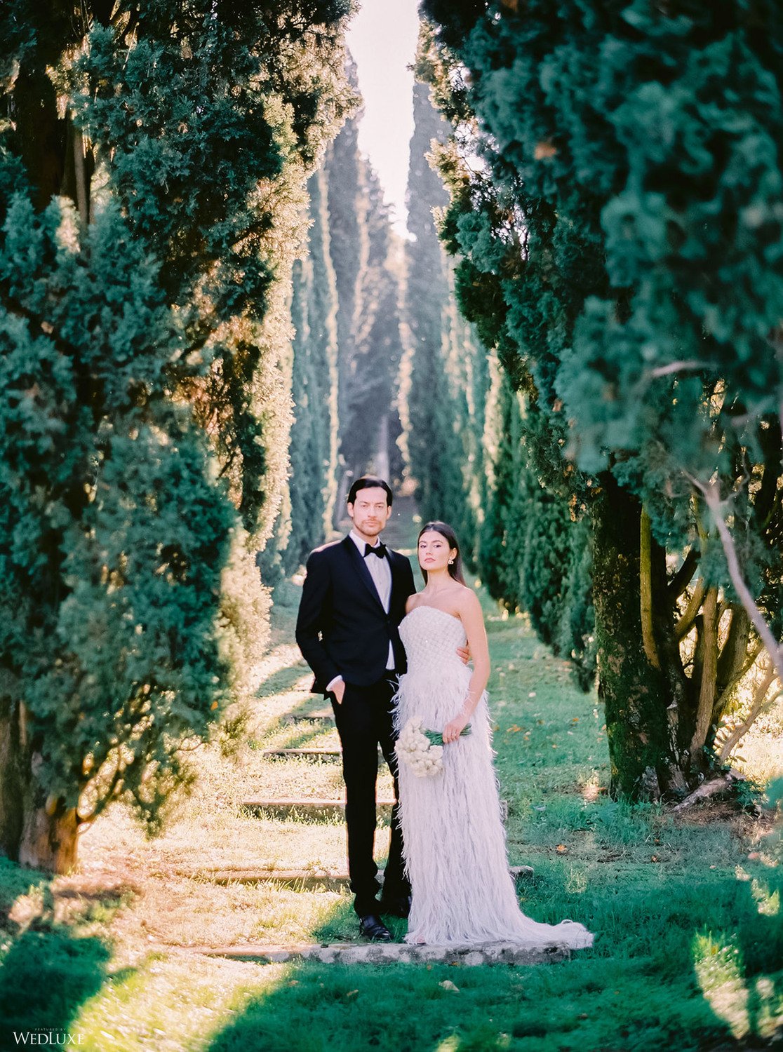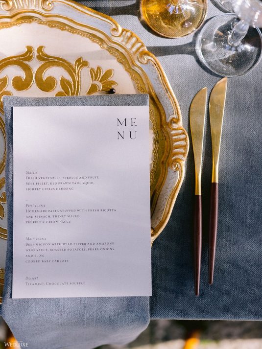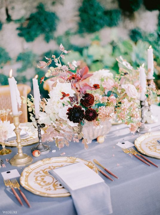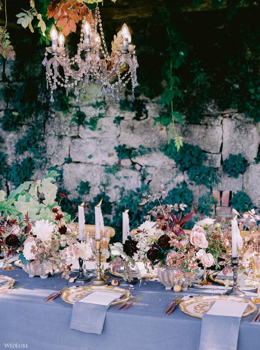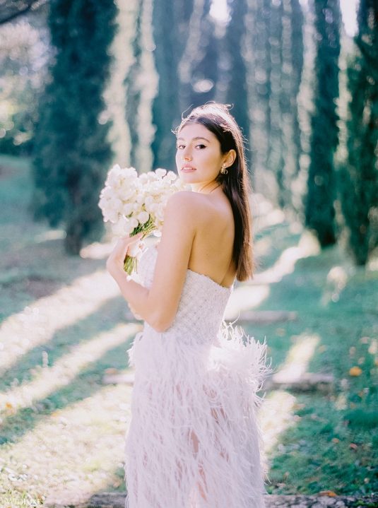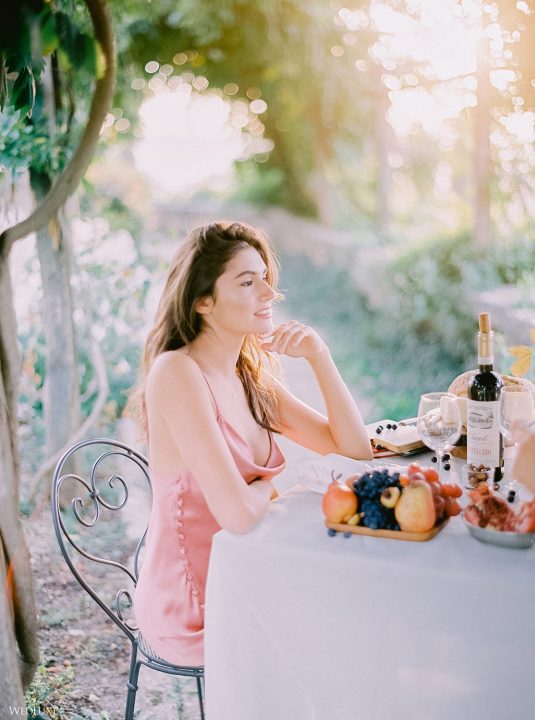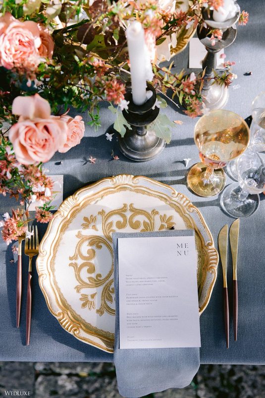 The inspiration for this Tuscan styled shoot is all about the 15th-century countryside homestead, La Foce, with its immaculately manicured late-summer gardens and Renaissance romance. The showstopper of this locale is an ornate Nymphaeum, a monument to spring nymphs, where lies a majestic grotto and secret fountain—the most magical and unexpected ceremony setting of the venue.