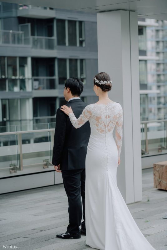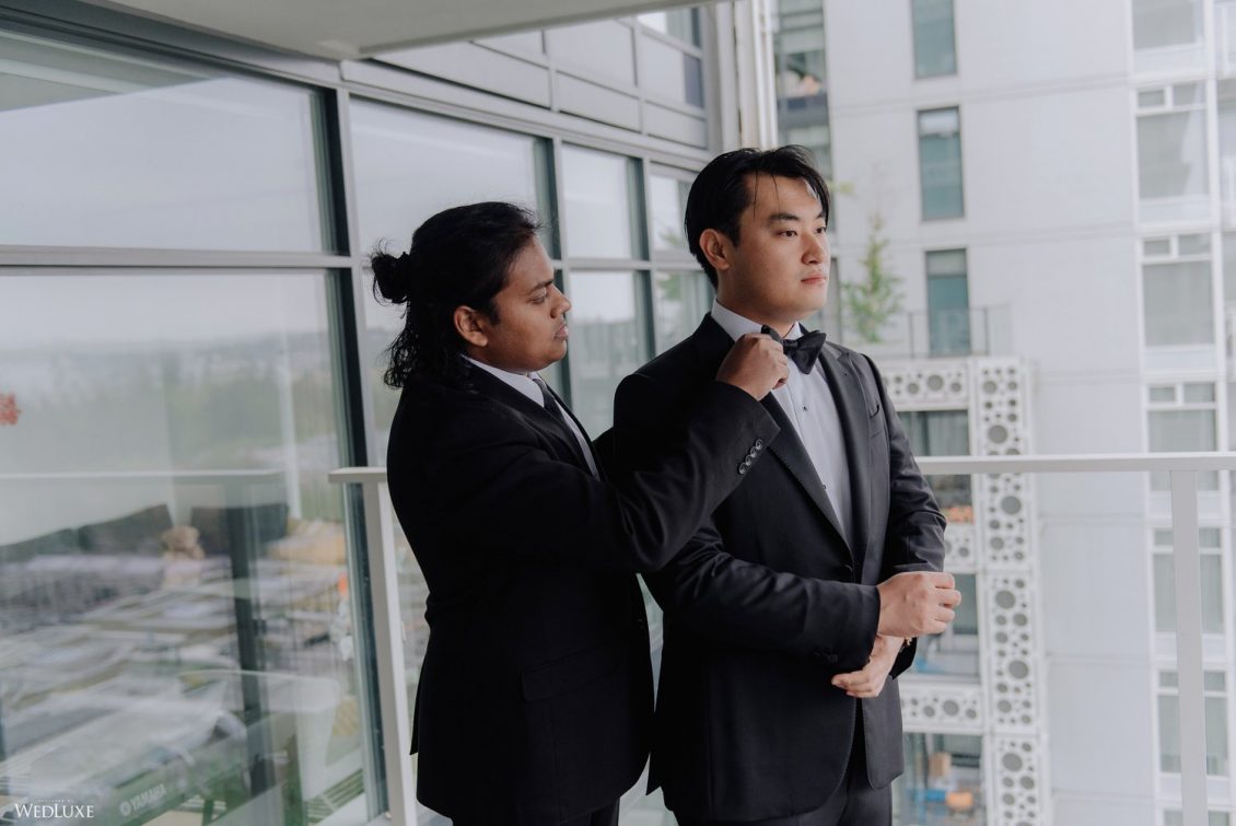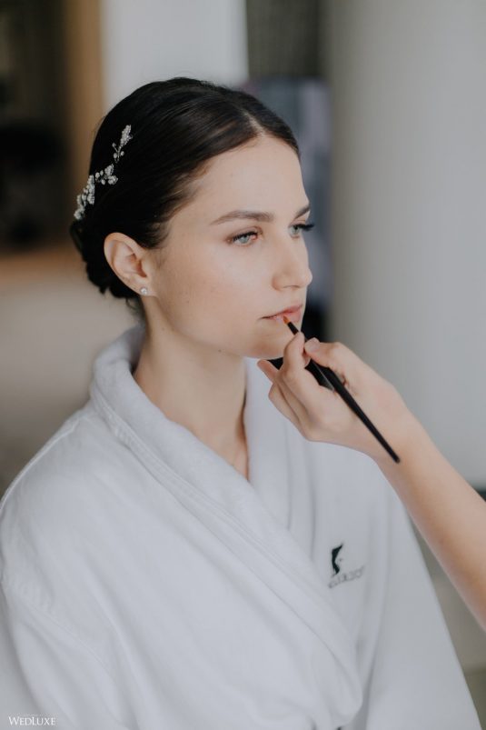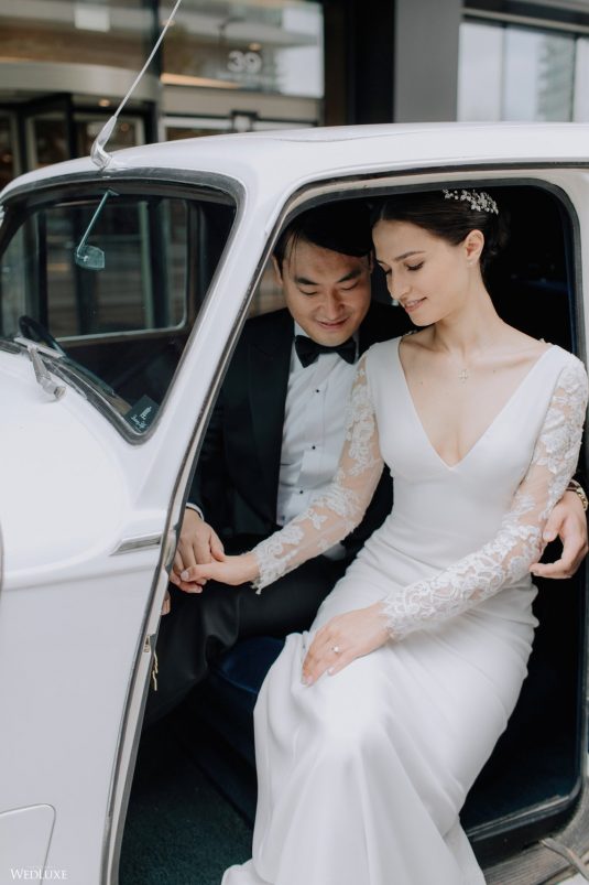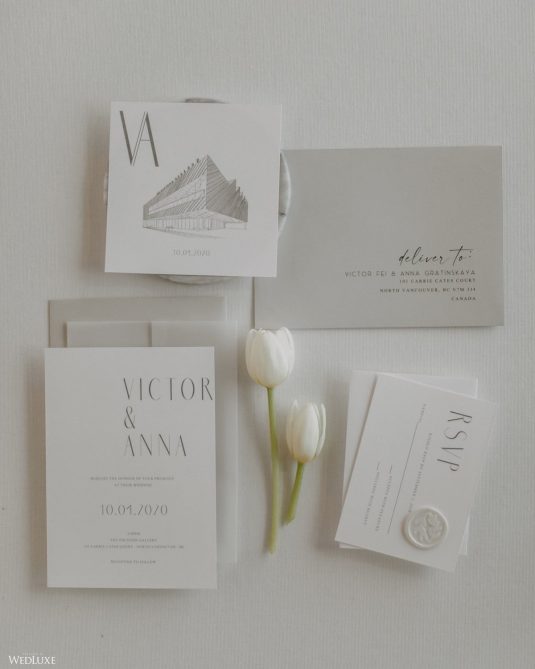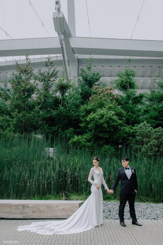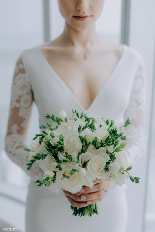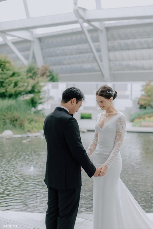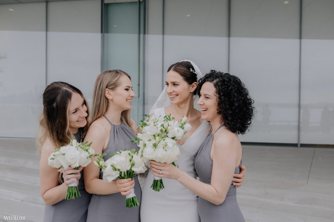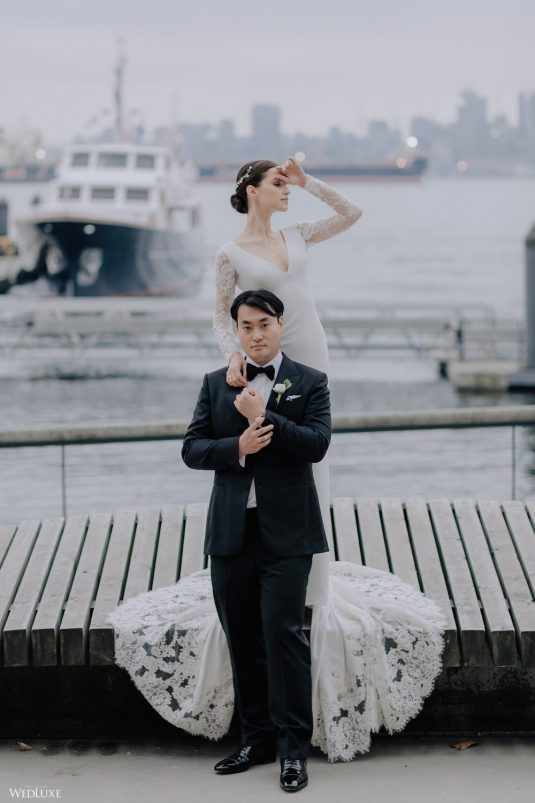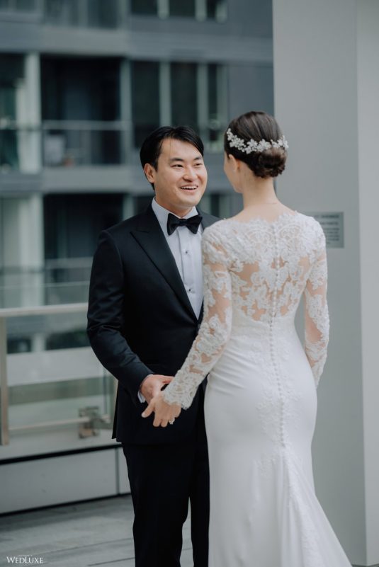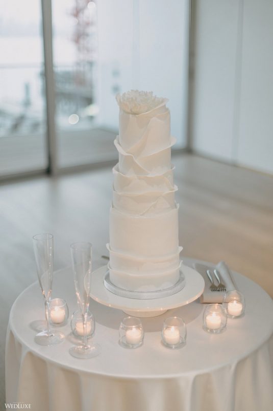 You won’t believe us when we say that this wedding was an intimate celebration with only 36 guests — the atmosphere created from elaborate floral installations and luxury details was classic yet modern! And we can’t forget about the bride’s gown and its GORGEOUS train, not to mention its matching cathedral-length veil (the bride’s favorite wedding design detail!) by Pronovias.
