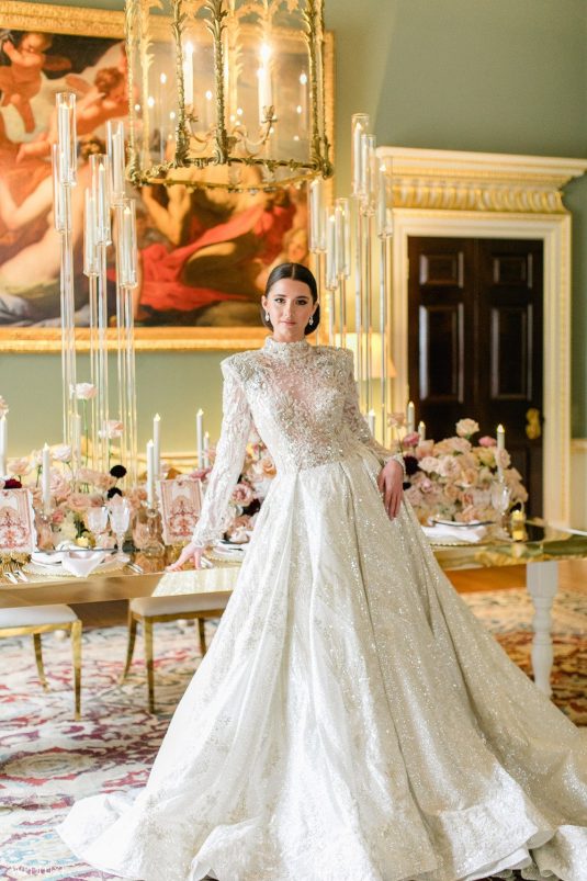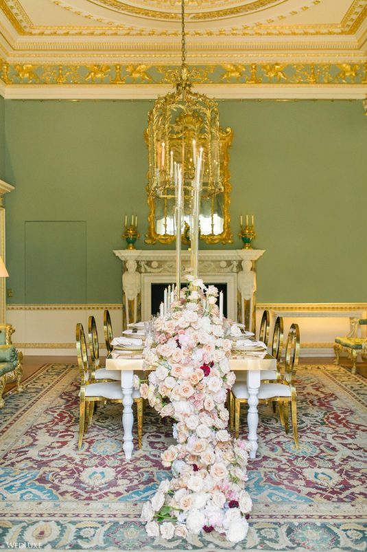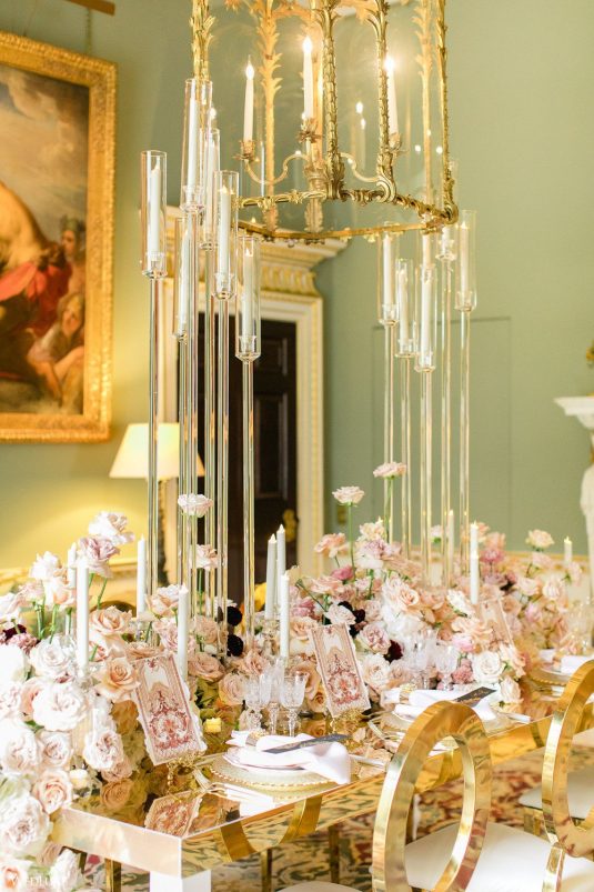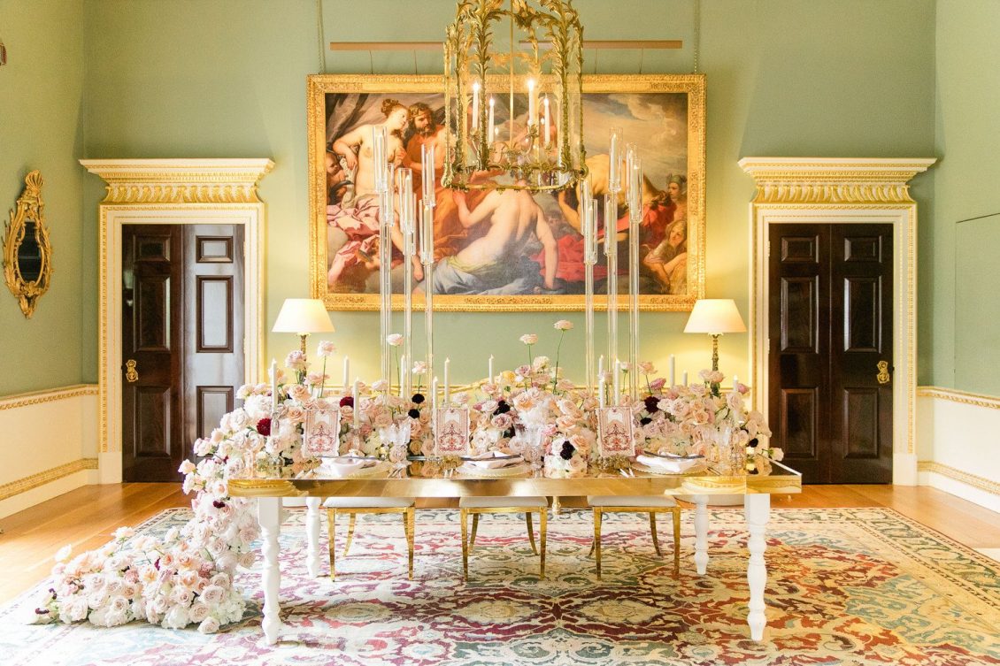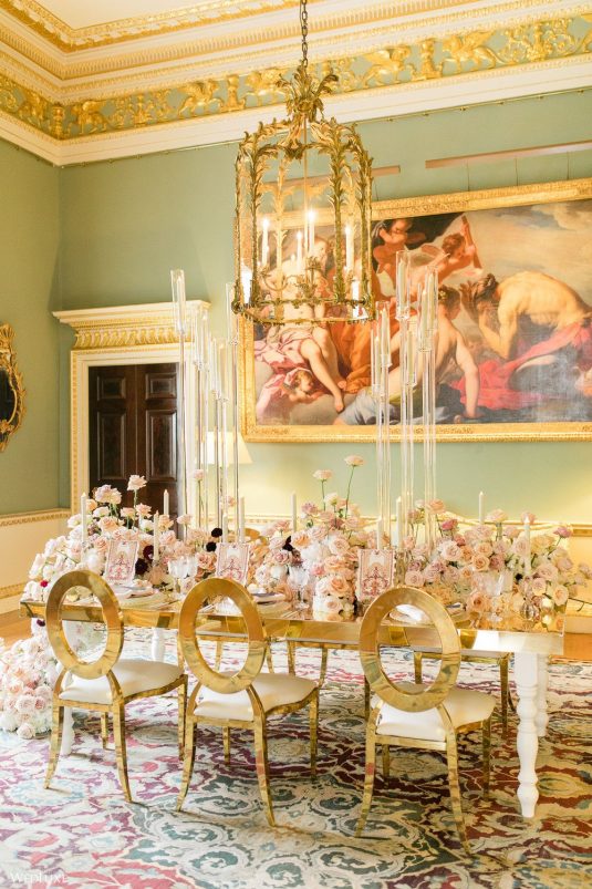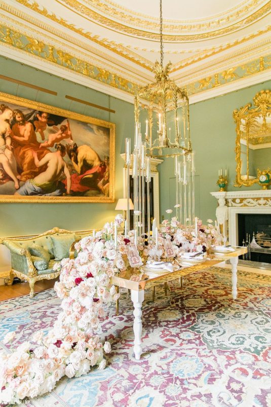 If you can’t wait for the second season of Bridgerton to be released, we’ve got you covered with this styled shoot that’s filling in all the Regency era luxury you’ve been missing! Shot on location at the historic Spencer House in London, England, the shoot is full of golden filigree, blush florals, and high glamour. Ah… so ROMANTIC!