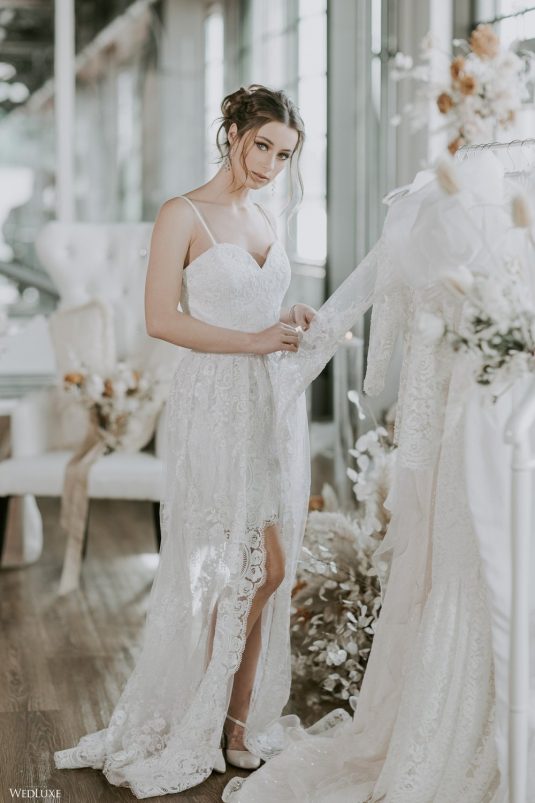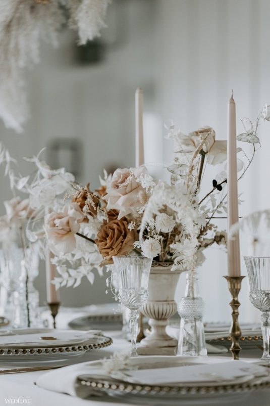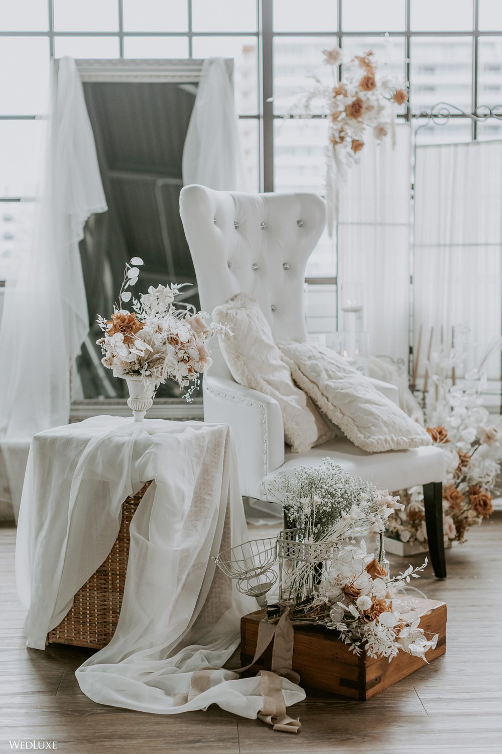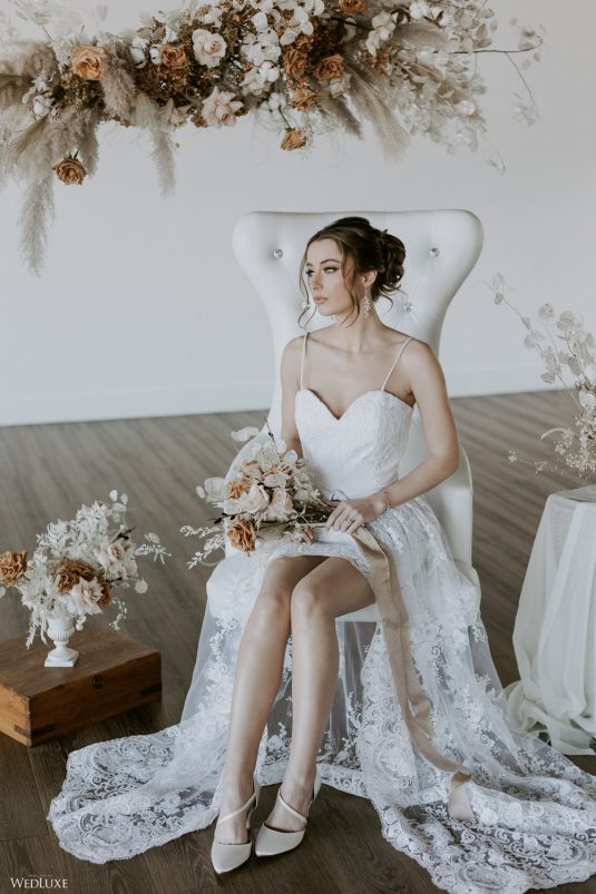 Traditional trousseaus of family heirloom linens and handmade gowns of French lace are reimagined in this Summer/Fall 2021 Glitterati Style File from the Vancouver Edition of WedLuxe Magazine. Here, silk chiffons, crepe ribbons, and soft feathers in exquisite earth tones create an intimate wedding vibe that’s all kinds of of CHIC!