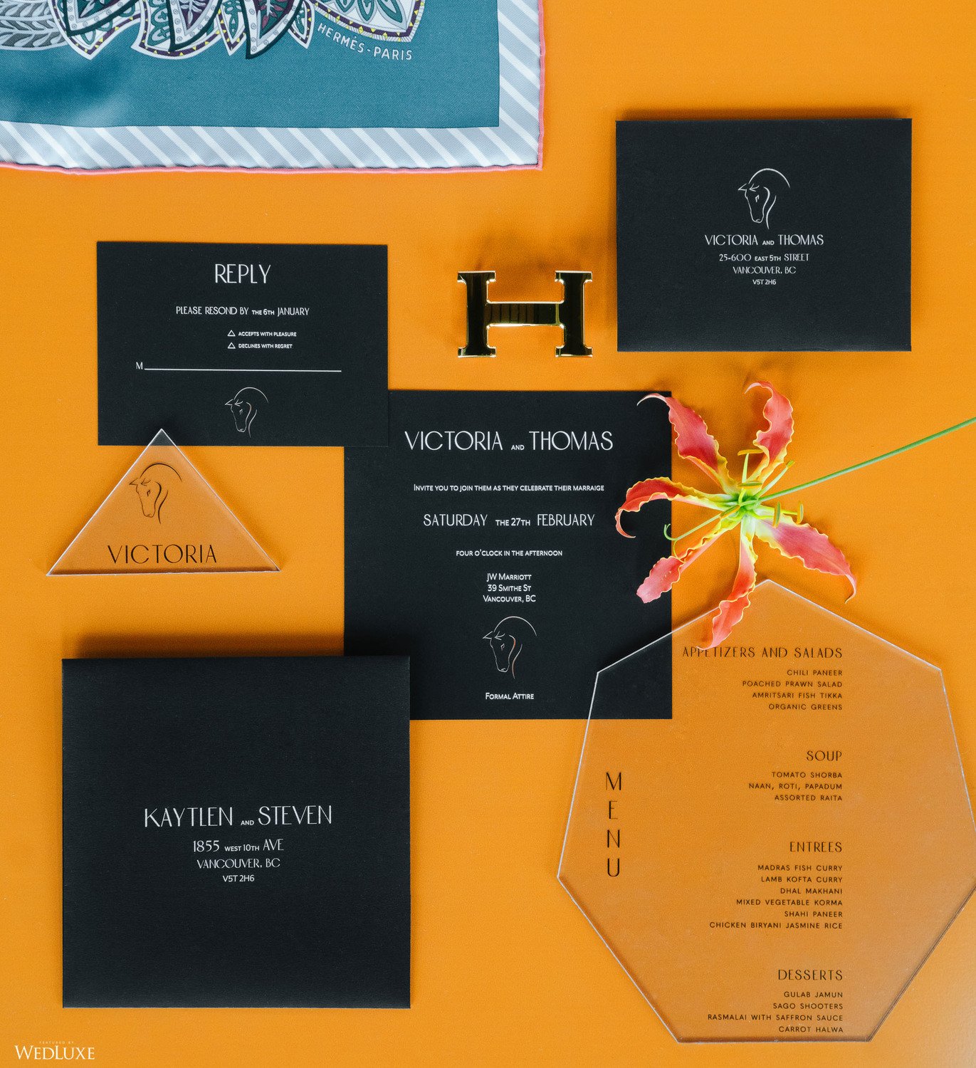 You might recognize the gorgeous orange hues of this Glitterati Style File from the cover of the Summer/Fall 2020 Vancouver Edition, paying homage to the LUXURY of Hermès.