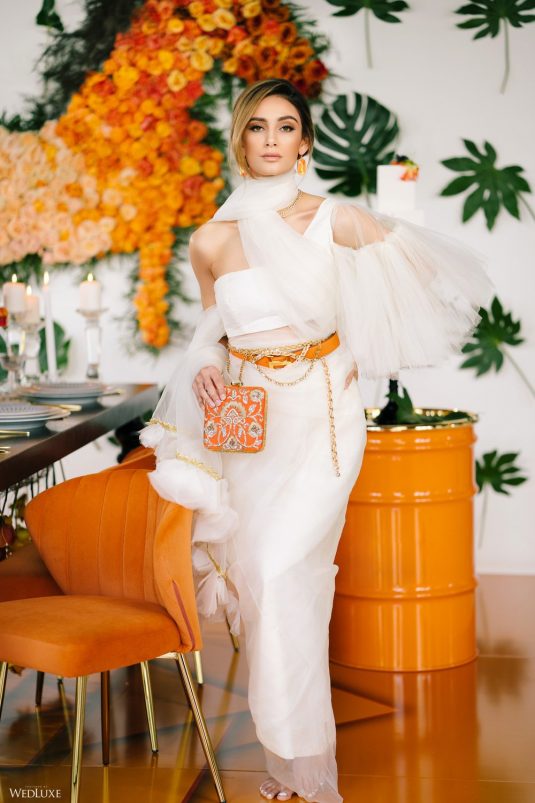 “The concept of this photoshoot was to utilize the luxurious elements of the world-renowned brand Hermès and incorporate a South Asian fusion touch. The opulence of the Hermes brand allowed us to showcase the culture and cutting edge fashion in the lap of luxury.” — Ishita Hayer, A Stylish Event