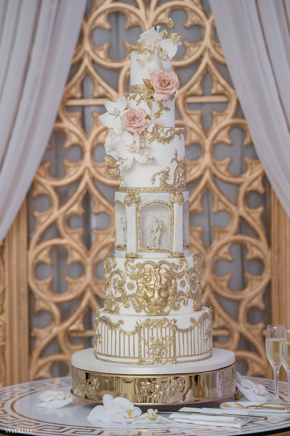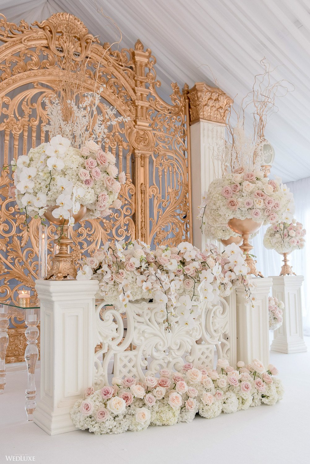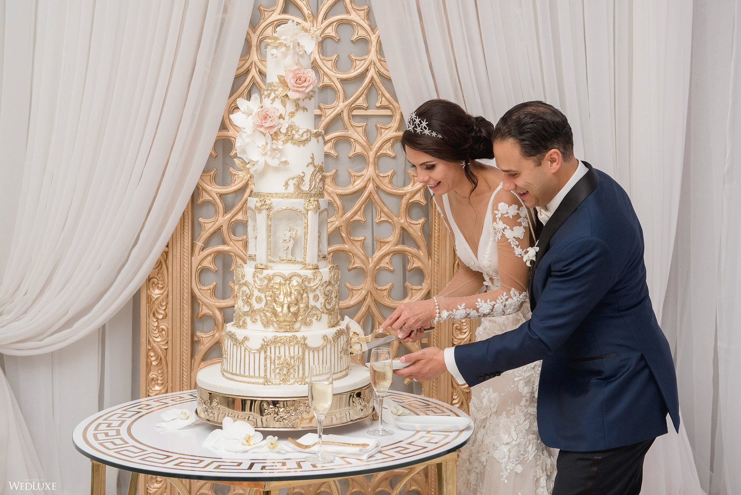 In September of 2020, the couple held their wedding and reception with the help of Fabulous Occasions, who provided full-service planning and design assistance for the Versace Mansion-inspired event. Despite challenges faced due to safety restrictions, the couple found their silver lining in financing extravagant Versace-like upgrades, including an elaborate dining experience for the reduced guest count.