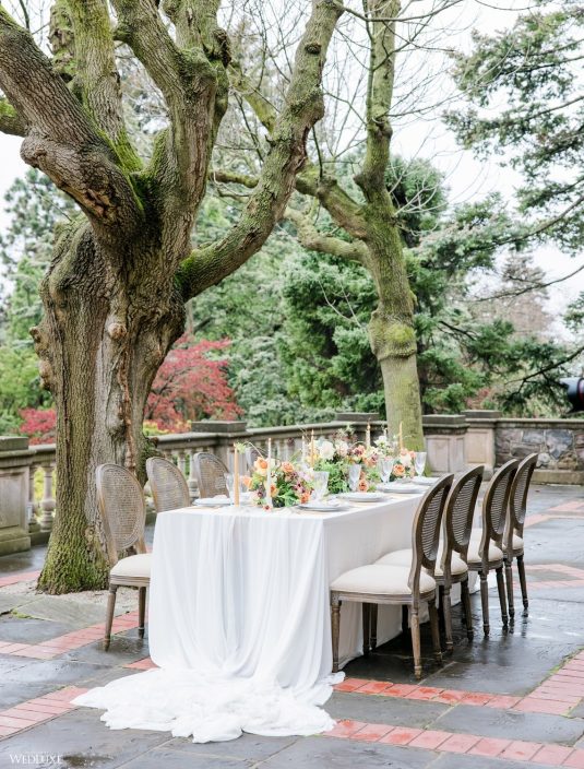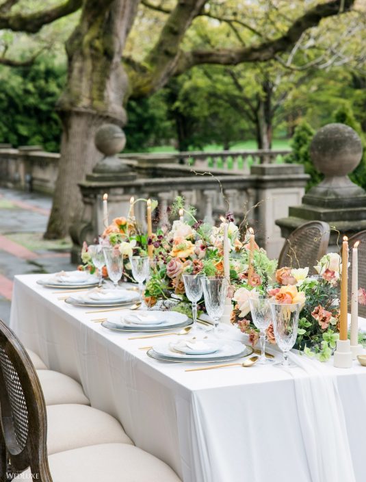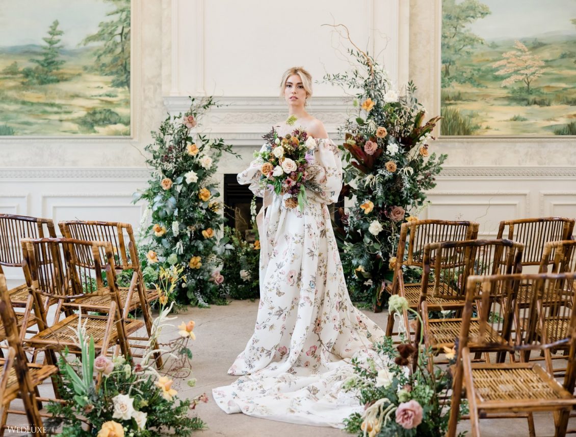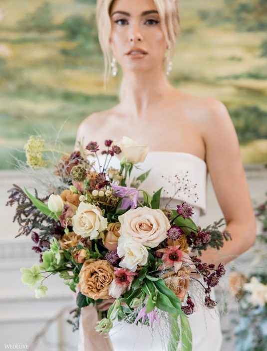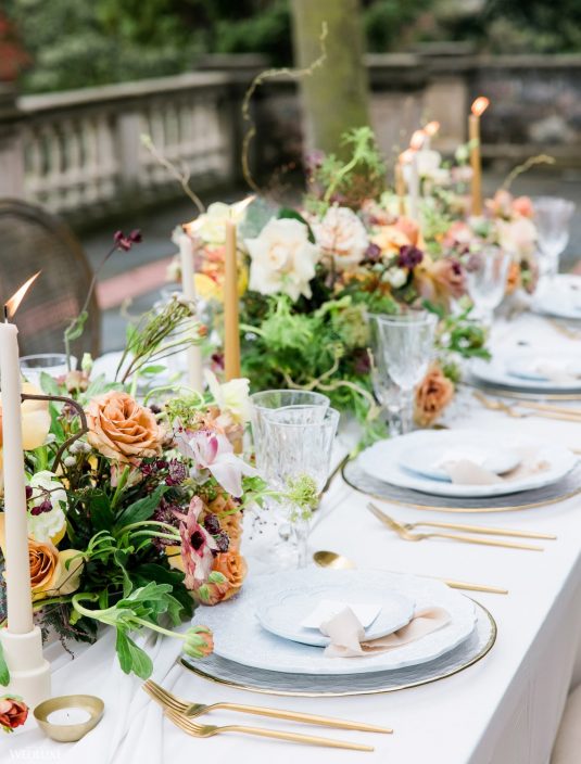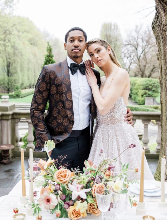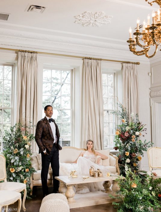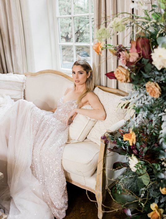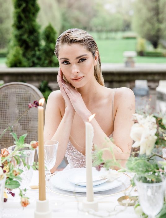 Natural, organic decor meets show-stopping fashion! Every detail of this gorgeous styled shoot has been considered to create a cohesive and—lets be honest— STUNNING wedding design. “For the reception we wanted to make a statement with the movement of the linens draping off the table to reflect the movement within the fashion elements of this shoot. We kept the table simple with beautiful gold details and two tones candles to reflect the beautiful free flowing centrepieces,” shares Narelle Allen of Narelle Janine Events.