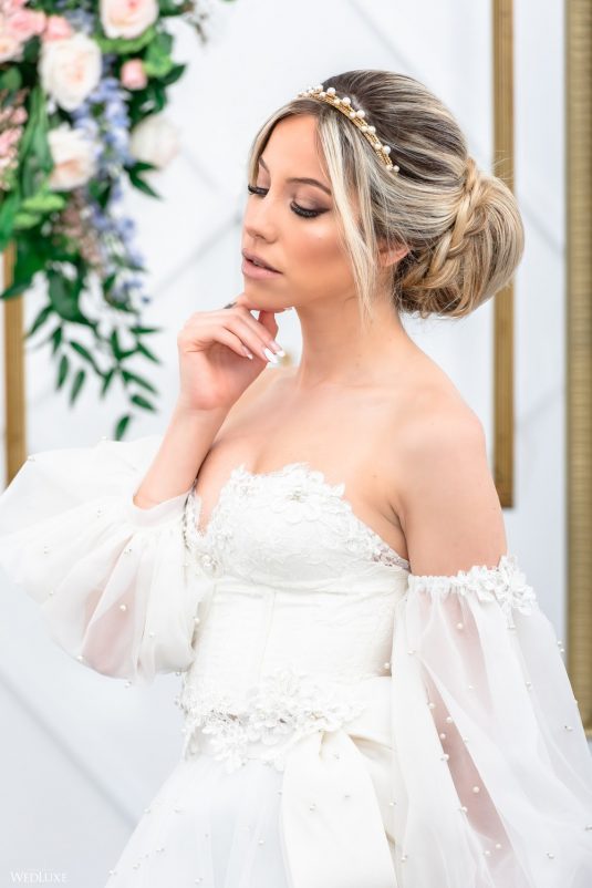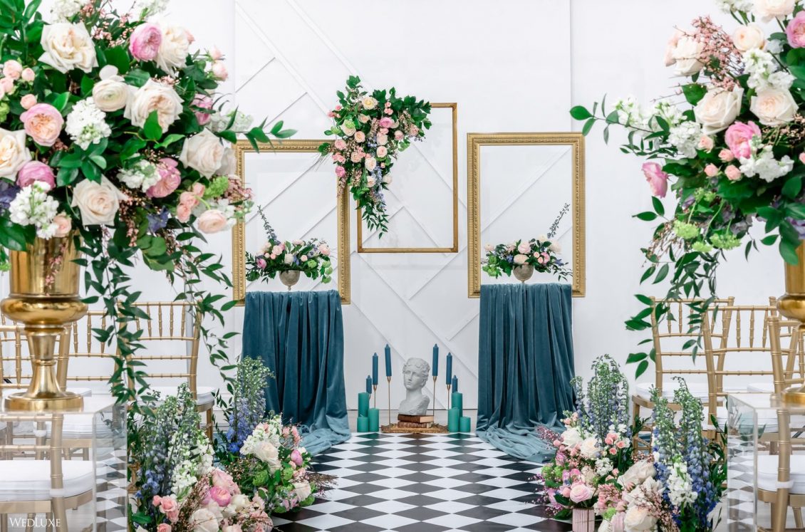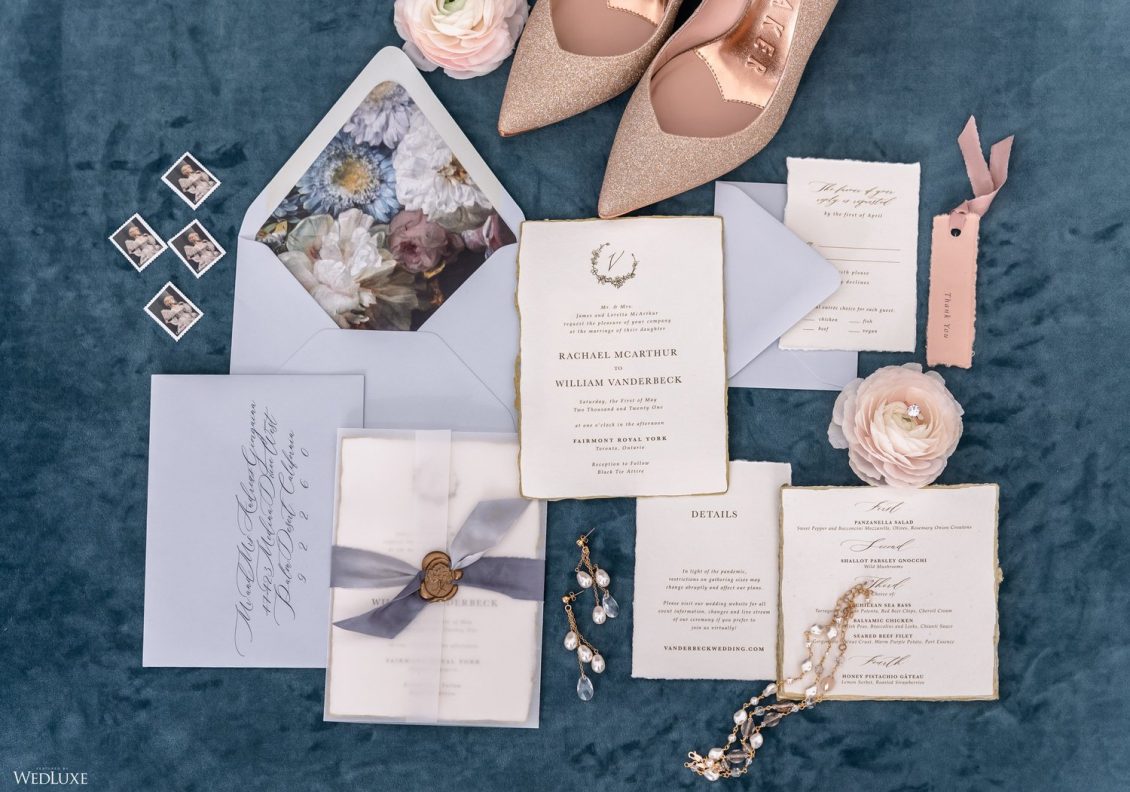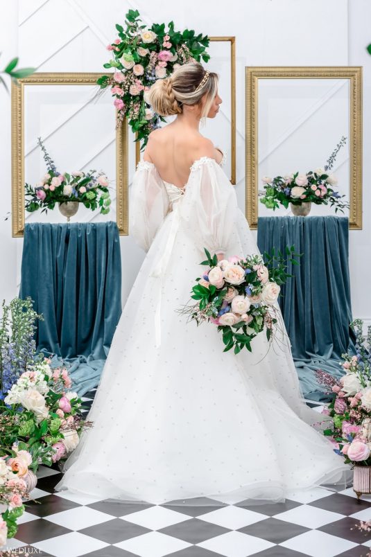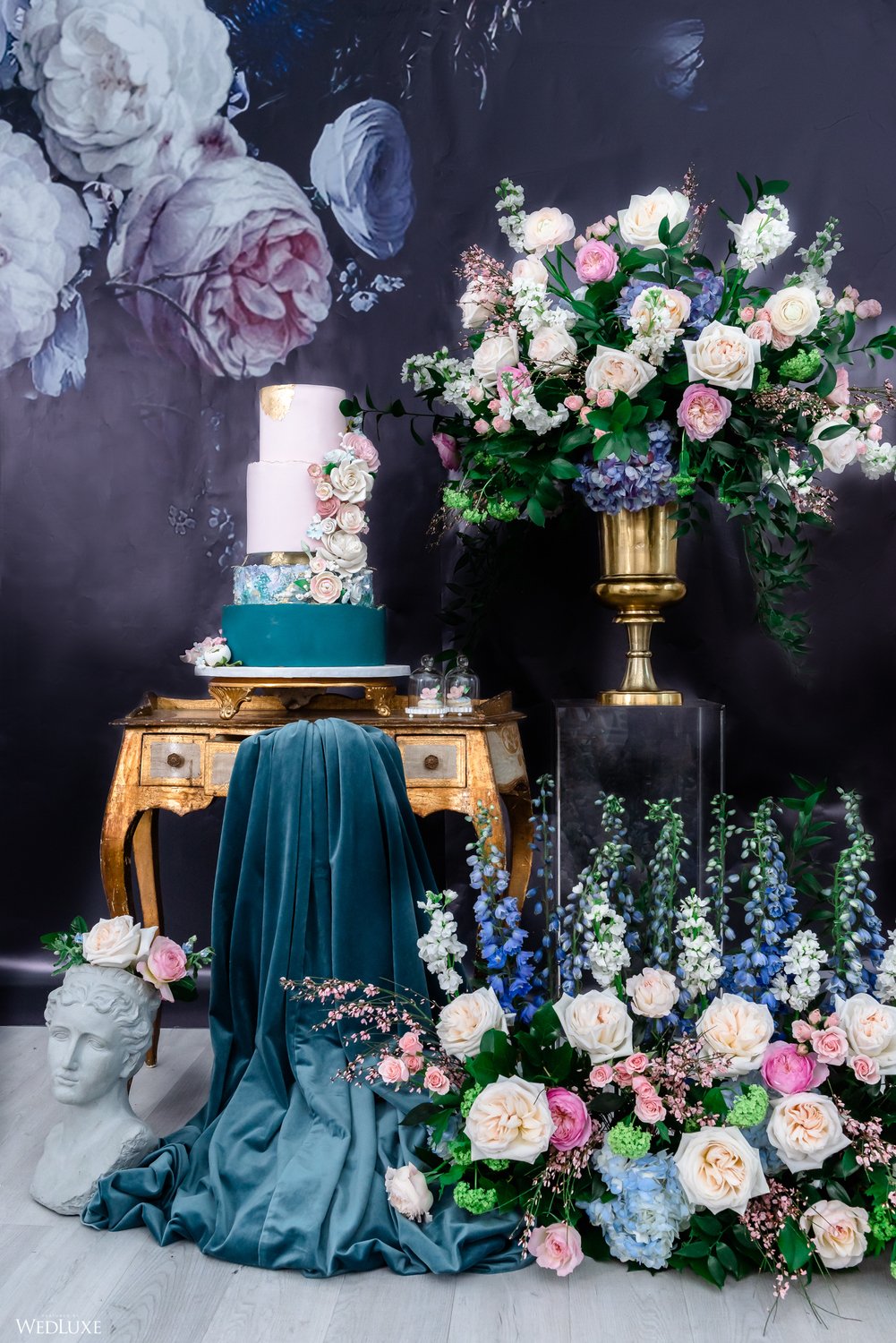 Inspired by the still life artworks by the Dutch masters, this Summer/Fall 2021 Glitterati Style File is all about the intersection of the traditional and modern, all awash in feminine touches of course! We’re obsessed with how beautifully the delicate floral design executed by Fleurisma Events Inc compliments the blue and gold decor. Do we see a colour palette trend forming? *wink* *wink*