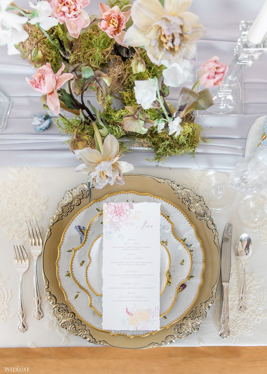 We all have a feminine side to us that swoons over pastel florals and delicate decor, with every detail exuding grace French style! Enter… this beautiful styled shoot! “Inspired by a French garden, we custom designed the bar and pillars using an exquisite linen fabric, and the florals were designed to complement the beautifully hand-painted porcelain dinnerware,” describes Sarah of Ellssi Design & Rentals.