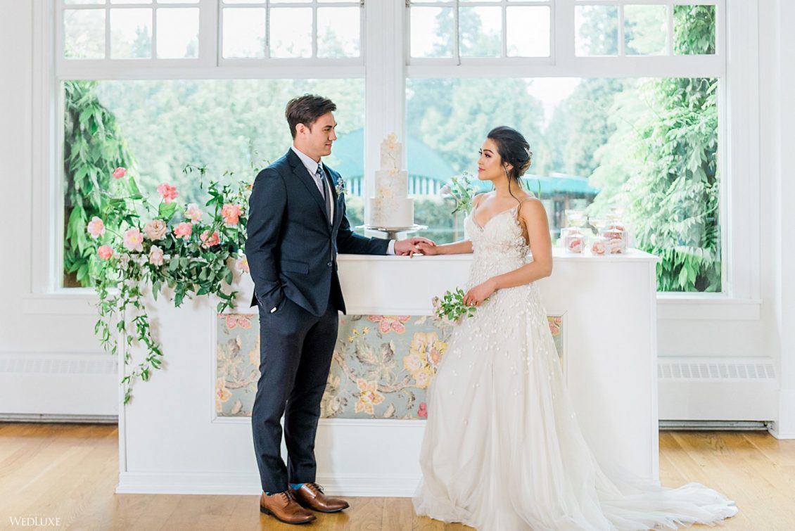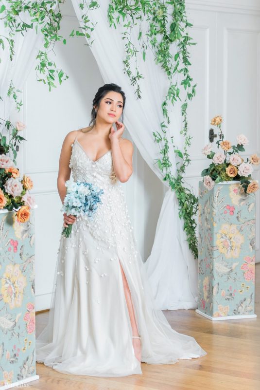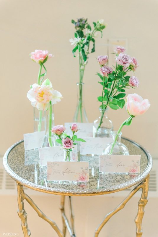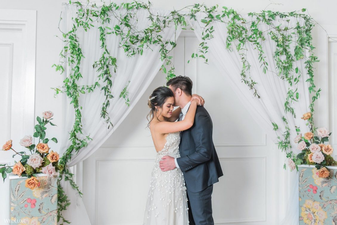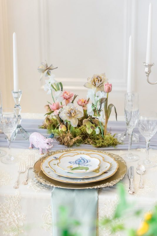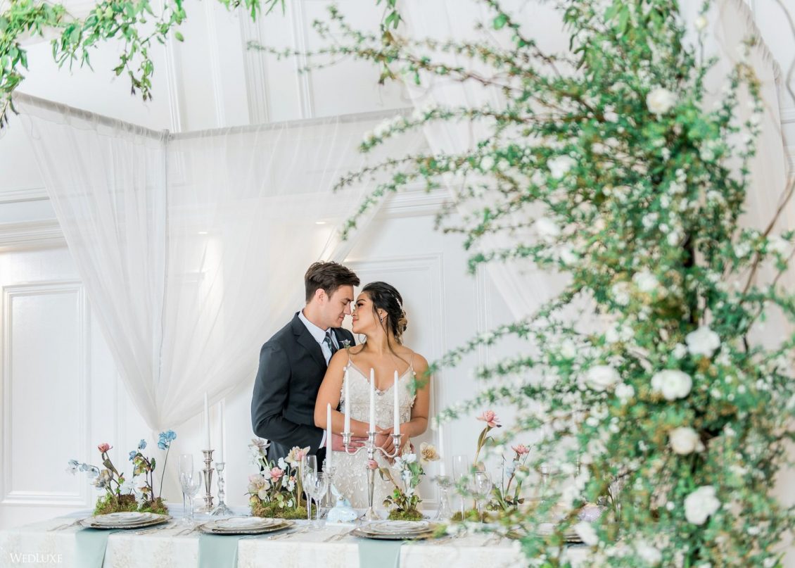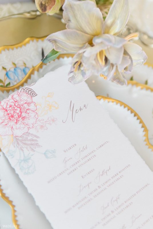 We all have a feminine side to us that swoons over pastel florals and delicate decor, with every detail exuding grace French style! Enter… this beautiful styled shoot! “Inspired by a French garden, we custom designed the bar and pillars using an exquisite linen fabric, and the florals were designed to complement the beautifully hand-painted porcelain dinnerware,” describes Sarah of Ellssi Design & Rentals.