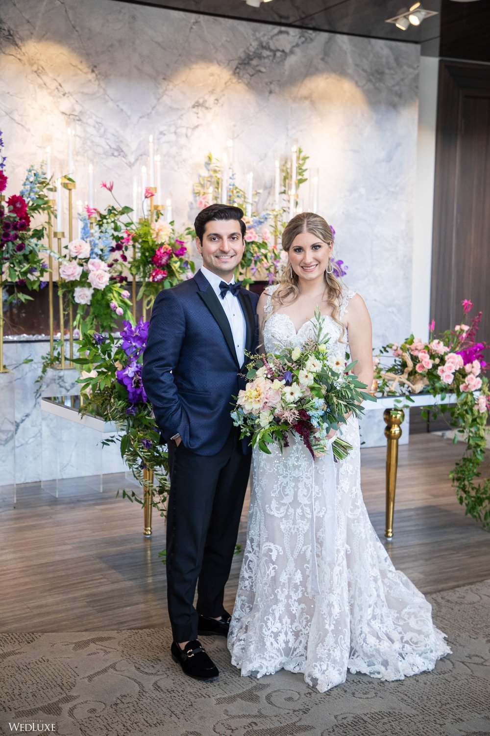 The word DRAMA is taking on a whole new meaning in Bianca and Mark’s colorful Toronto, ON wedding full of lush florals and greenery. Their risk paid off—this wedding is STUNNING!