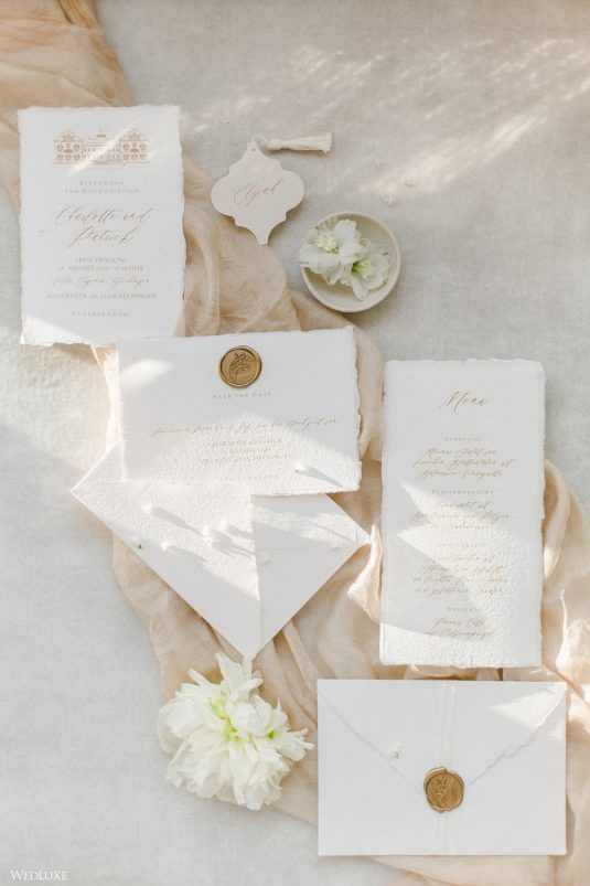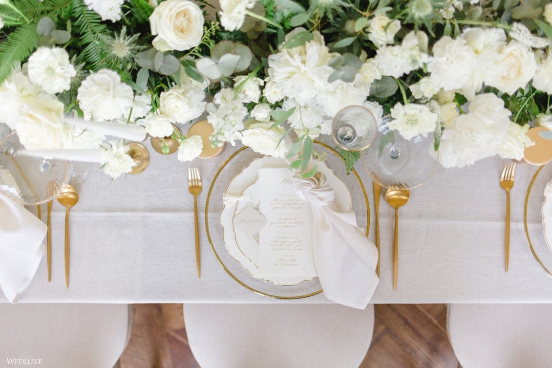 Some wedding palettes will never lose their glamour and elegance. Of course, we’re talking about a palette of white florals, greenery, and a touch of gold! This styled shoot captures it all under the magical glow of sunlight.