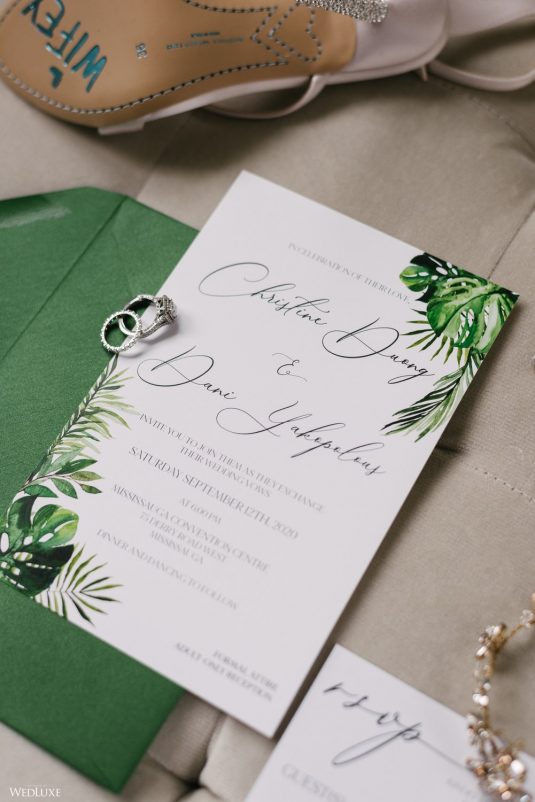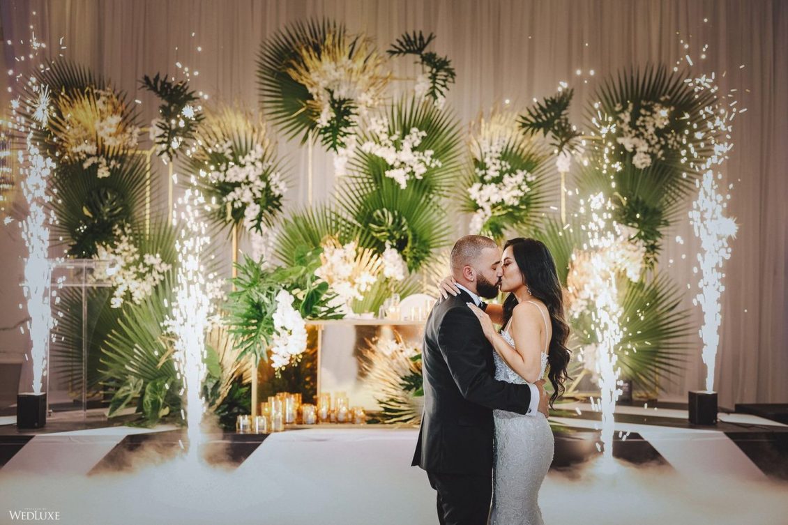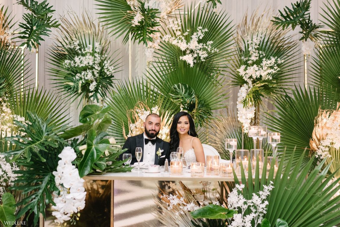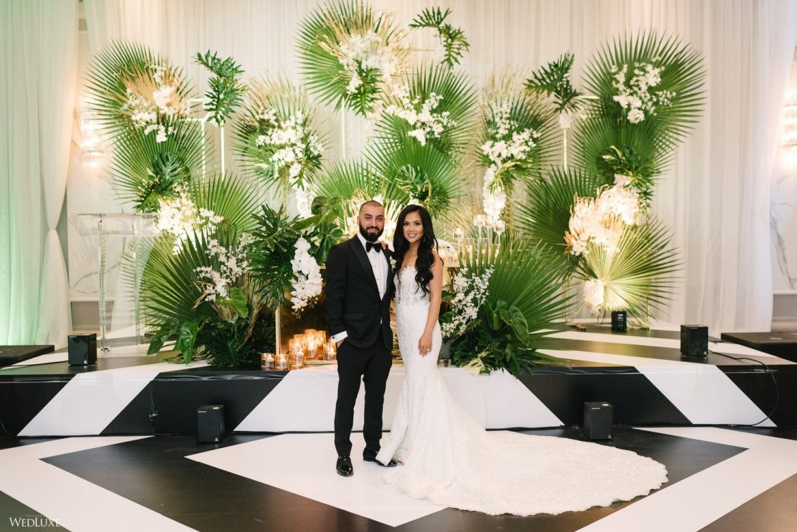 “We love to stand out and wanted to make sure our wedding was different and made a statement!” shares couple Christine and Dani of their luxe Toronto wedding—and to that, we say mission accomplished! This wedding gives us major Miami vibes, full of green palm fronds and a modern, white and gold-accented palette!
