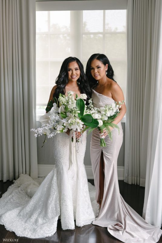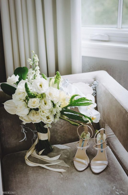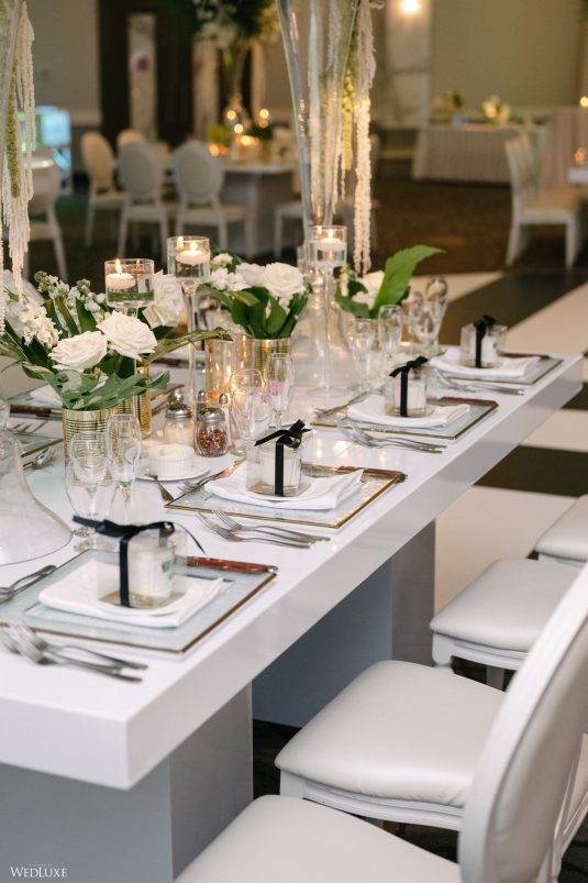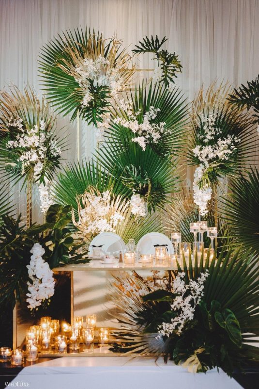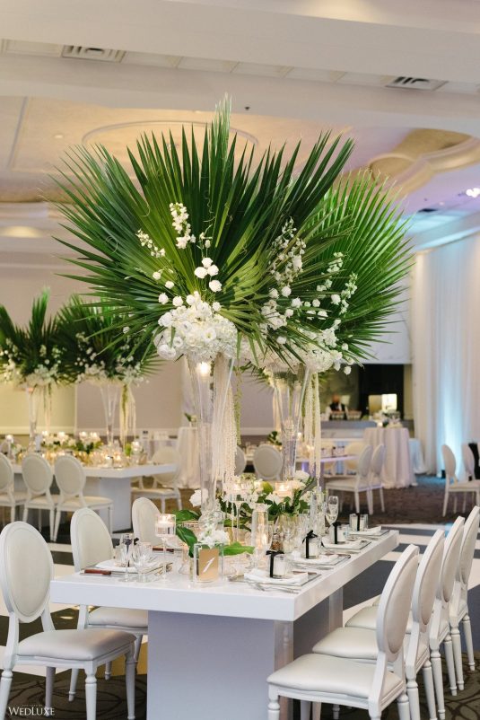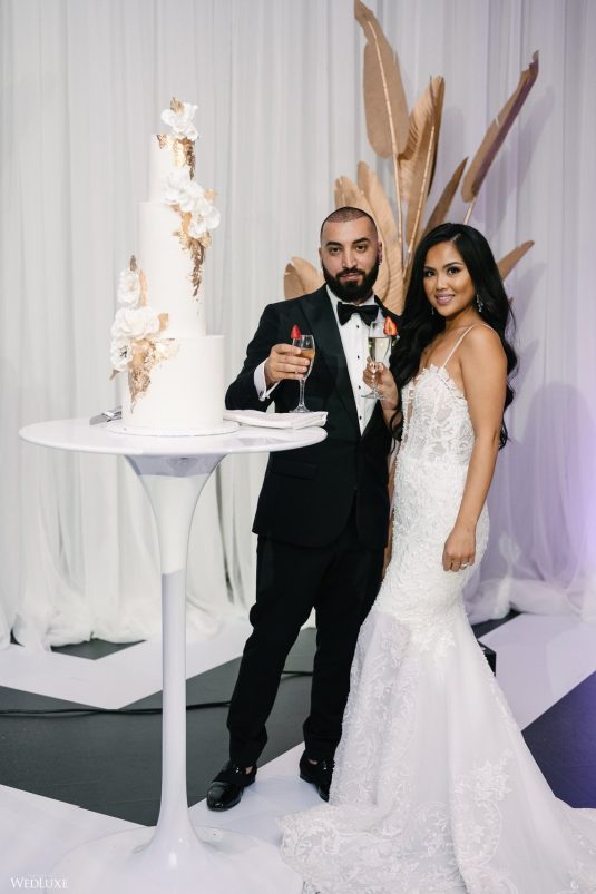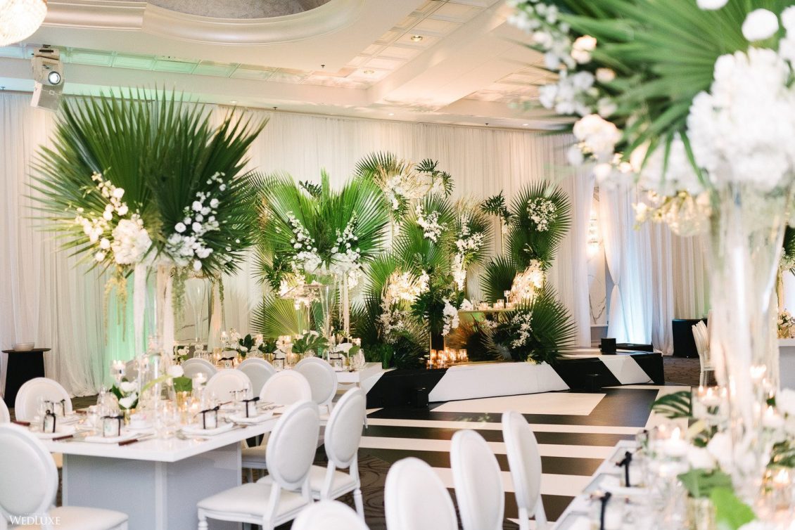 “We love to stand out and wanted to make sure our wedding was different and made a statement!” shares couple Christine and Dani of their luxe Toronto wedding—and to that, we say mission accomplished! This wedding gives us major Miami vibes, full of green palm fronds and a modern, white and gold-accented palette!